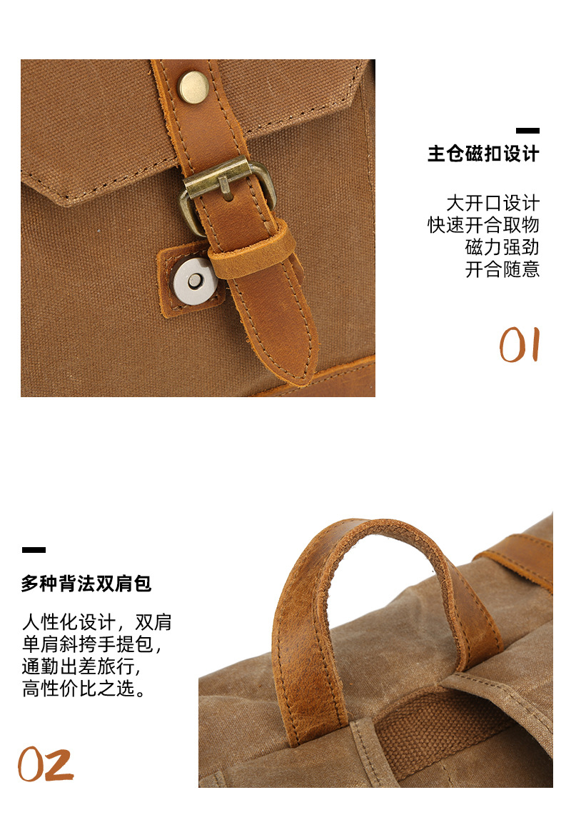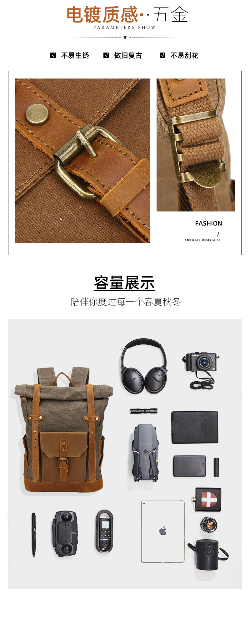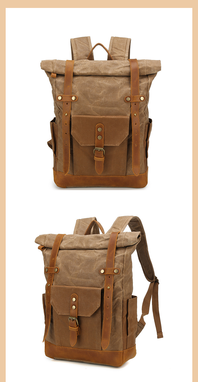 후추 소금 배낭 빈티지 야외 여행 배낭 미친 말 가죽 대용량 배낭 가방 왁스 캔버스 가방 재고