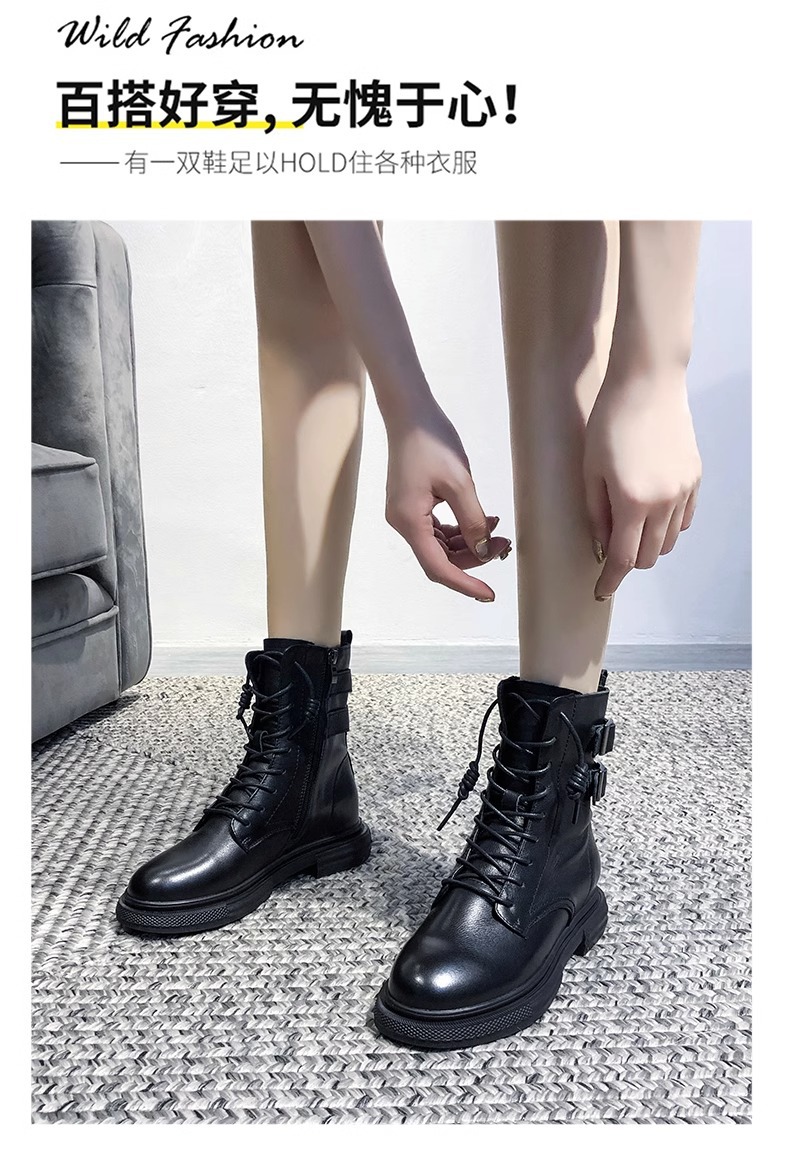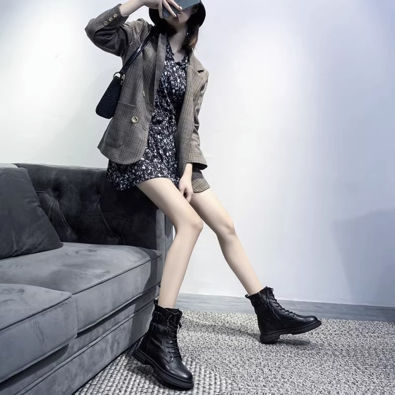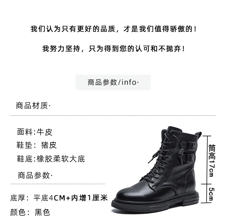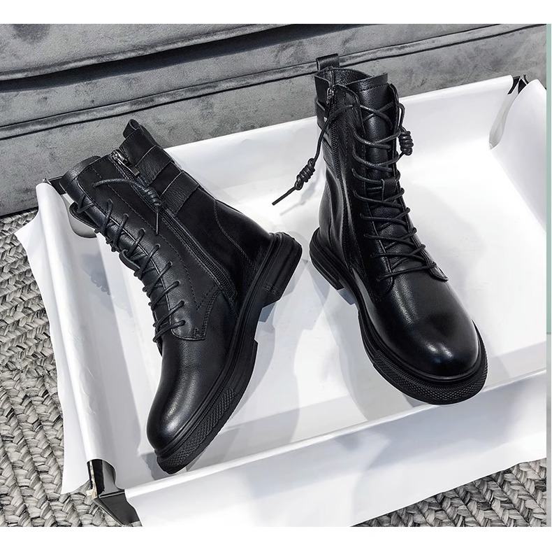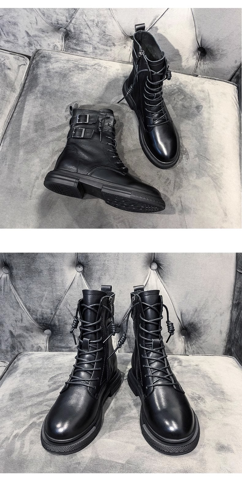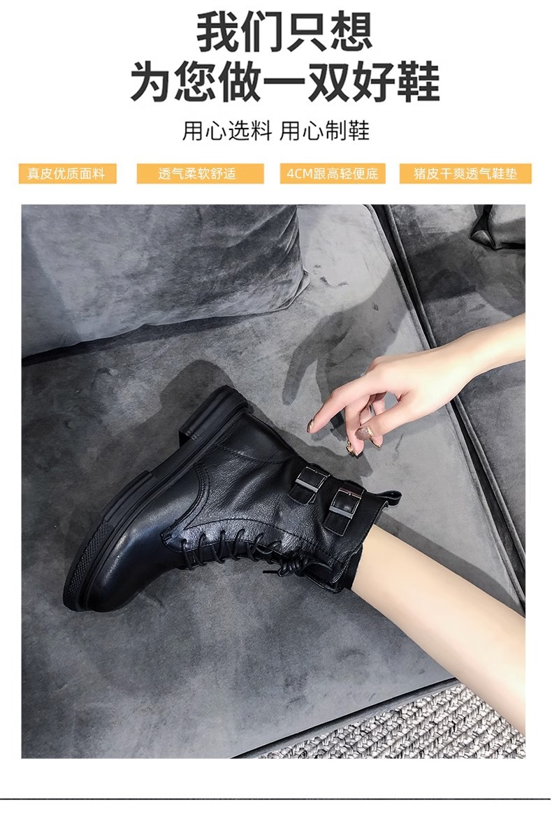 여성용 천연 가죽 플랫 마틴 부츠 2025년 가을 신상 다용도 부드러운 밑창 블랙 숏부츠 중간 길이 더블 버튼 부츠