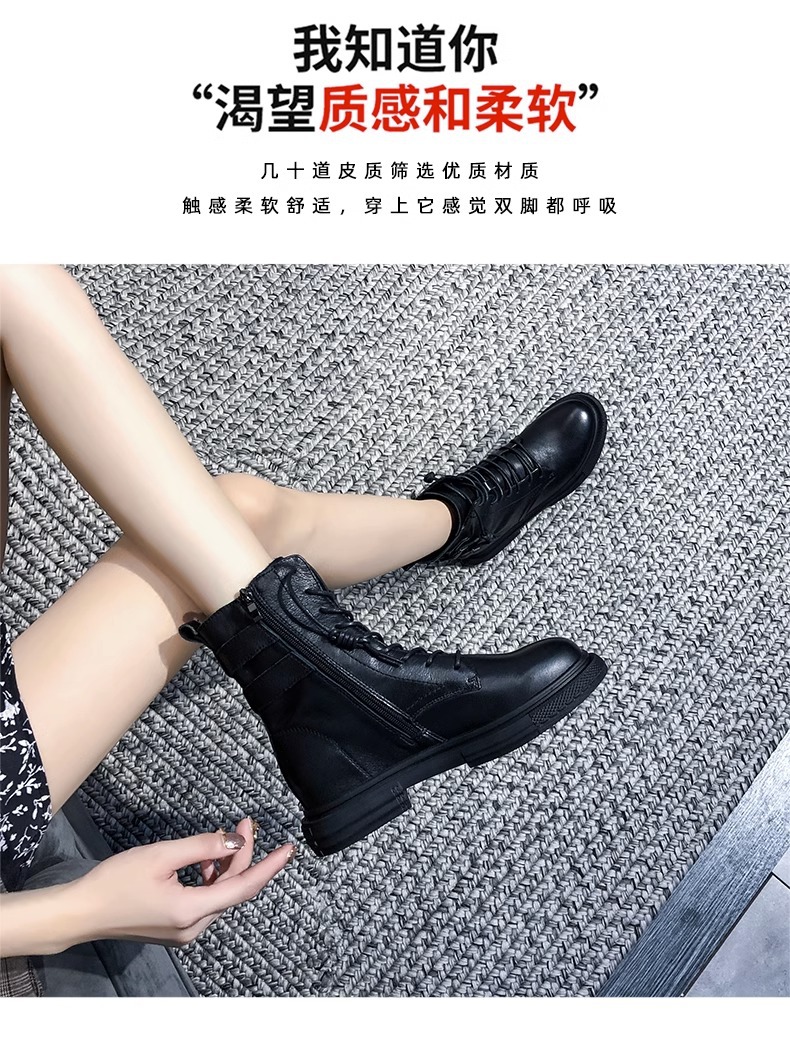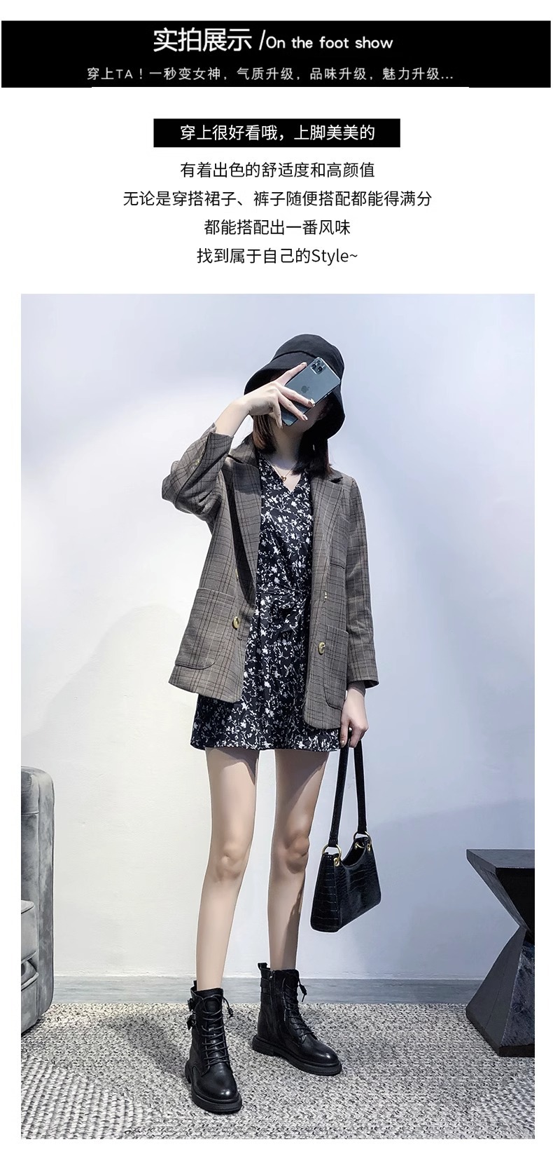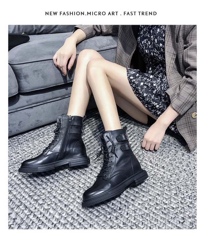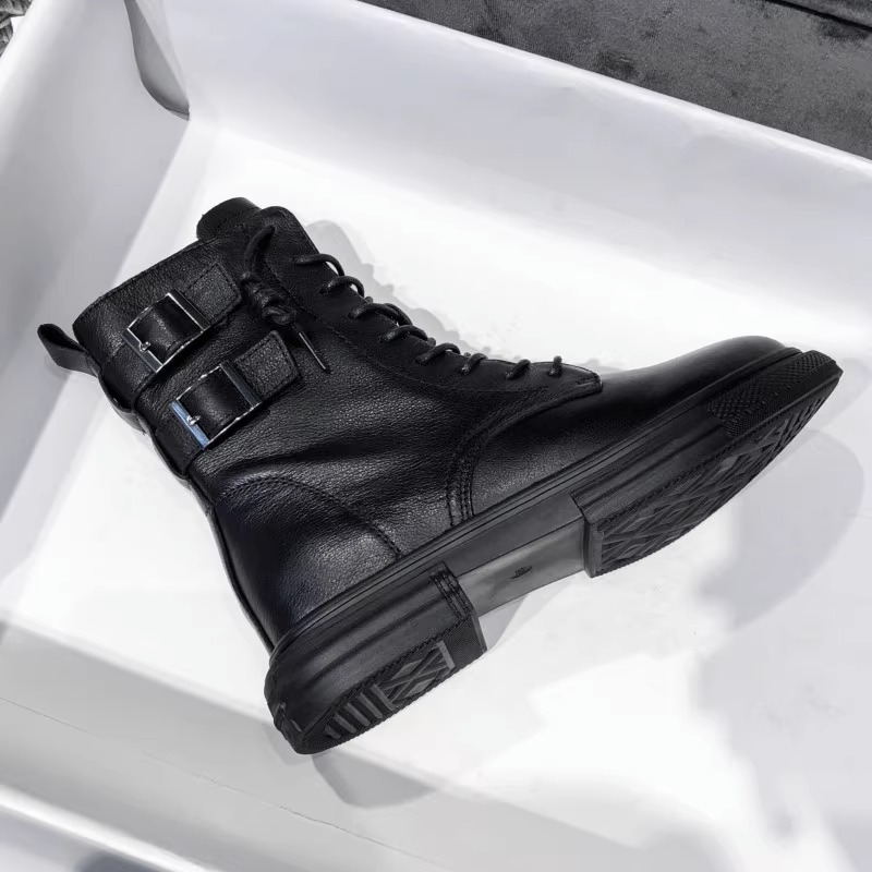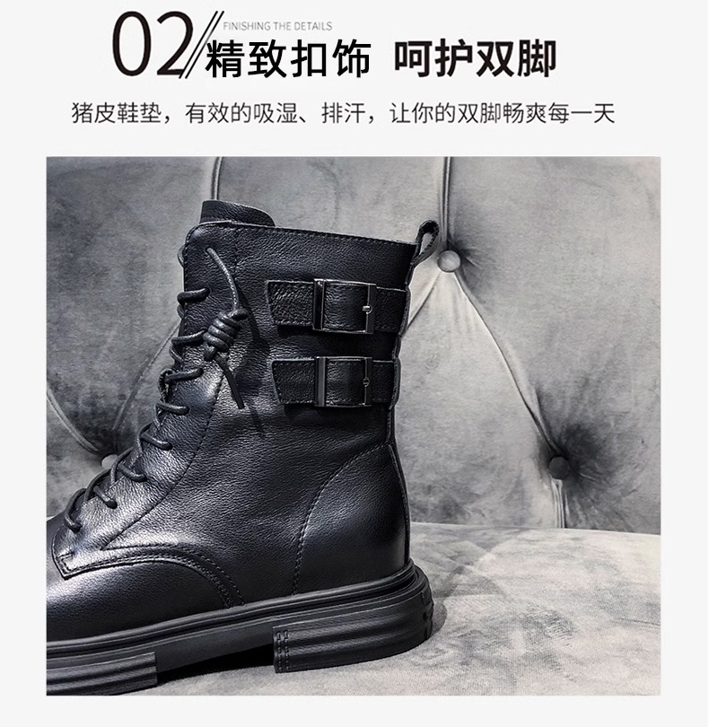 여성용 천연 가죽 플랫 마틴 부츠 2025년 가을 신상 다용도 부드러운 밑창 블랙 숏부츠 중간 길이 더블 버튼 부츠