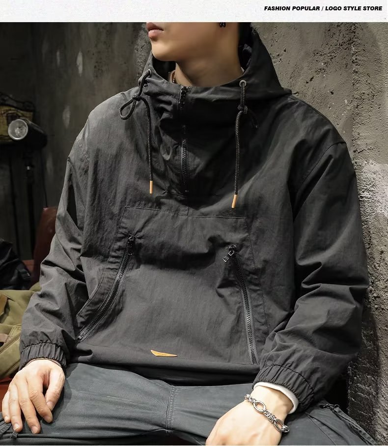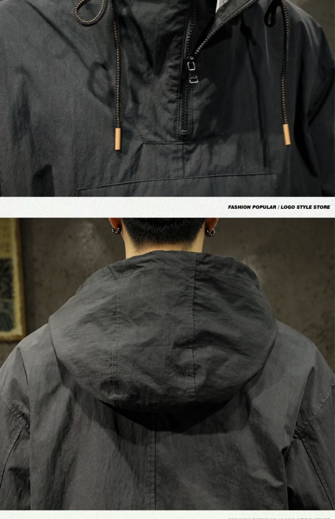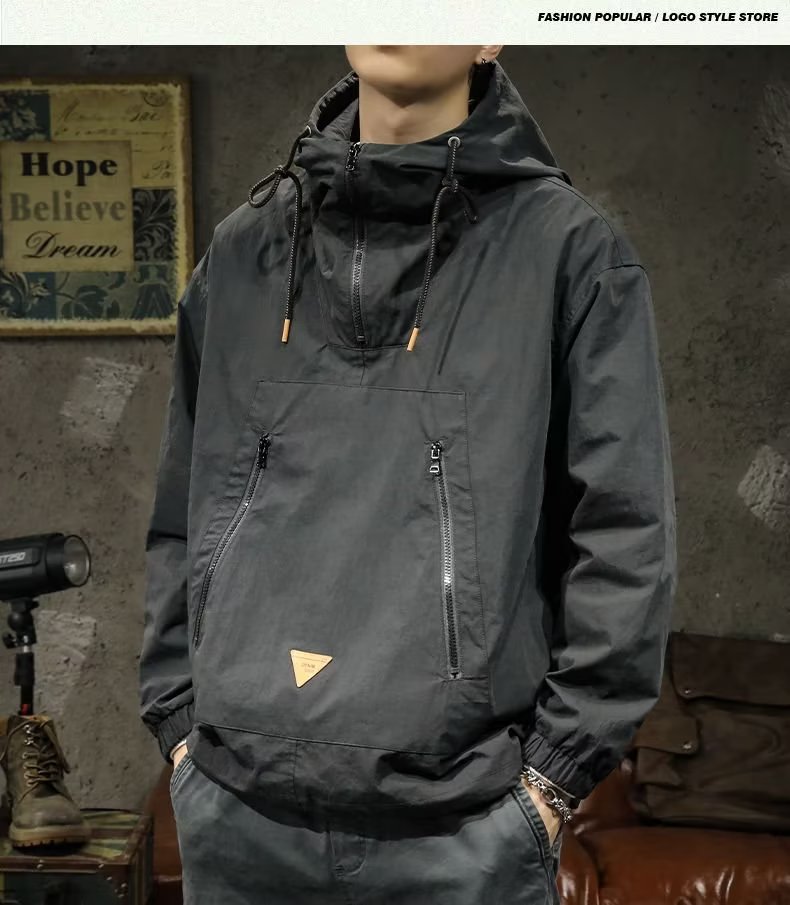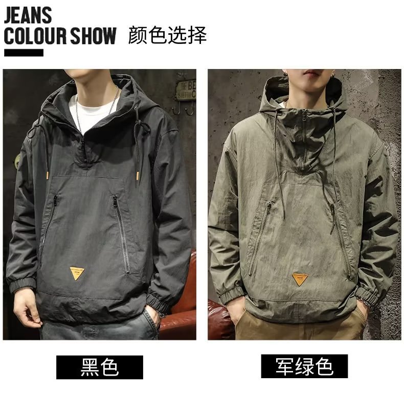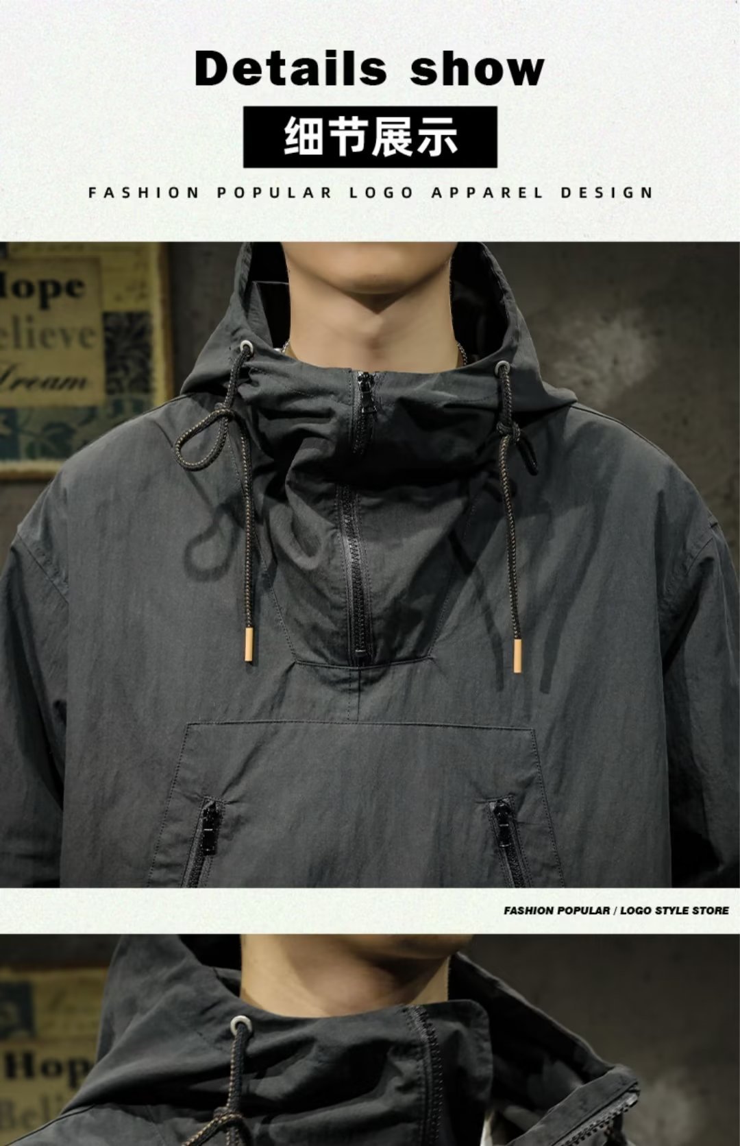 야외 툴링 후드 러쉬 옷 남자의 느슨한 플러스 사이즈 일본 스타일 하프 지퍼 캐주얼 재킷 코트 남자의 봄과 가을 스타일