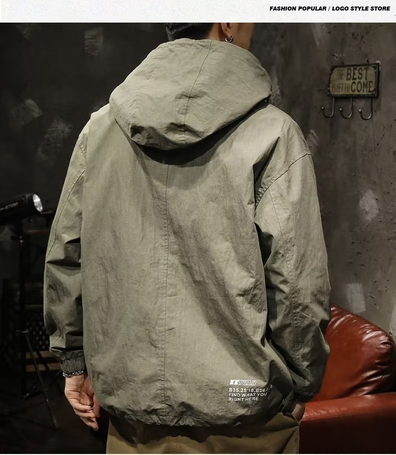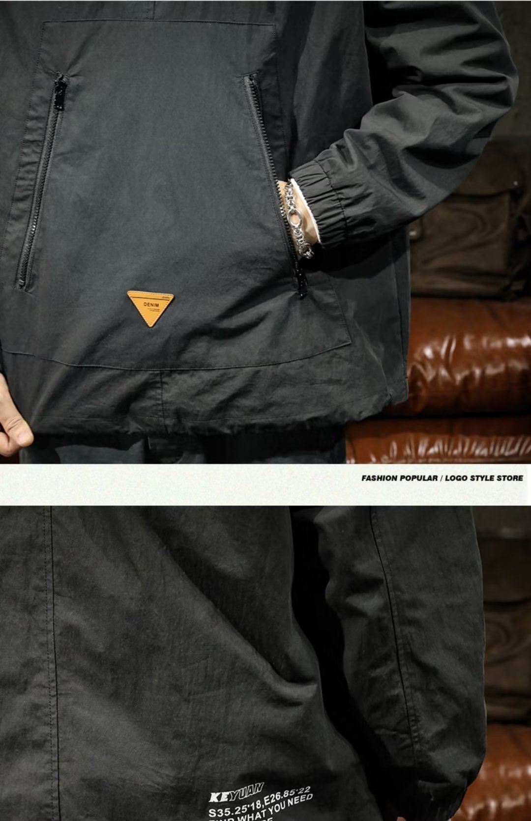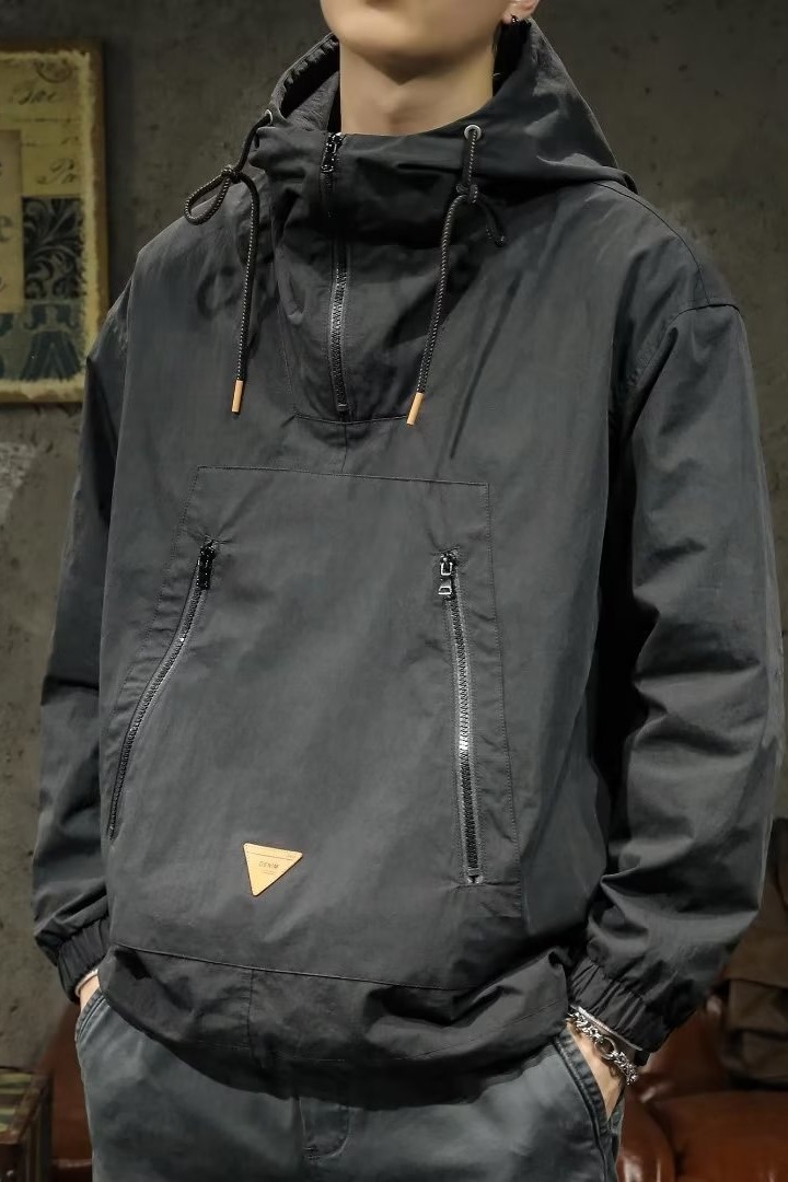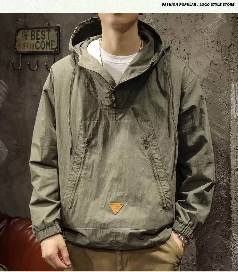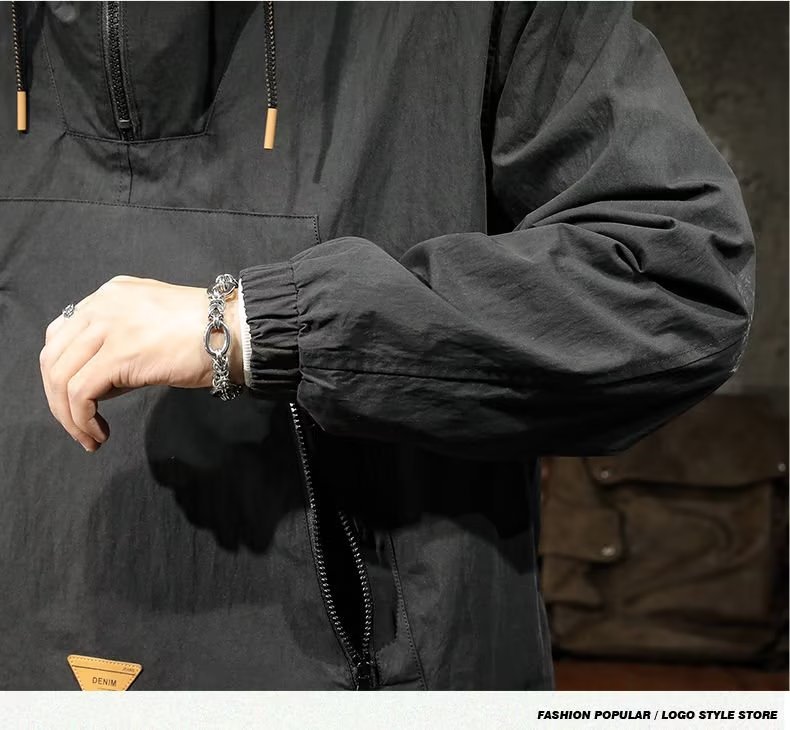 야외 툴링 후드 러쉬 옷 남자의 느슨한 플러스 사이즈 일본 스타일 하프 지퍼 캐주얼 재킷 코트 남자의 봄과 가을 스타일
