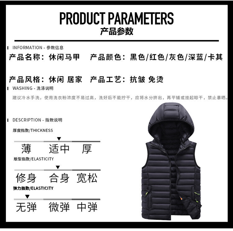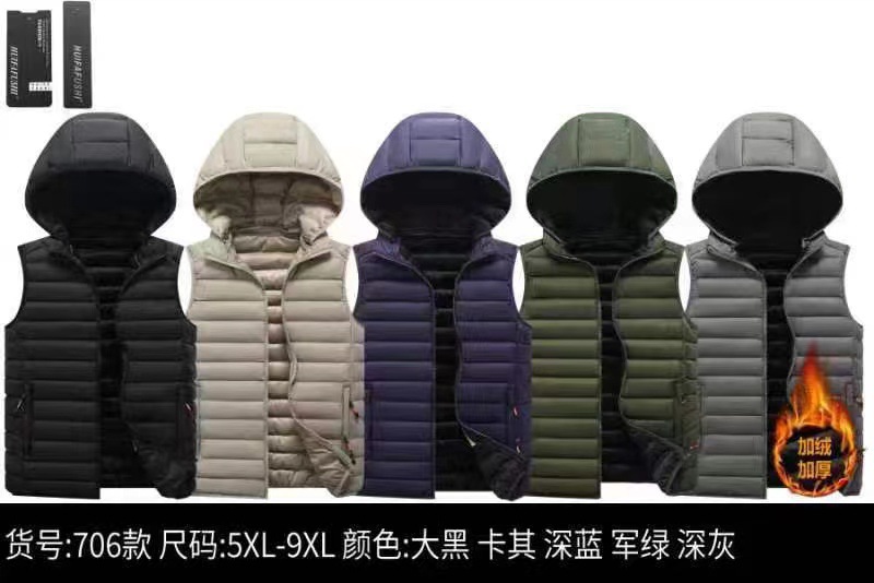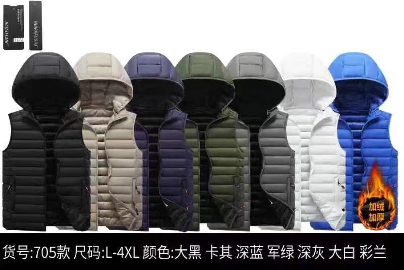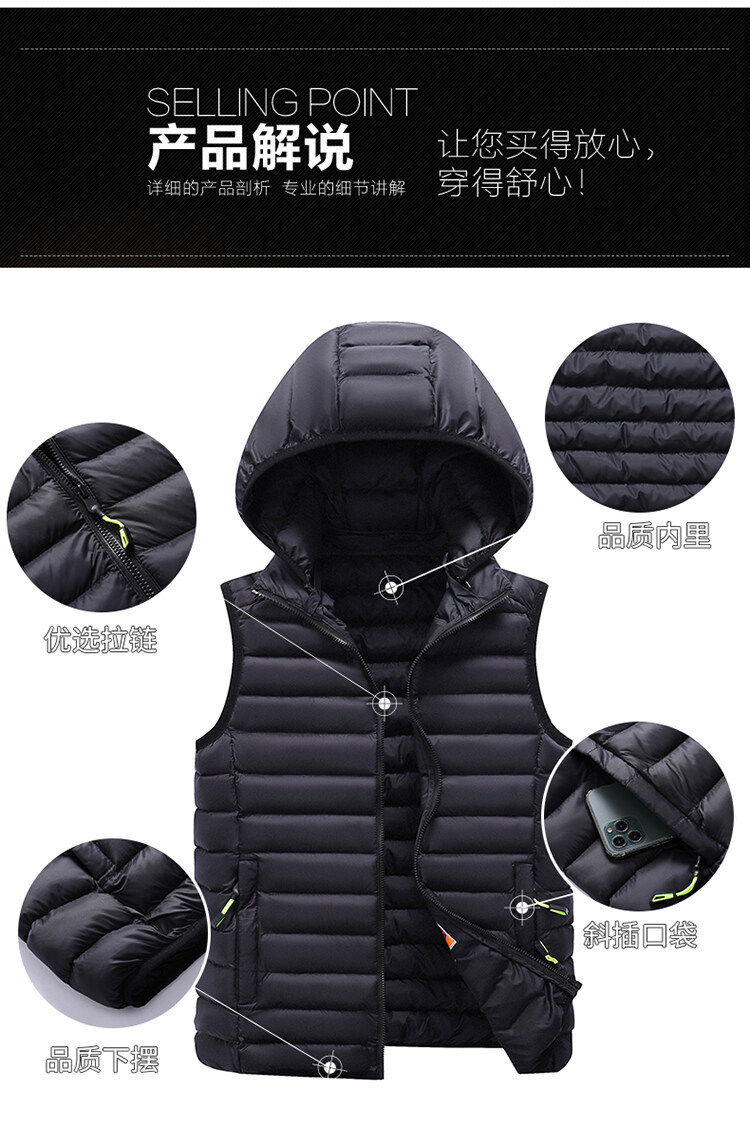 조끼 남자의 2023 새로운 가을과 겨울 누빔안감 양복 조끼 아래로 면 스포츠 플러스 사이즈 후드 조끼 도매