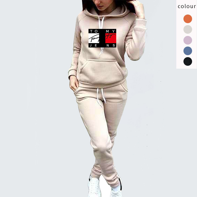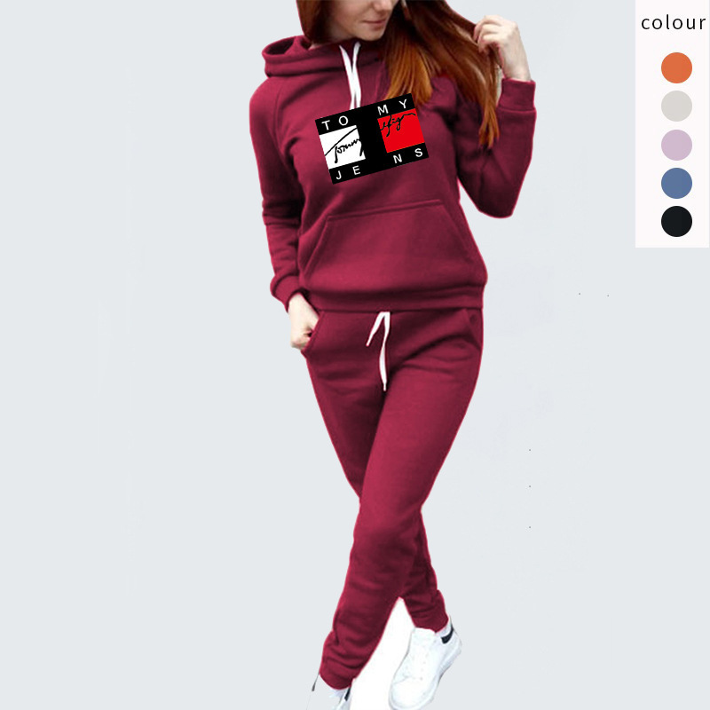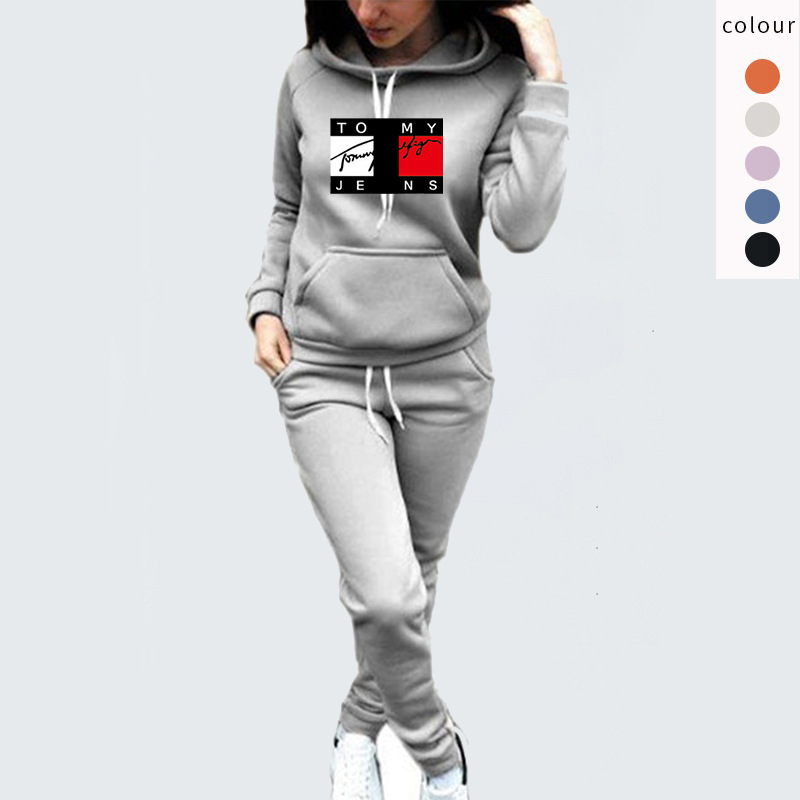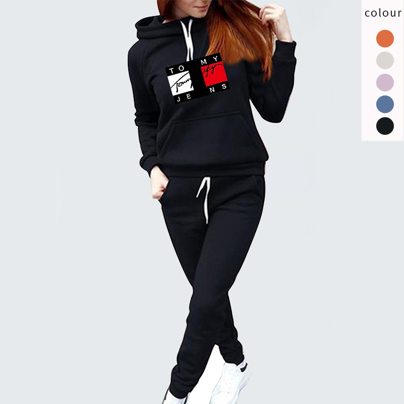 여성의 패션 캐주얼 여성의 기모 대외 무역 야외 스포츠 거리 투피스 스웨터 세트 새로운 폭발 까마귀