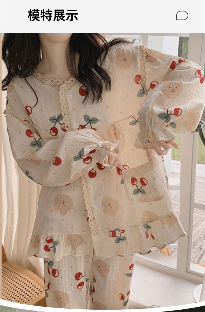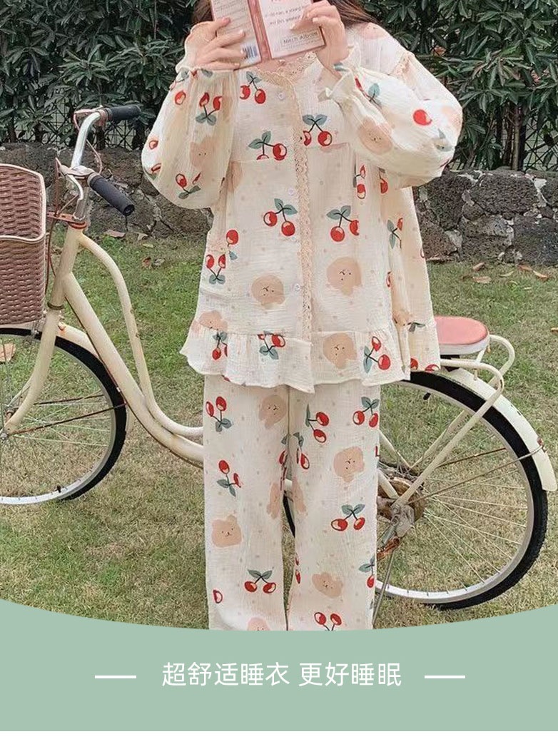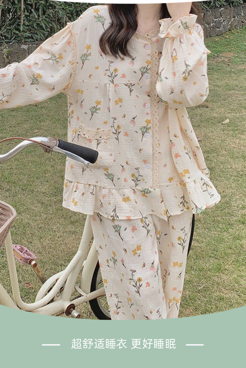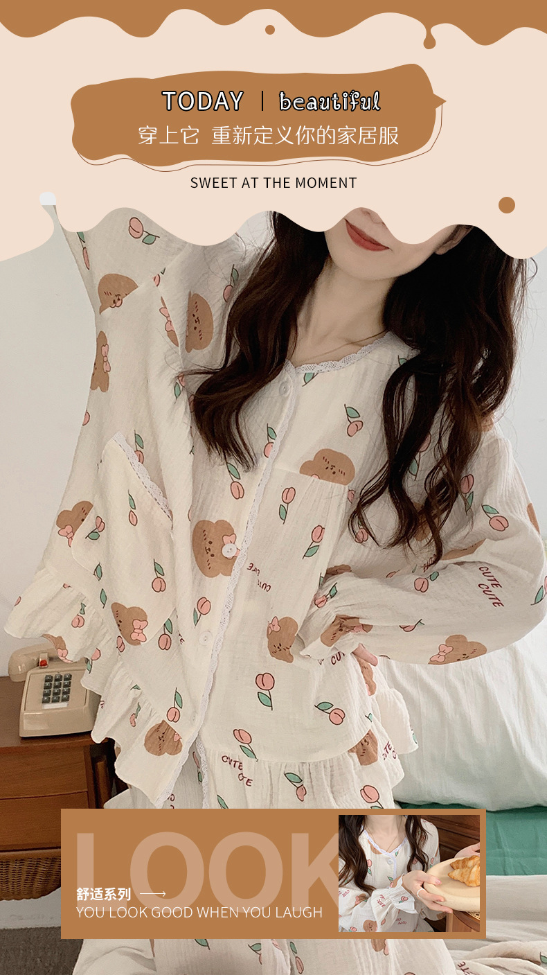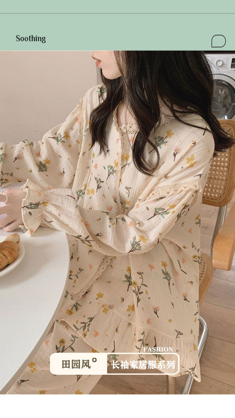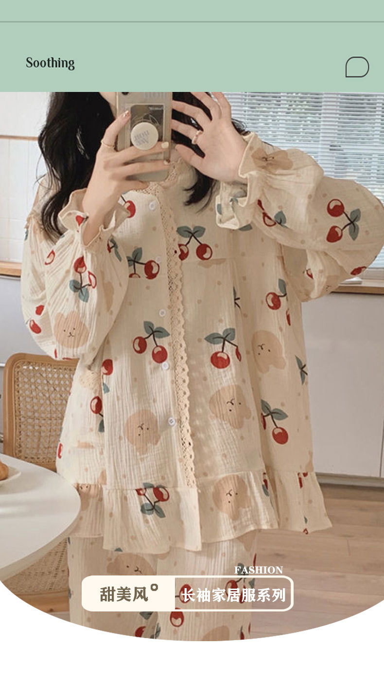 잠옷 여자의 봄과 가을 TikTok 라이브 폭발 소스 공장 긴 소매 세트 한국 스타일 귀여운 가정 옷