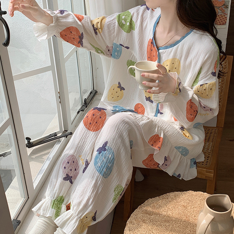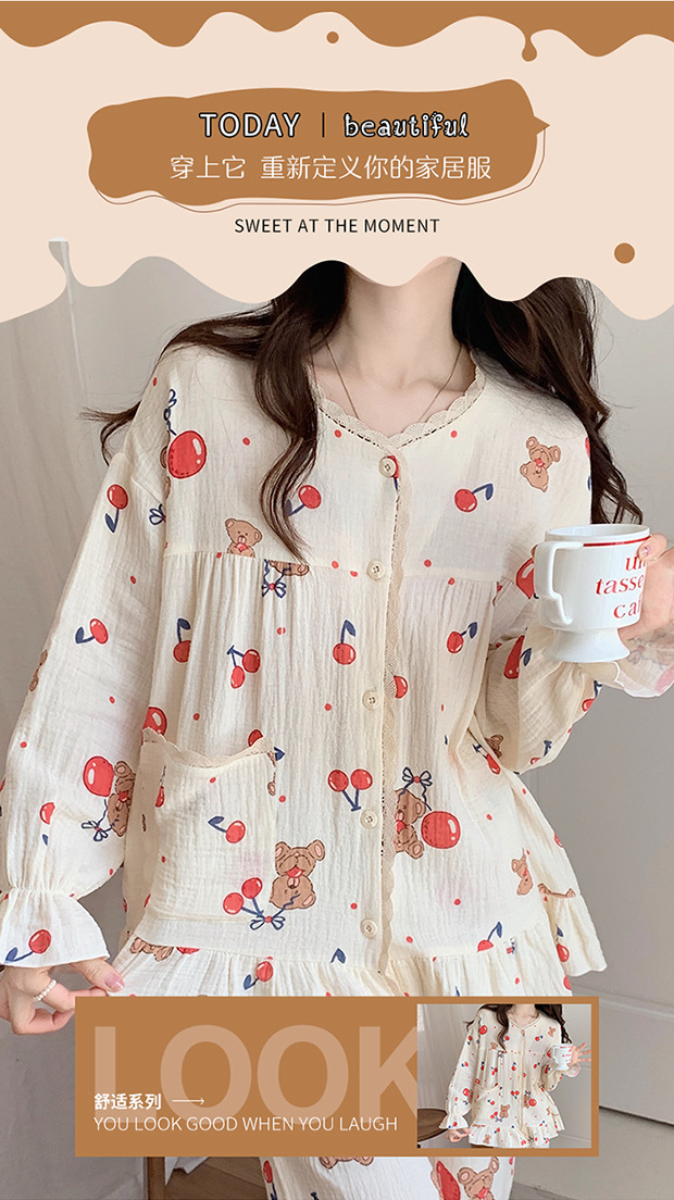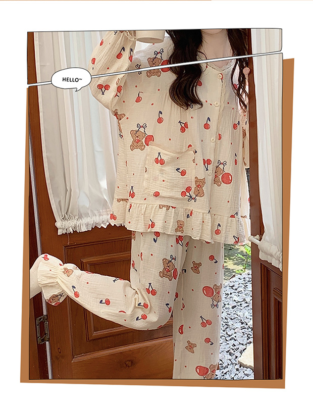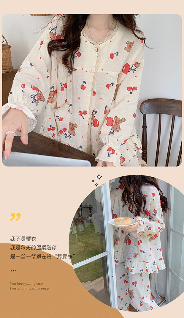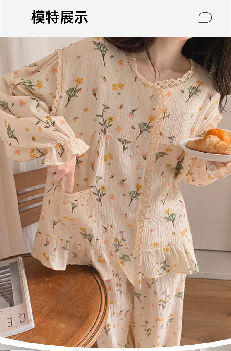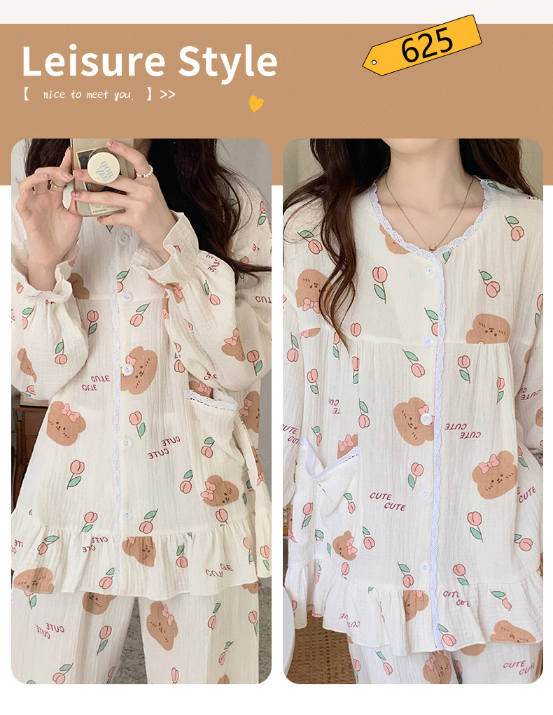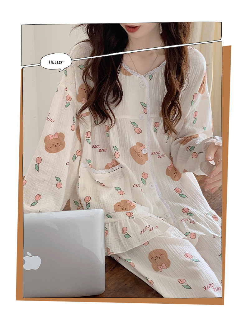 잠옷 여자의 봄과 가을 TikTok 라이브 폭발 소스 공장 긴 소매 세트 한국 스타일 귀여운 가정 옷