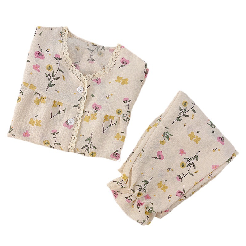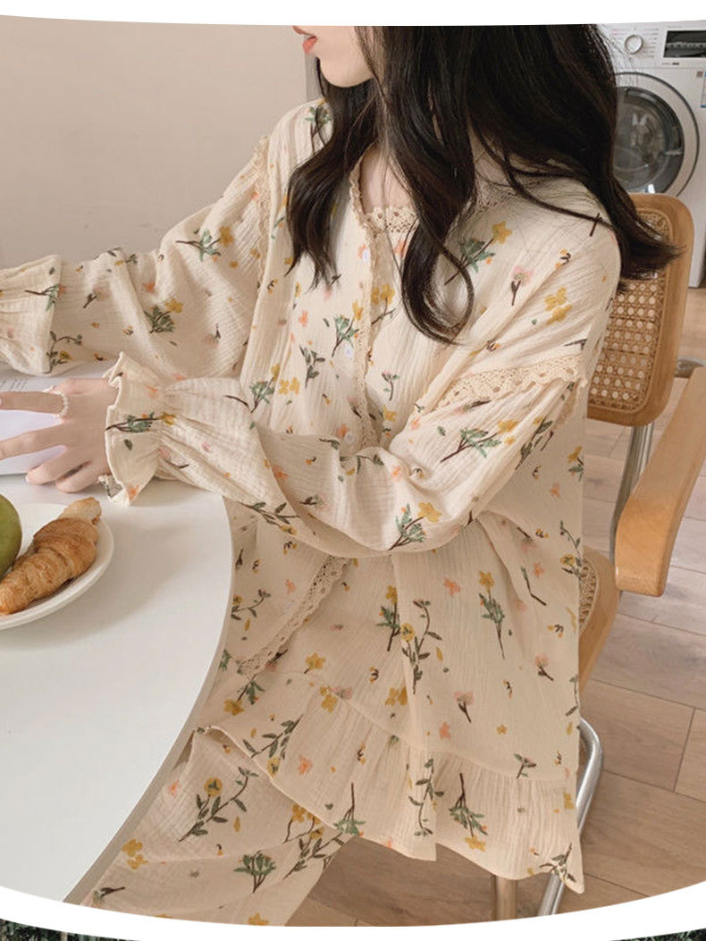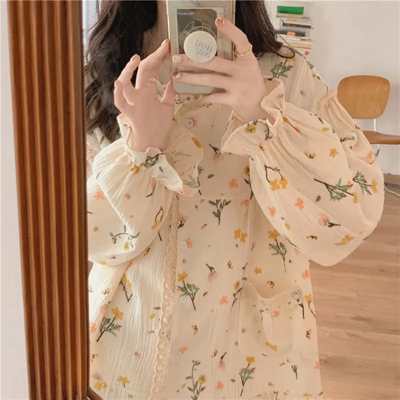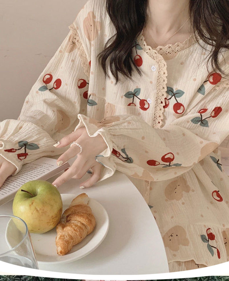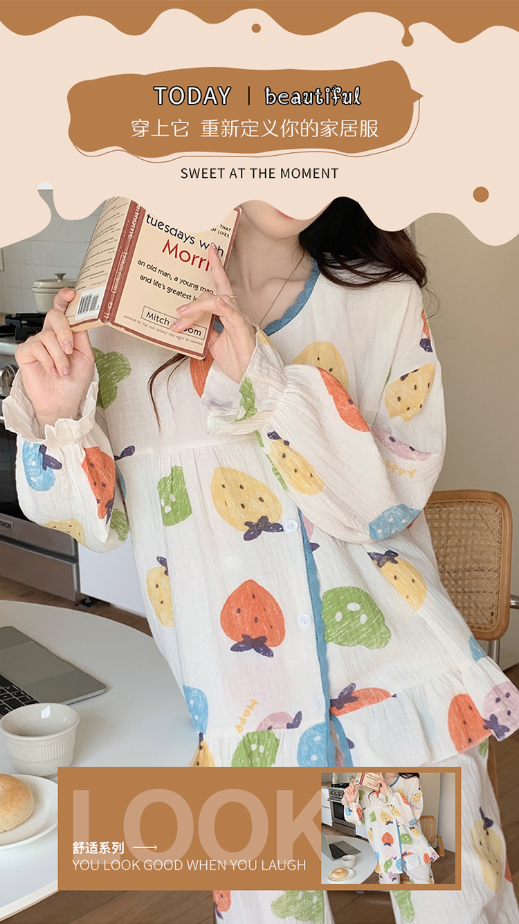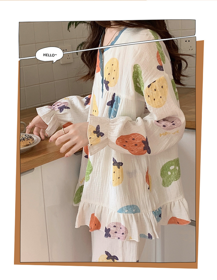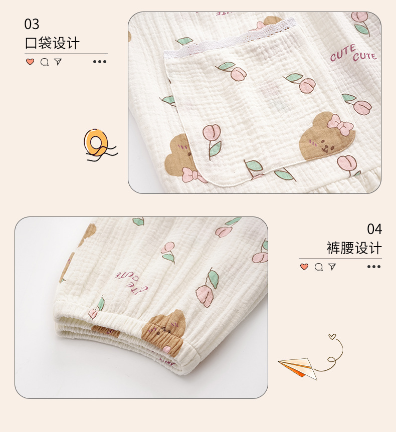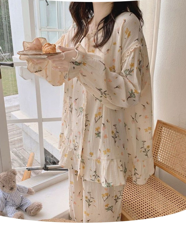 잠옷 여자의 봄과 가을 TikTok 라이브 폭발 소스 공장 긴 소매 세트 한국 스타일 귀여운 가정 옷