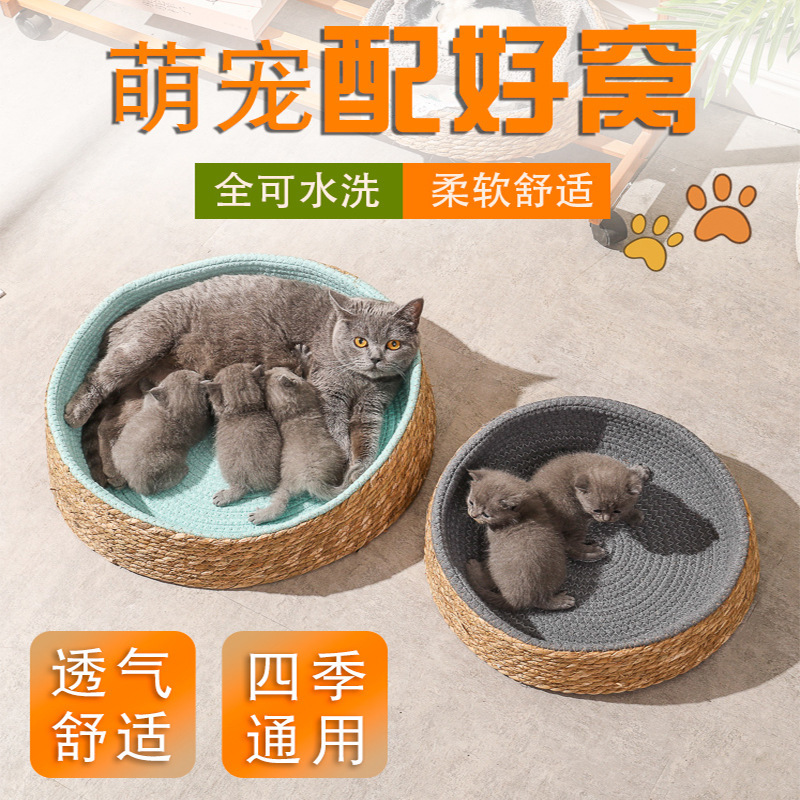 국경 밀짚 짠 사계절 보편적 인 고양이 둥지 북쪽 일본 개집 고양이 스크래치 보드 유럽 스타일 인터넷 유명인 등나무 짠 애완 동물 둥지 매트 재고