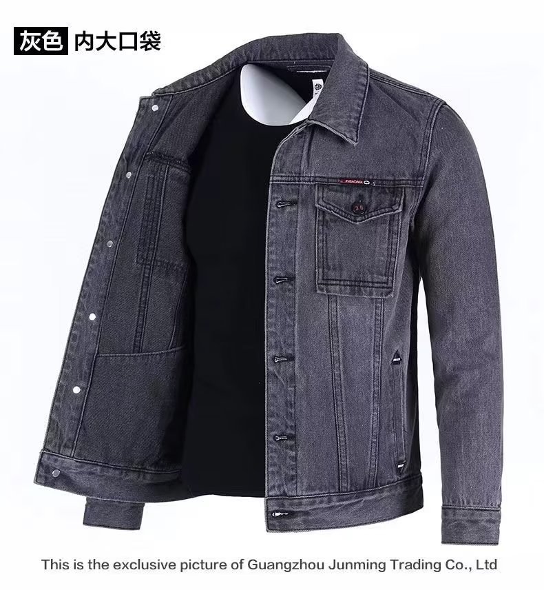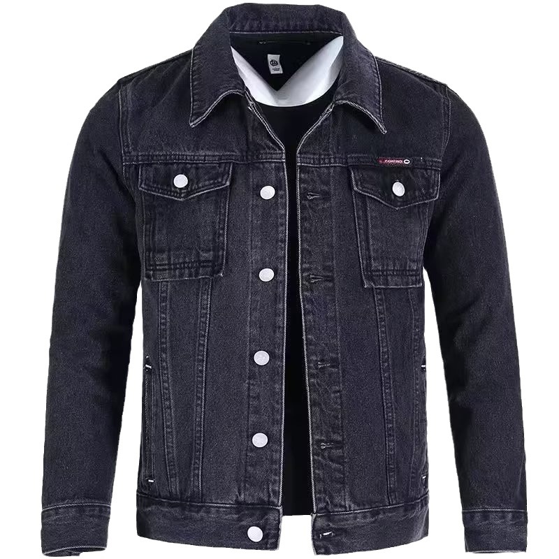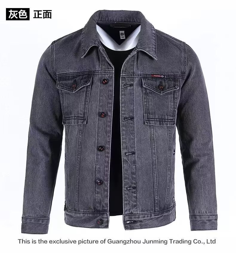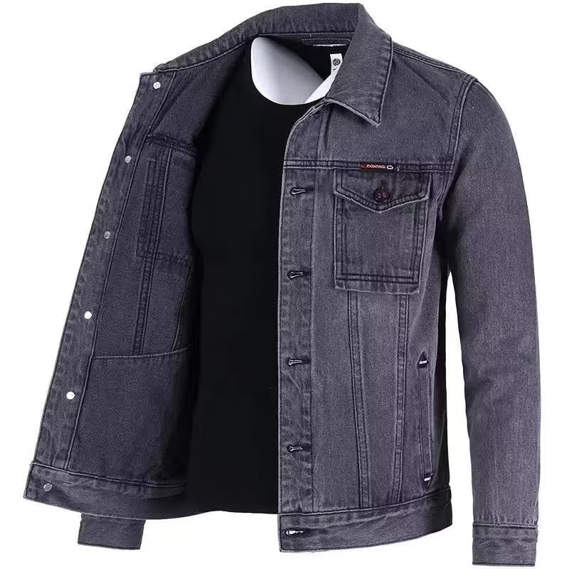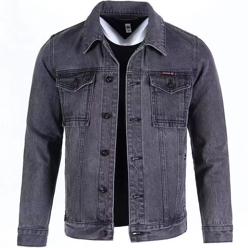 단색 데님 재킷 남자의 느슨한 플러스 사이즈 재킷 2023 가을 새로운 남자의 회색 캐주얼 데님 남성 의류