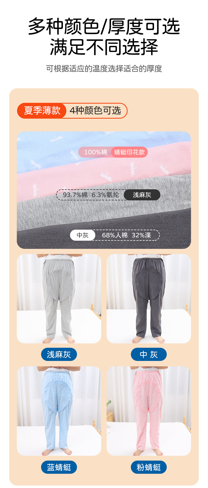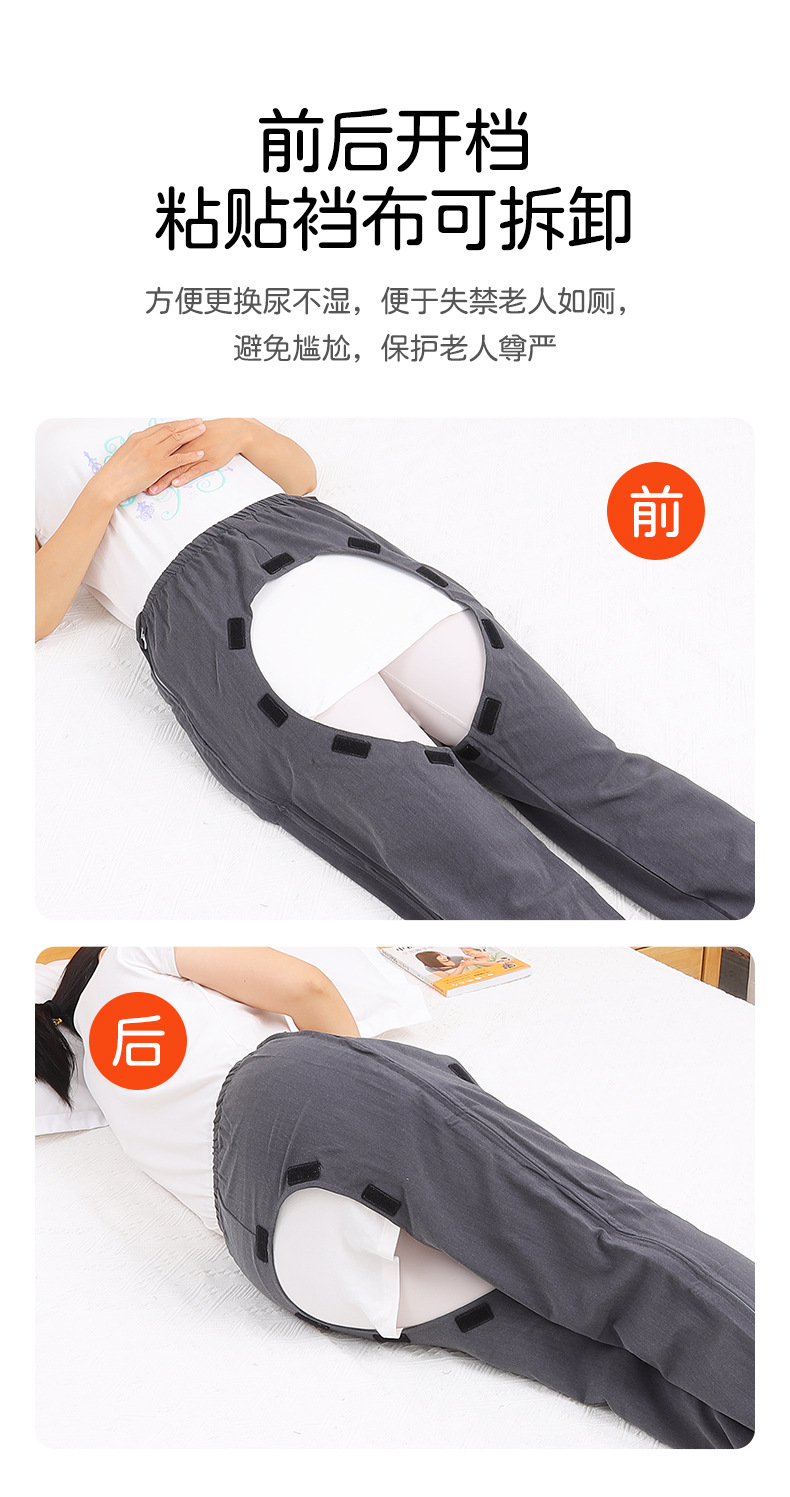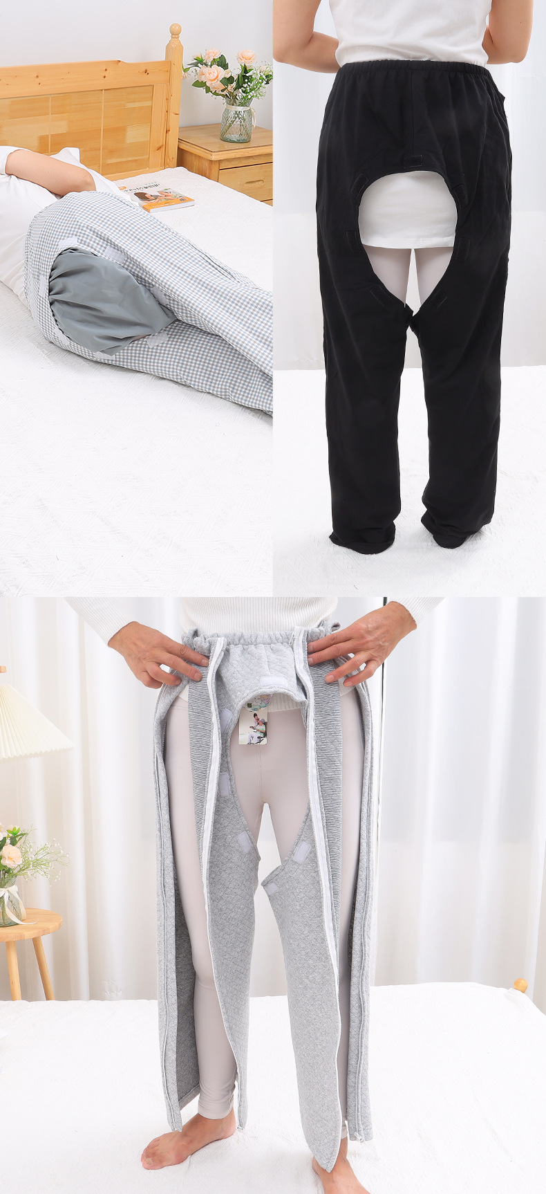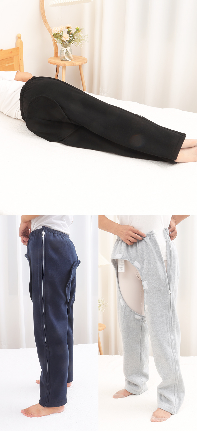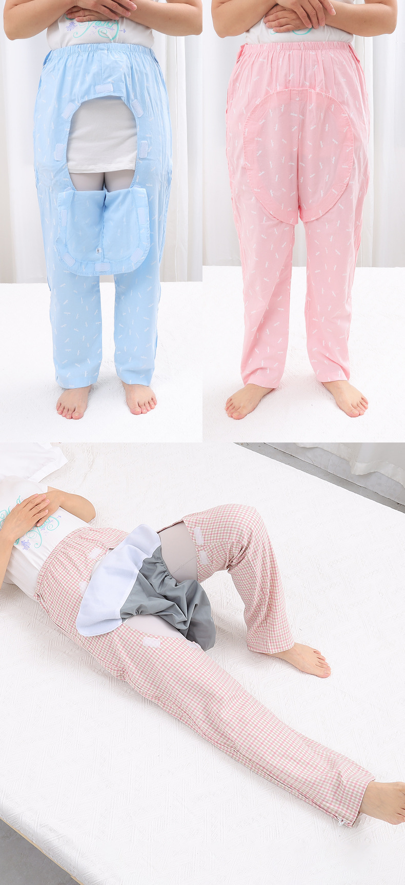 침대에서 노인을위한 완전 오픈 가랑이 바지, 파자마 바지, 봄과 여름을위한 지퍼 바지