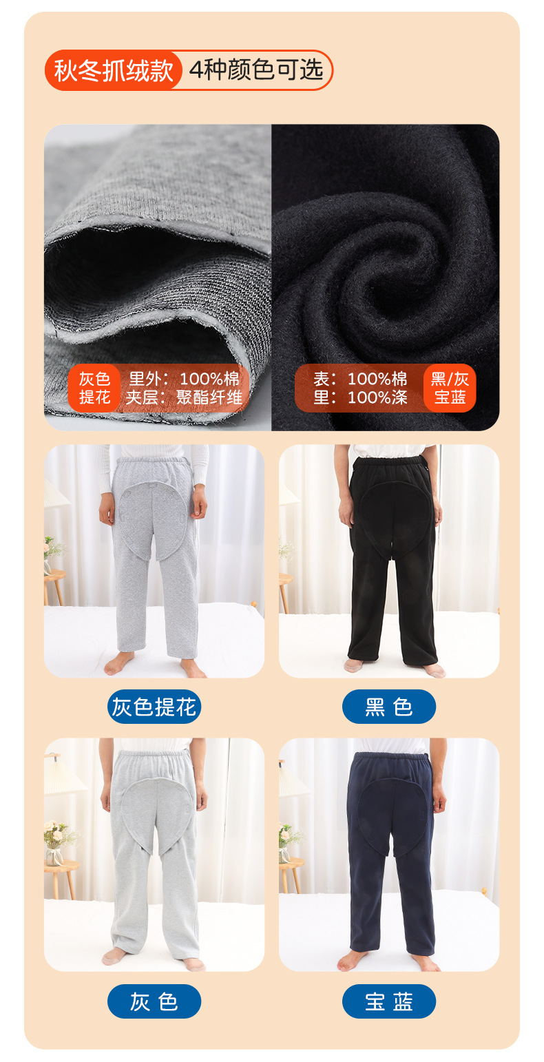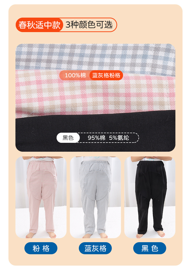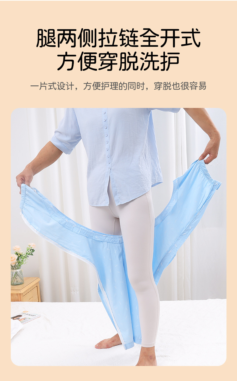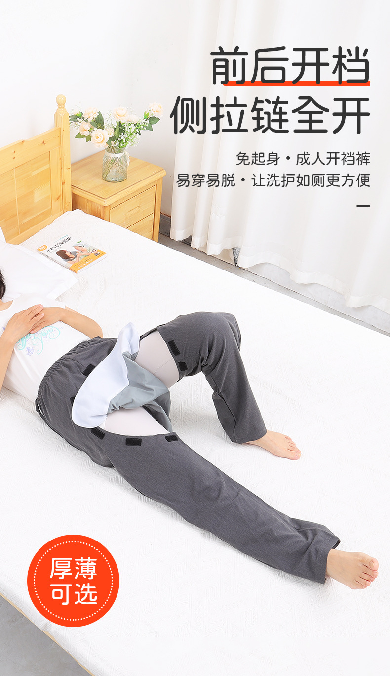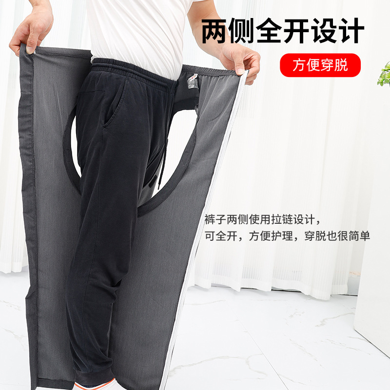 침대에서 노인을위한 완전 오픈 가랑이 바지, 파자마 바지, 봄과 여름을위한 지퍼 바지
