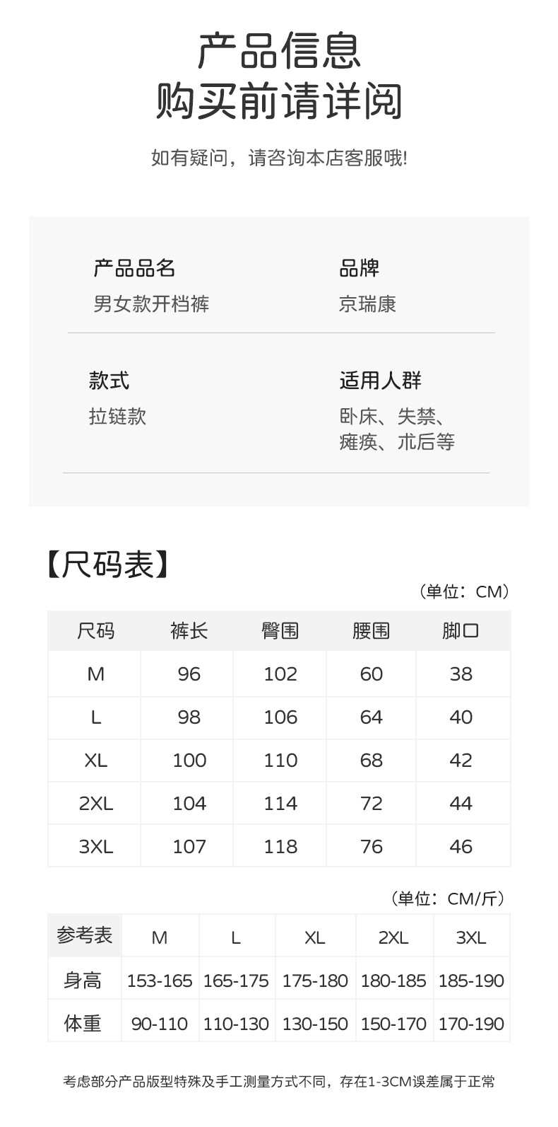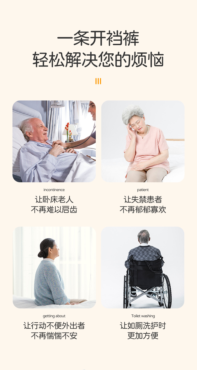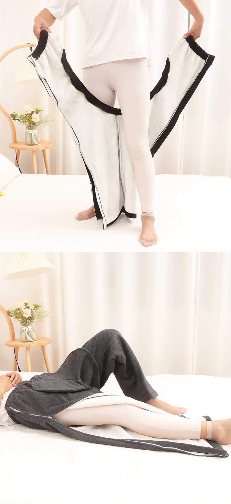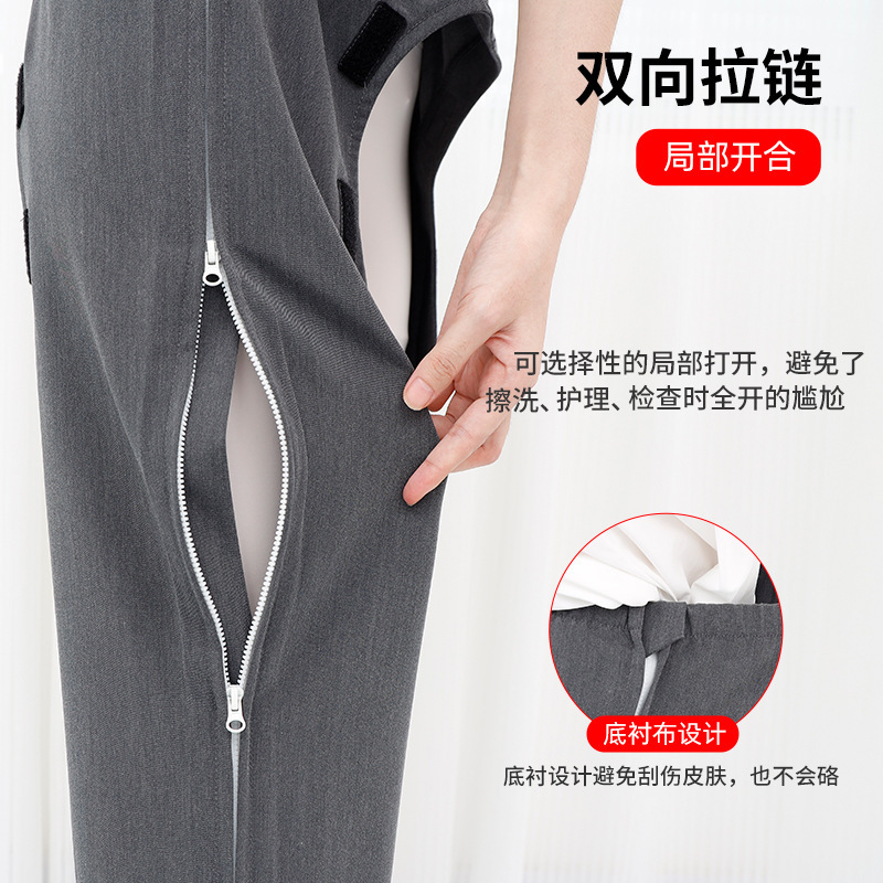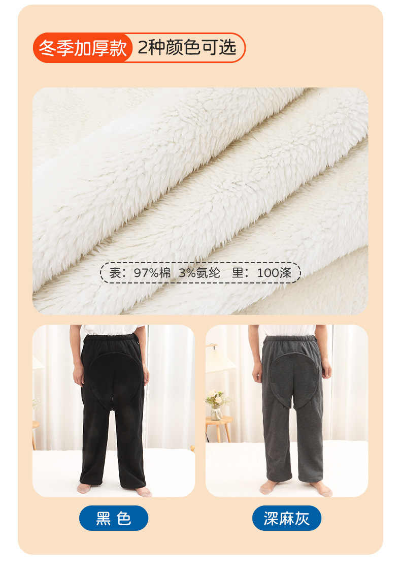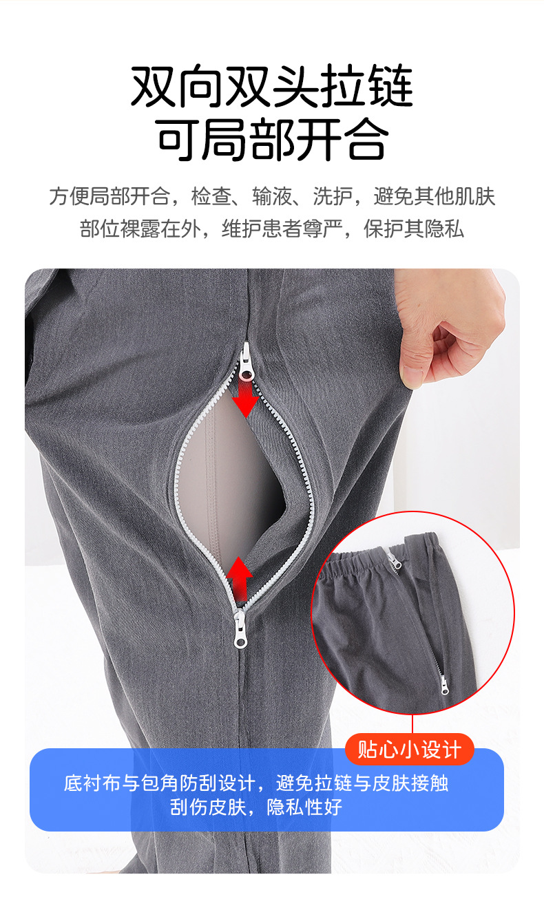 침대에서 노인을위한 완전 오픈 가랑이 바지, 파자마 바지, 봄과 여름을위한 지퍼 바지