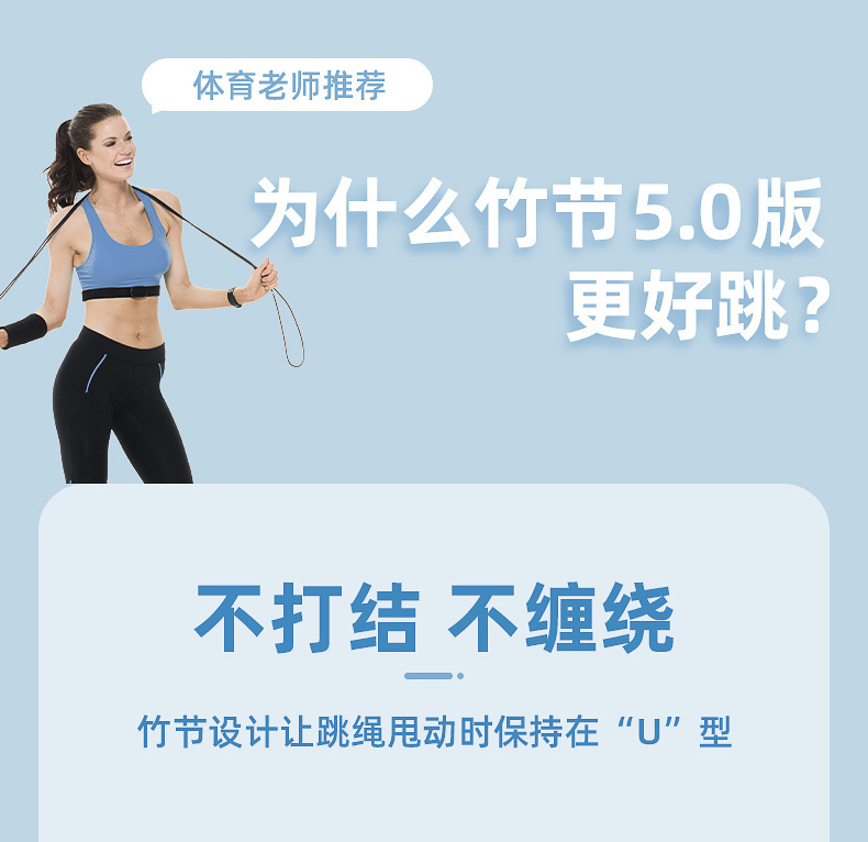 어린이 스포츠 용품을 건너 뛰는 Ovanda 대나무 밧줄 레이싱 피트니스 로프 초등학생 도매 로프 건너 뛰기 조정 가능한 로프