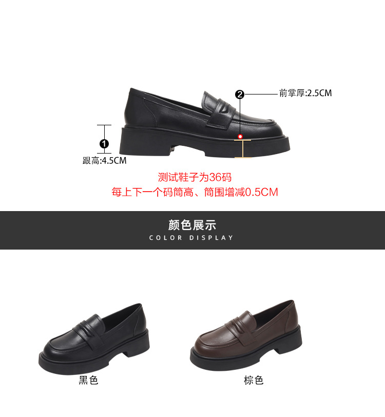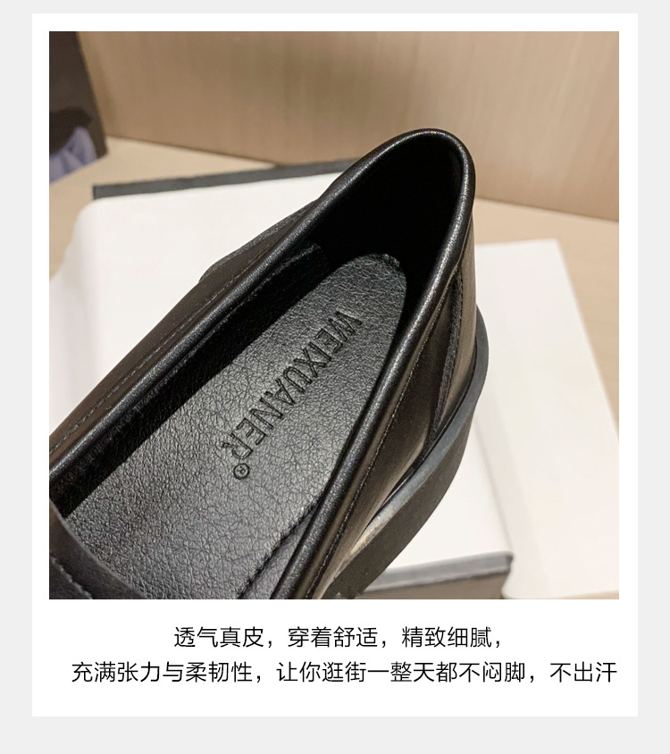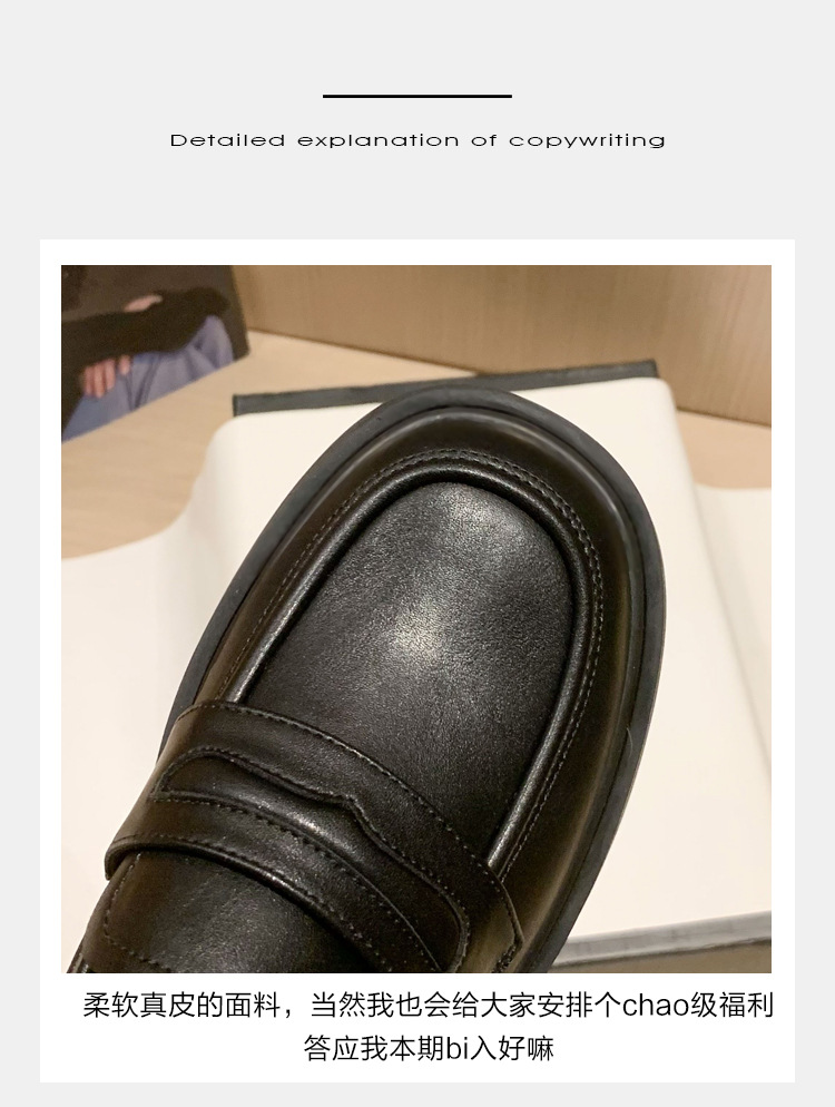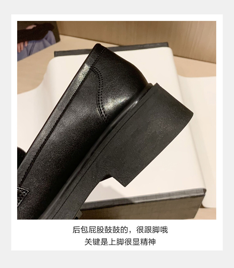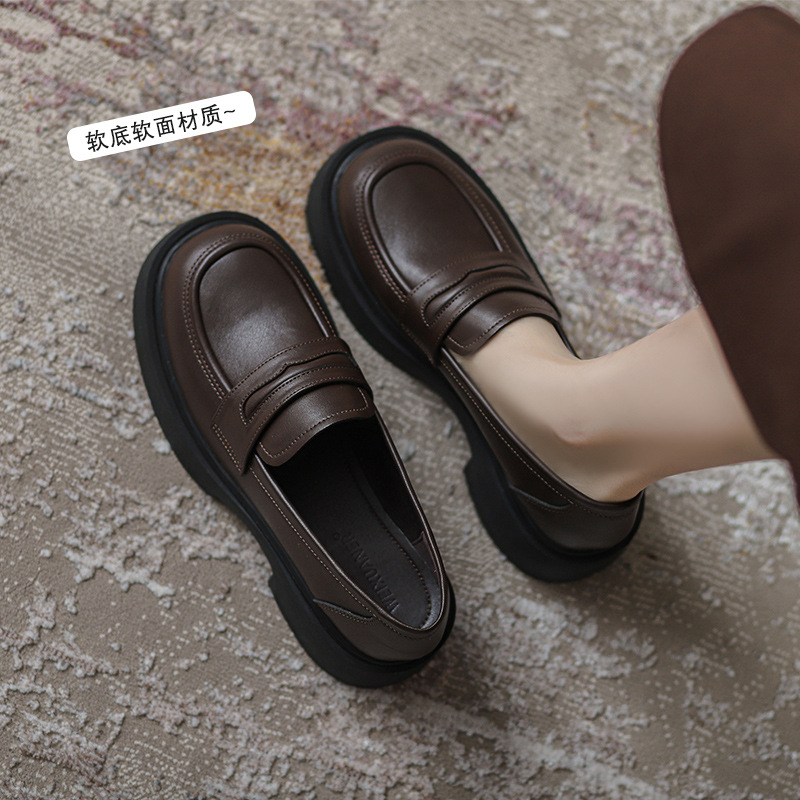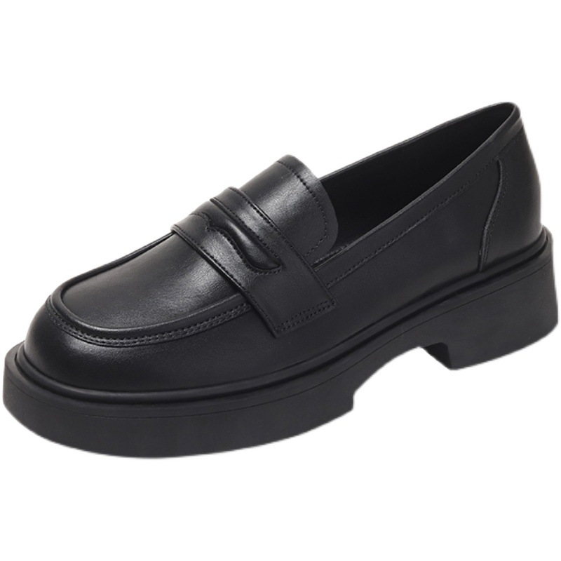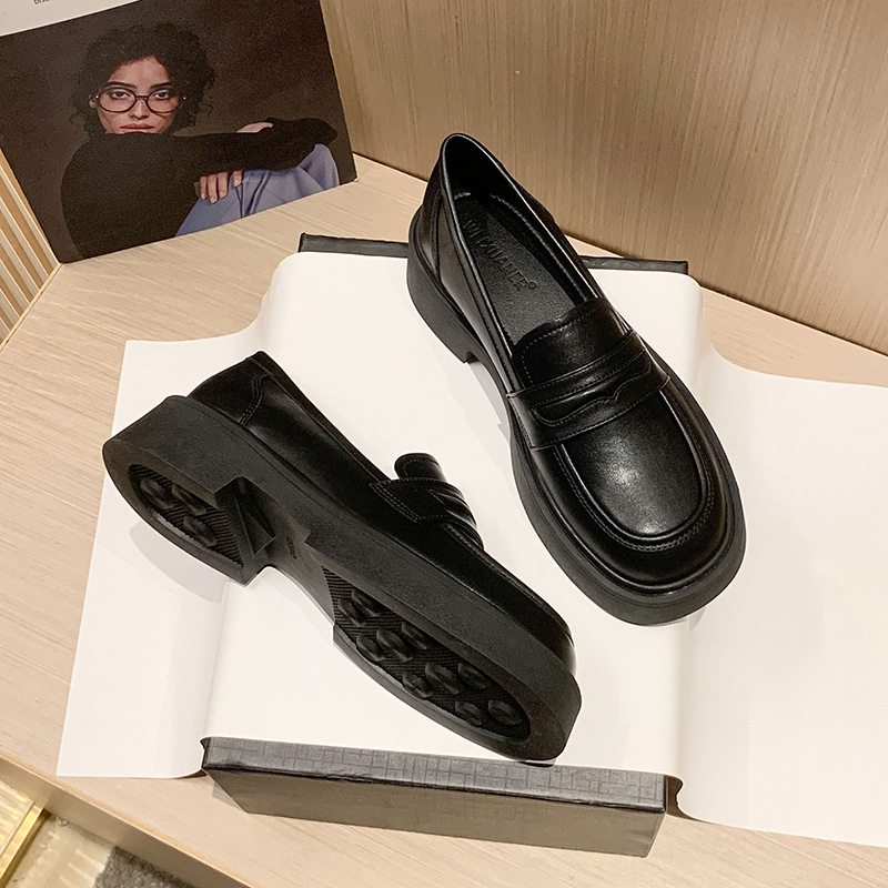 부드러운 소가죽 ~ Su Yinyin 같은 스타일 블랙 가죽 로퍼 여성용 소형 가죽 신발 영국 스타일 두꺼운 바닥 슬립온 싱글 슈즈
