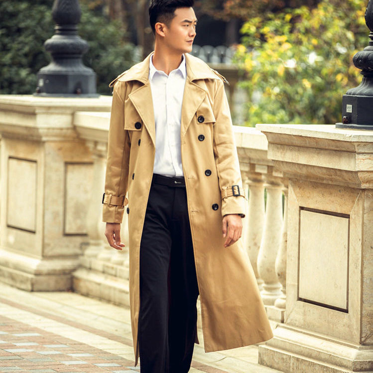 가을과 겨울 트렌치 코트 디자인 센스 2023 시니어 남성용 중간 길이 오버 니 핸섬 웨어 브리티시 스타일 코트 탑