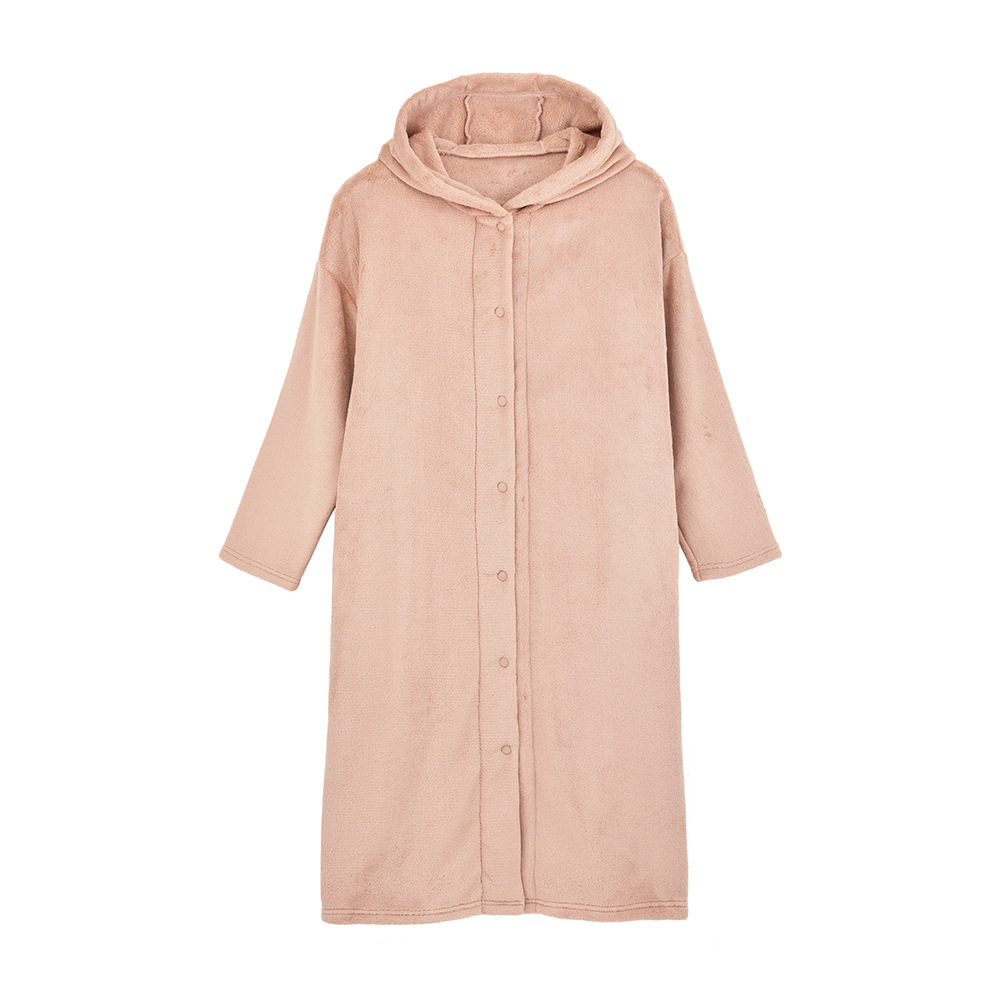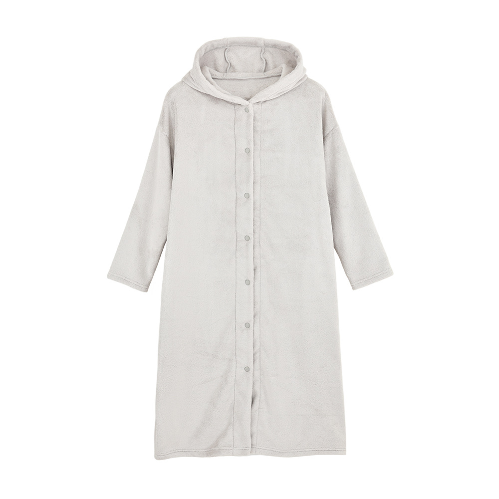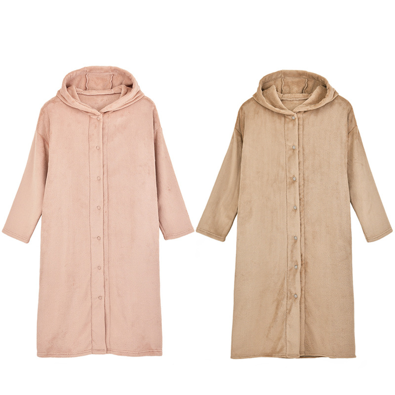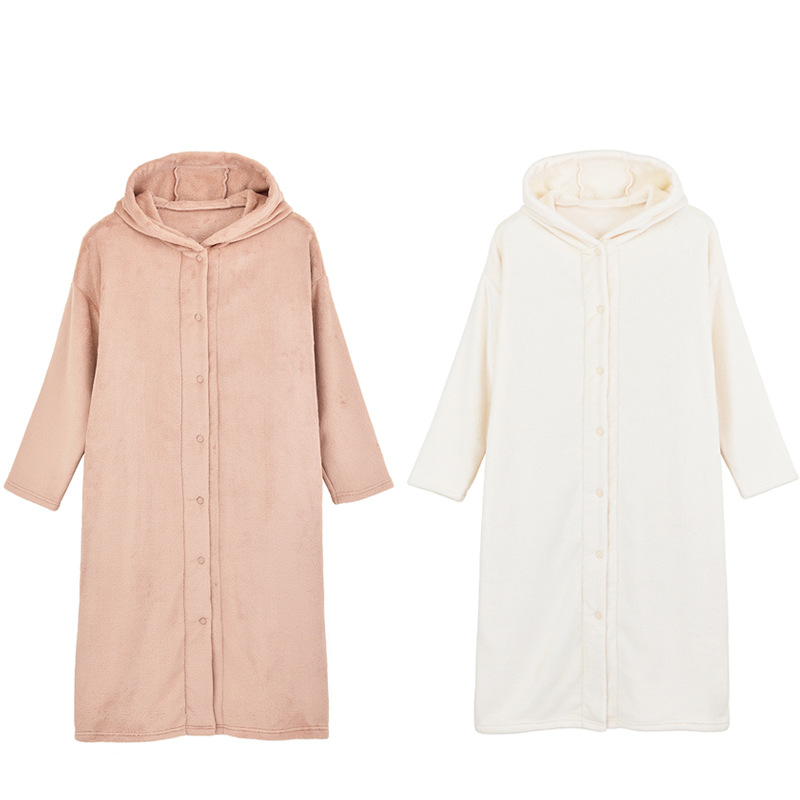 무인양품 일본식 따뜻한 부드러운 극세사 잠옷 여성용 긴 후드 가디건 잠옷 가을과 겨울 따뜻한 목욕 잠옷