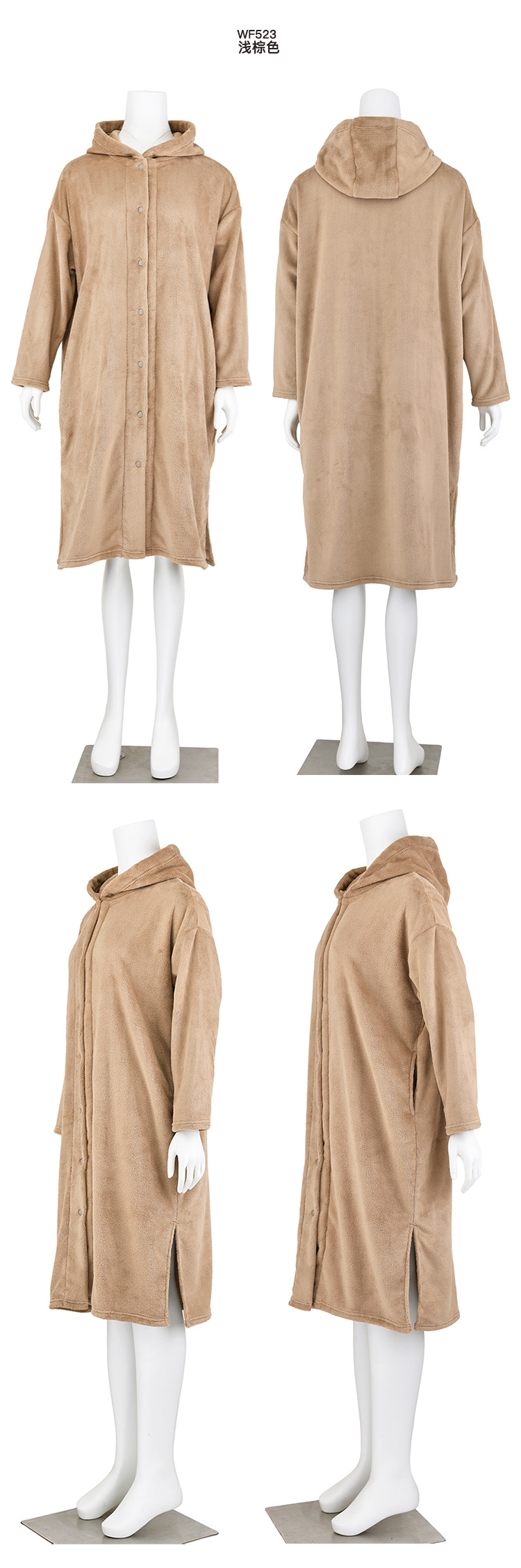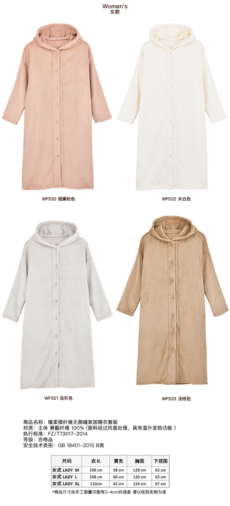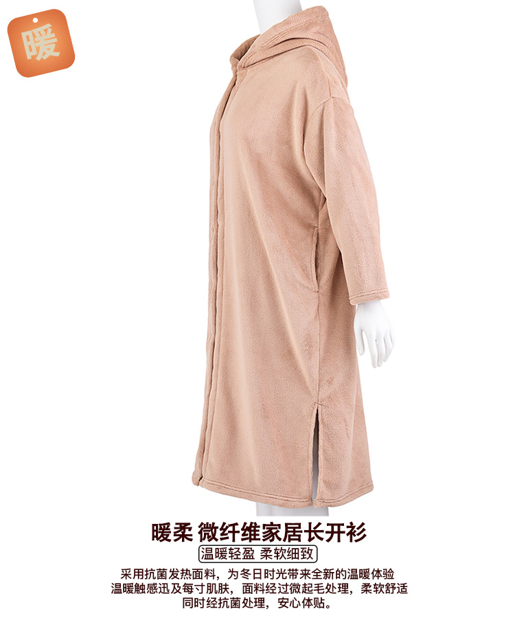 무인양품 일본식 따뜻한 부드러운 극세사 잠옷 여성용 긴 후드 가디건 잠옷 가을과 겨울 따뜻한 목욕 잠옷