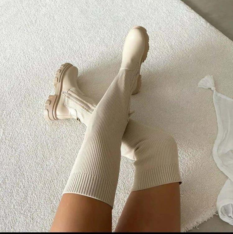 국경 간 외국 무역 플러스 사이즈 높은 부츠 어린이 2021 가을 유럽과 미국 새로운 플러스 사이즈 무릎 둥근 머리 비행 짠 부츠 여성