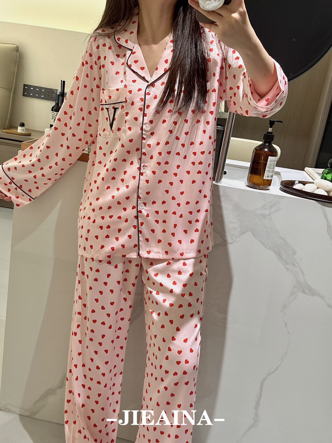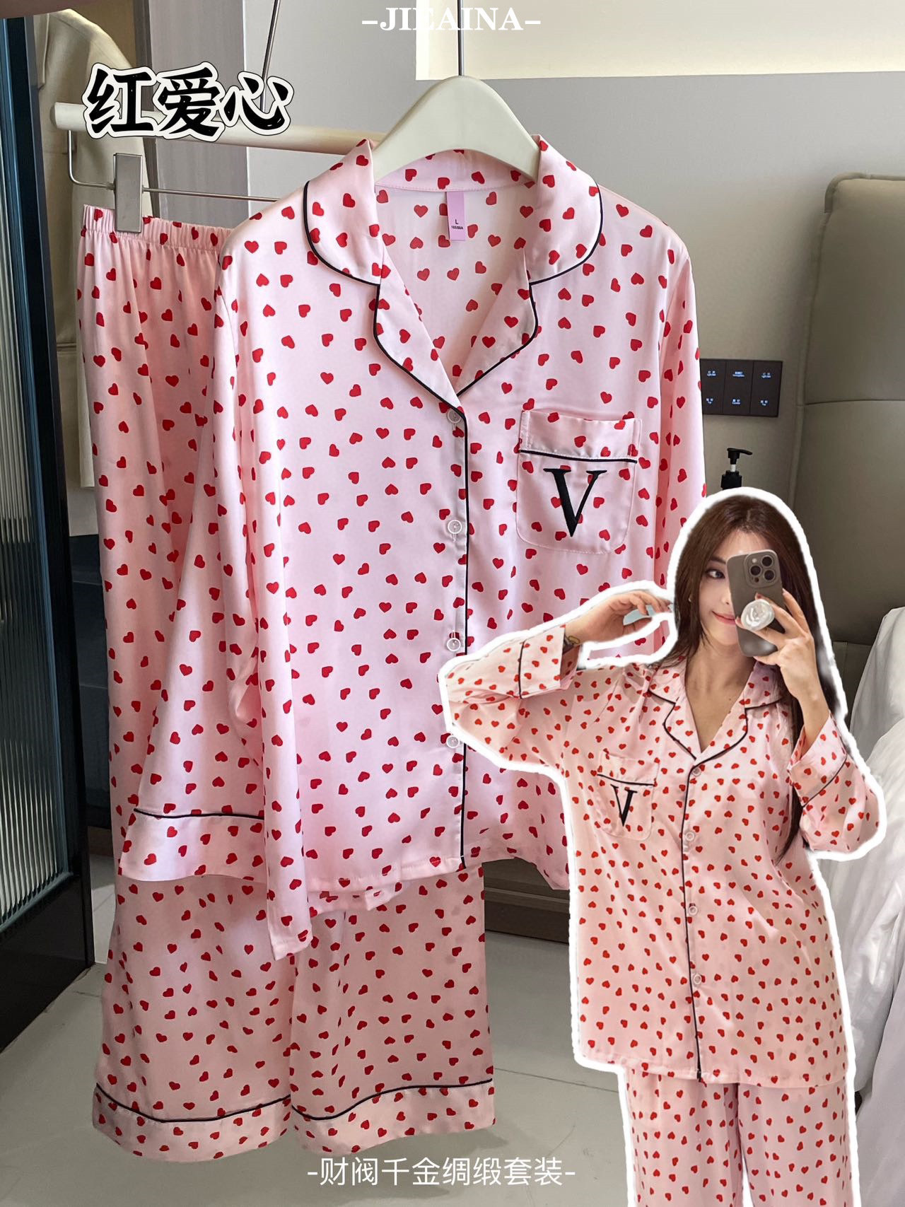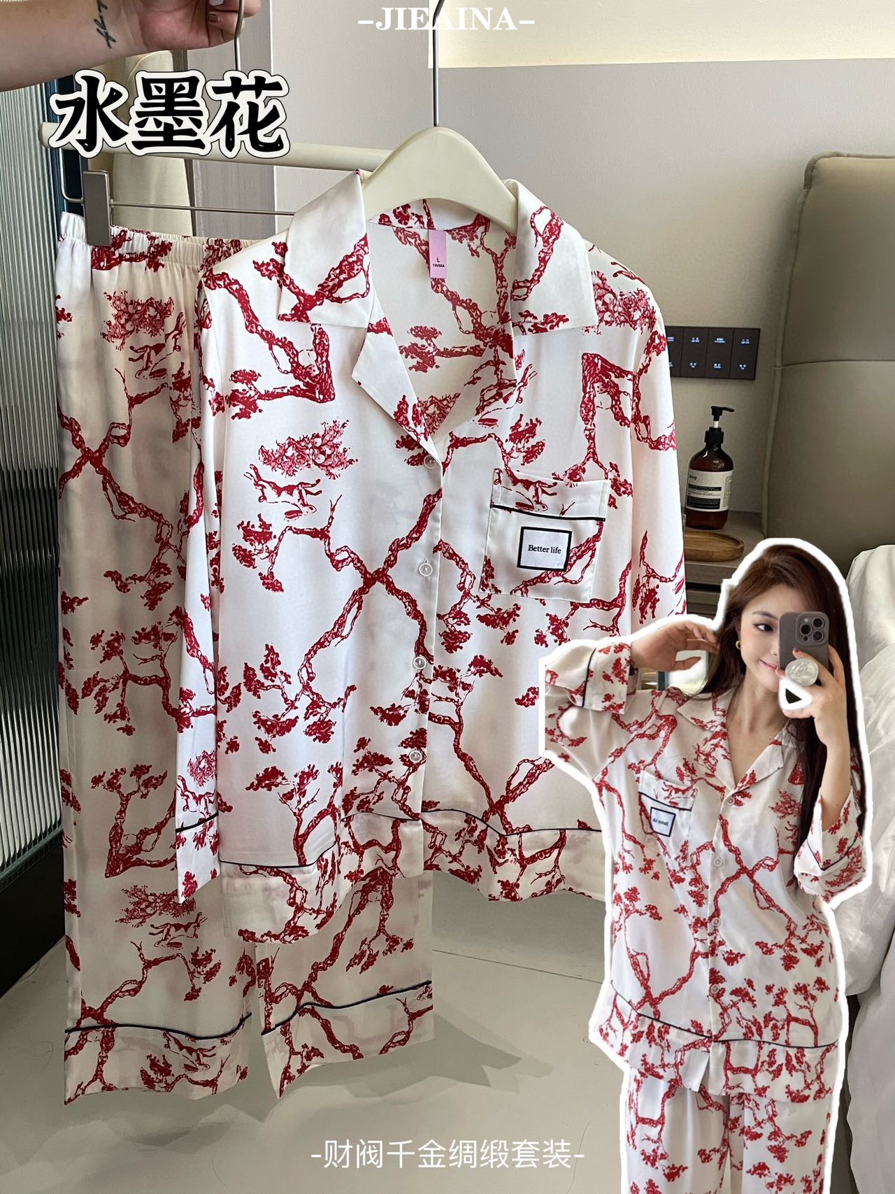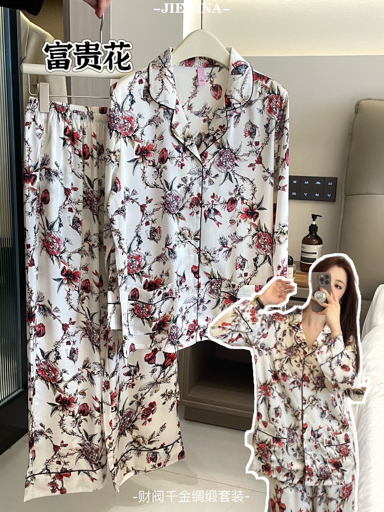 JIEAINA 재벌 딸 새틴 세트 WD126 # 달빛 실크 잠옷 가정 옷