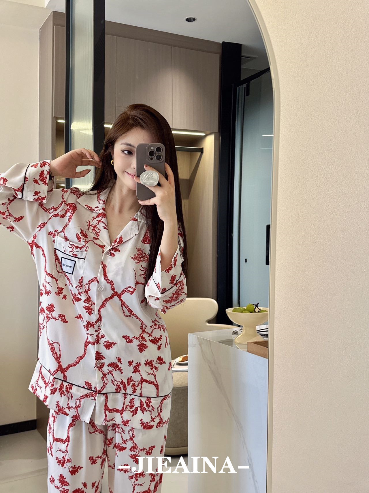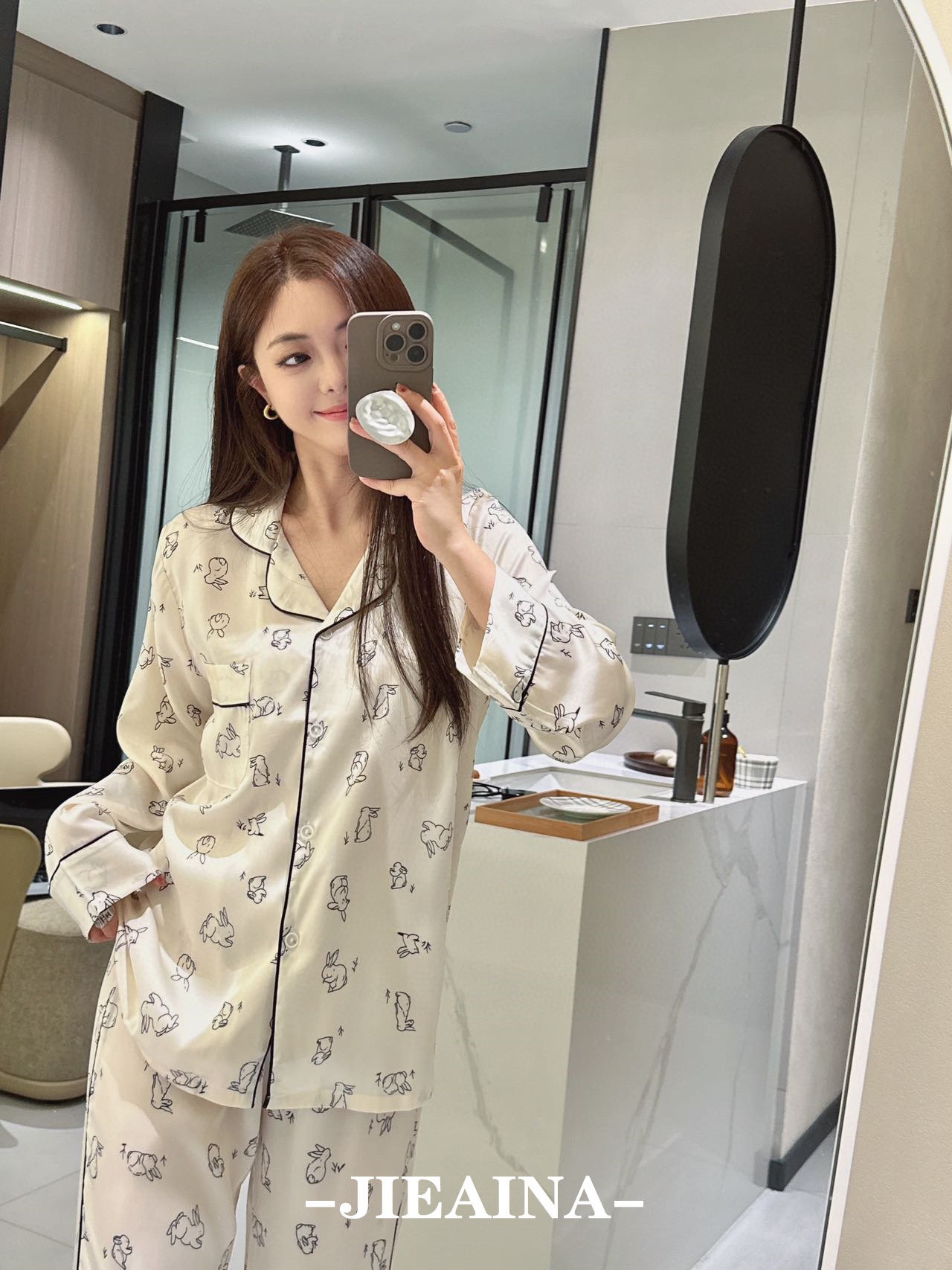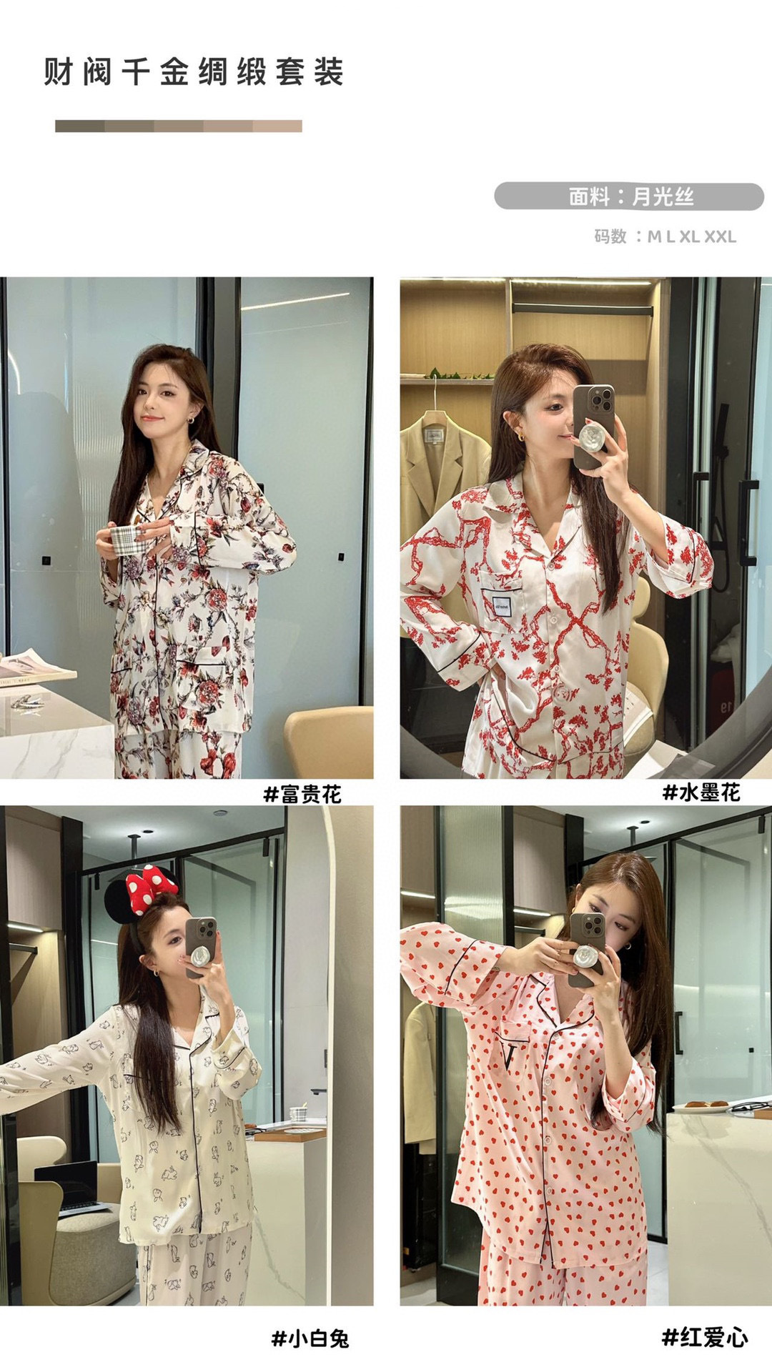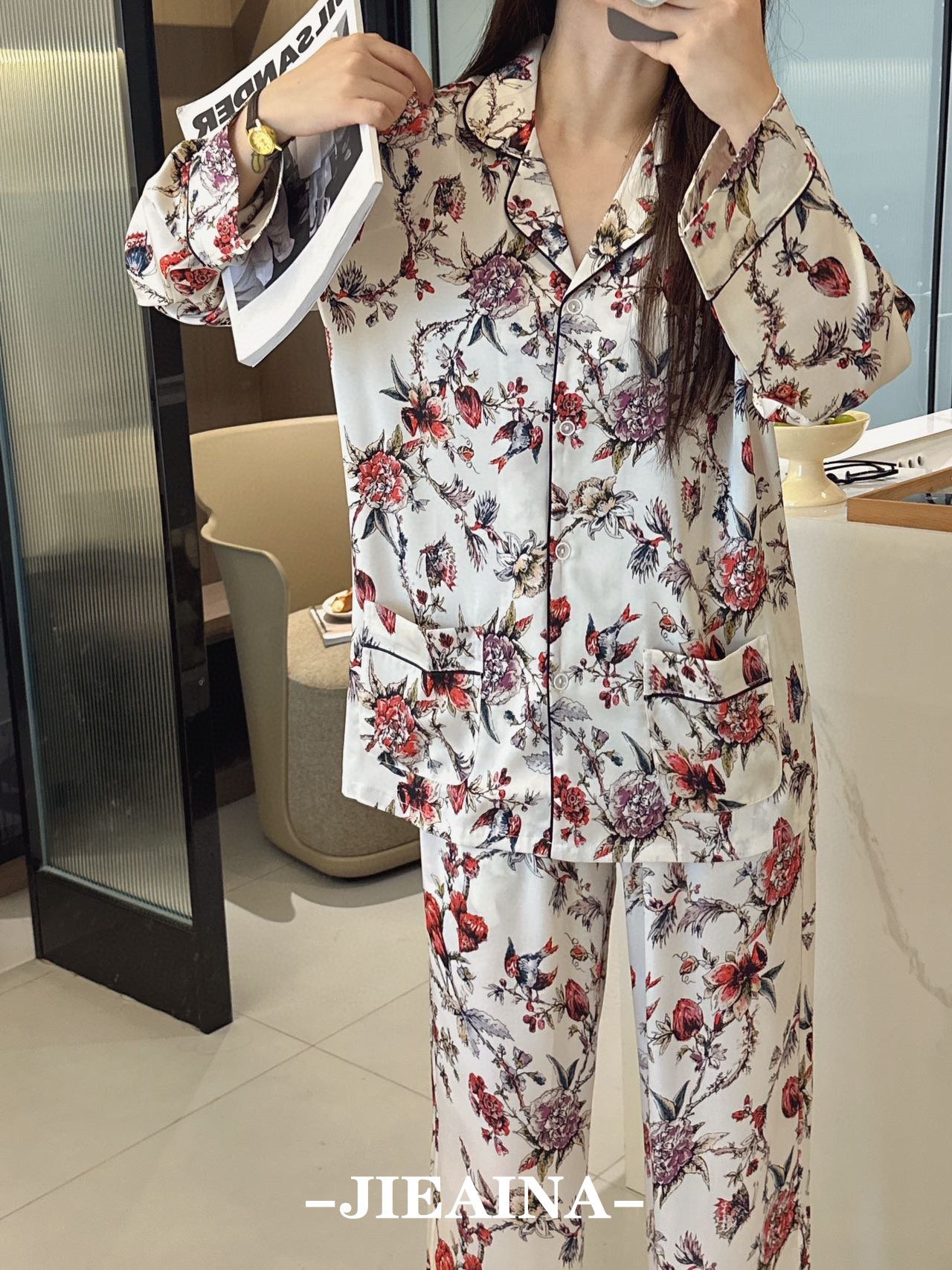 JIEAINA 재벌 딸 새틴 세트 WD126 # 달빛 실크 잠옷 가정 옷