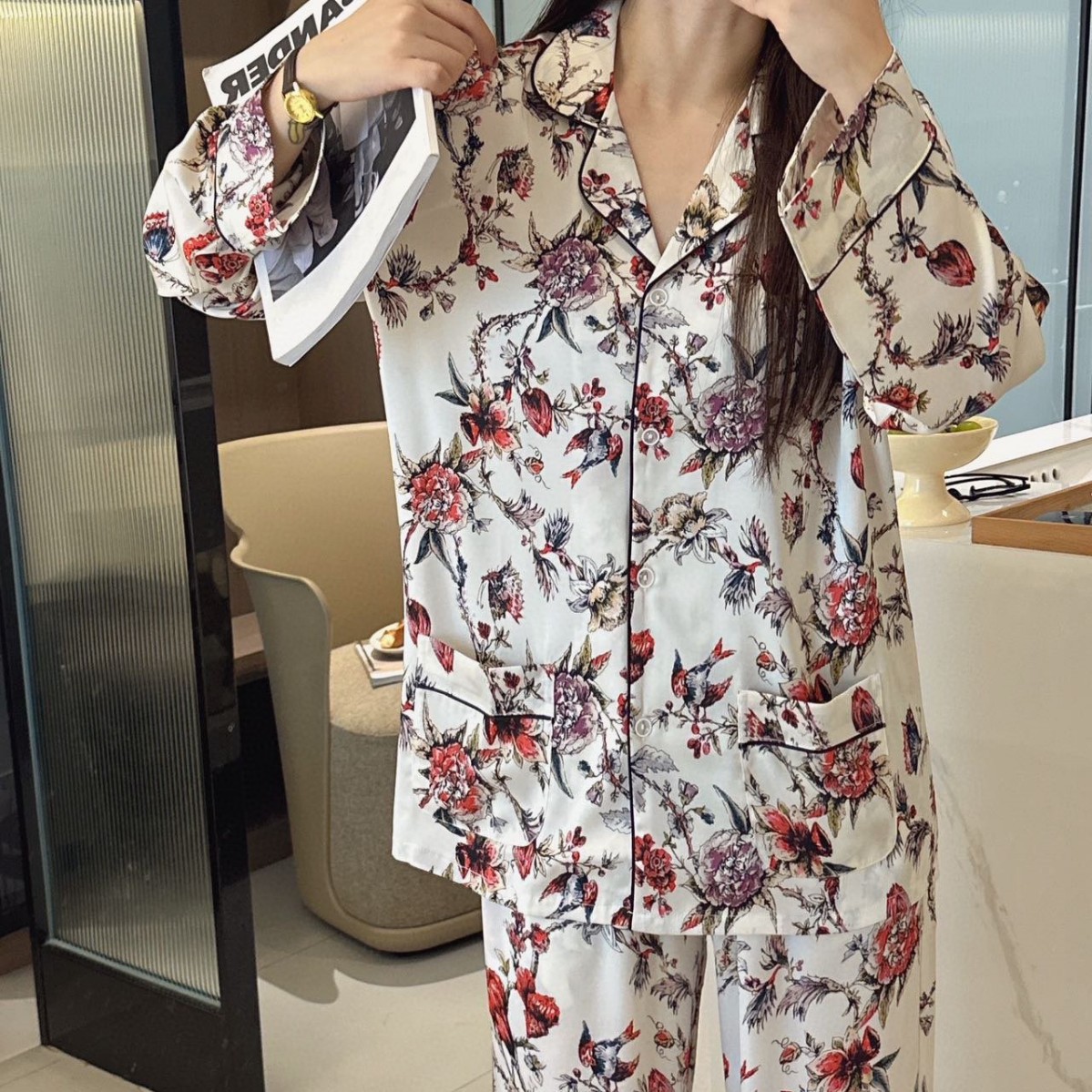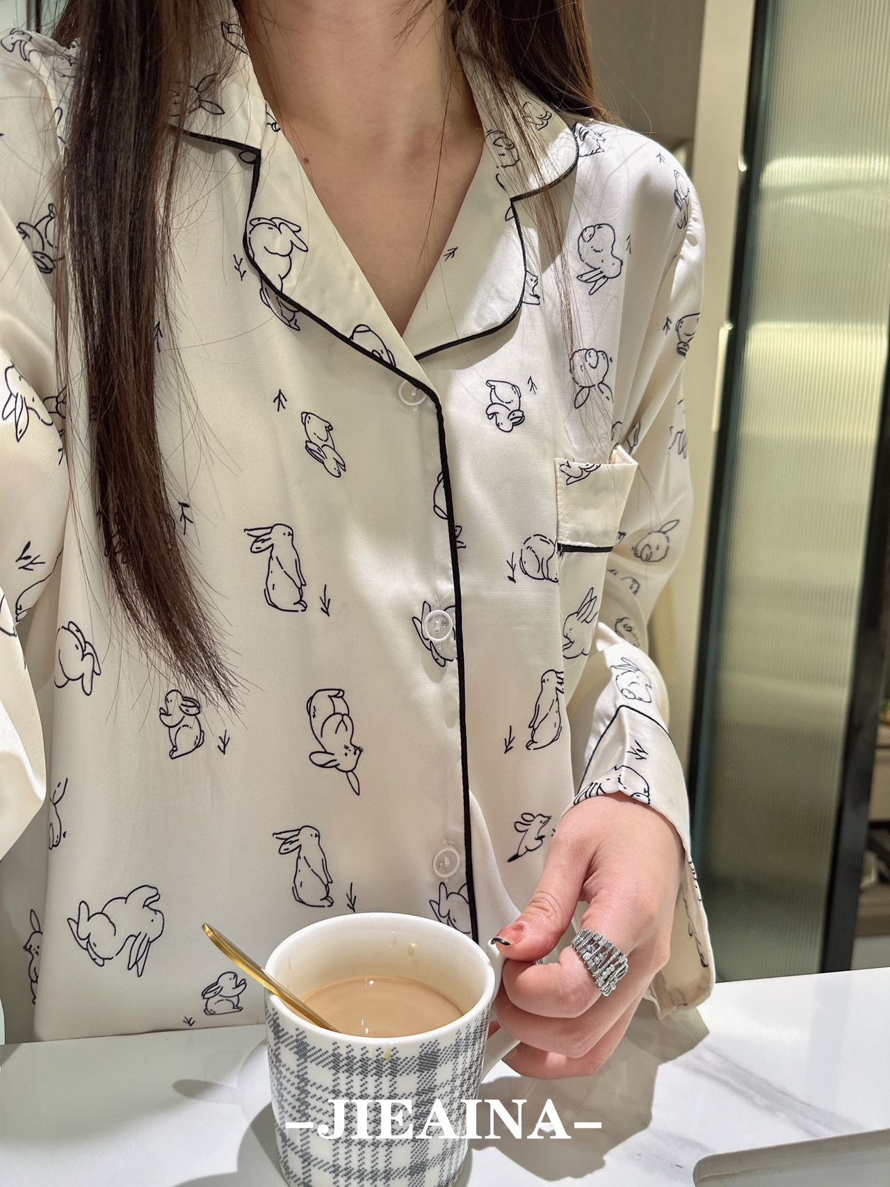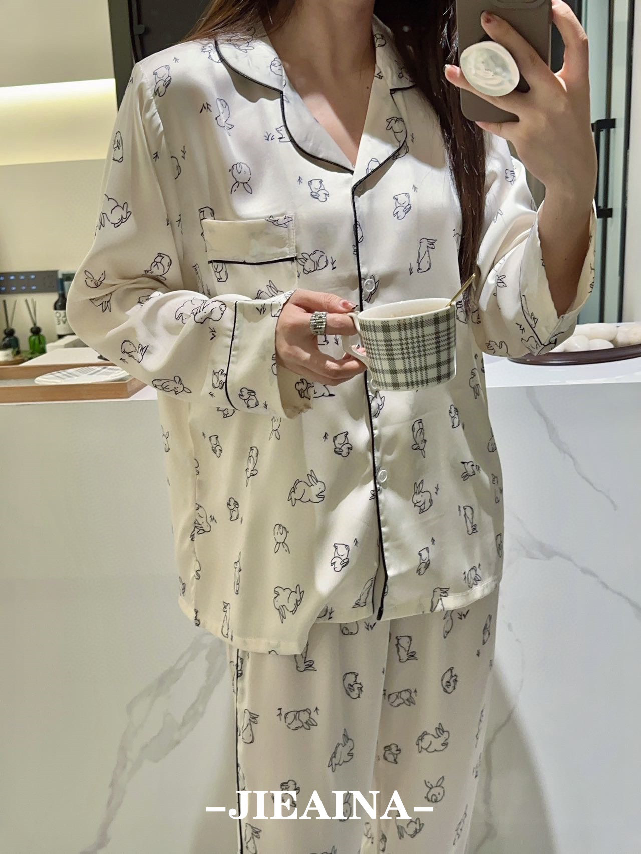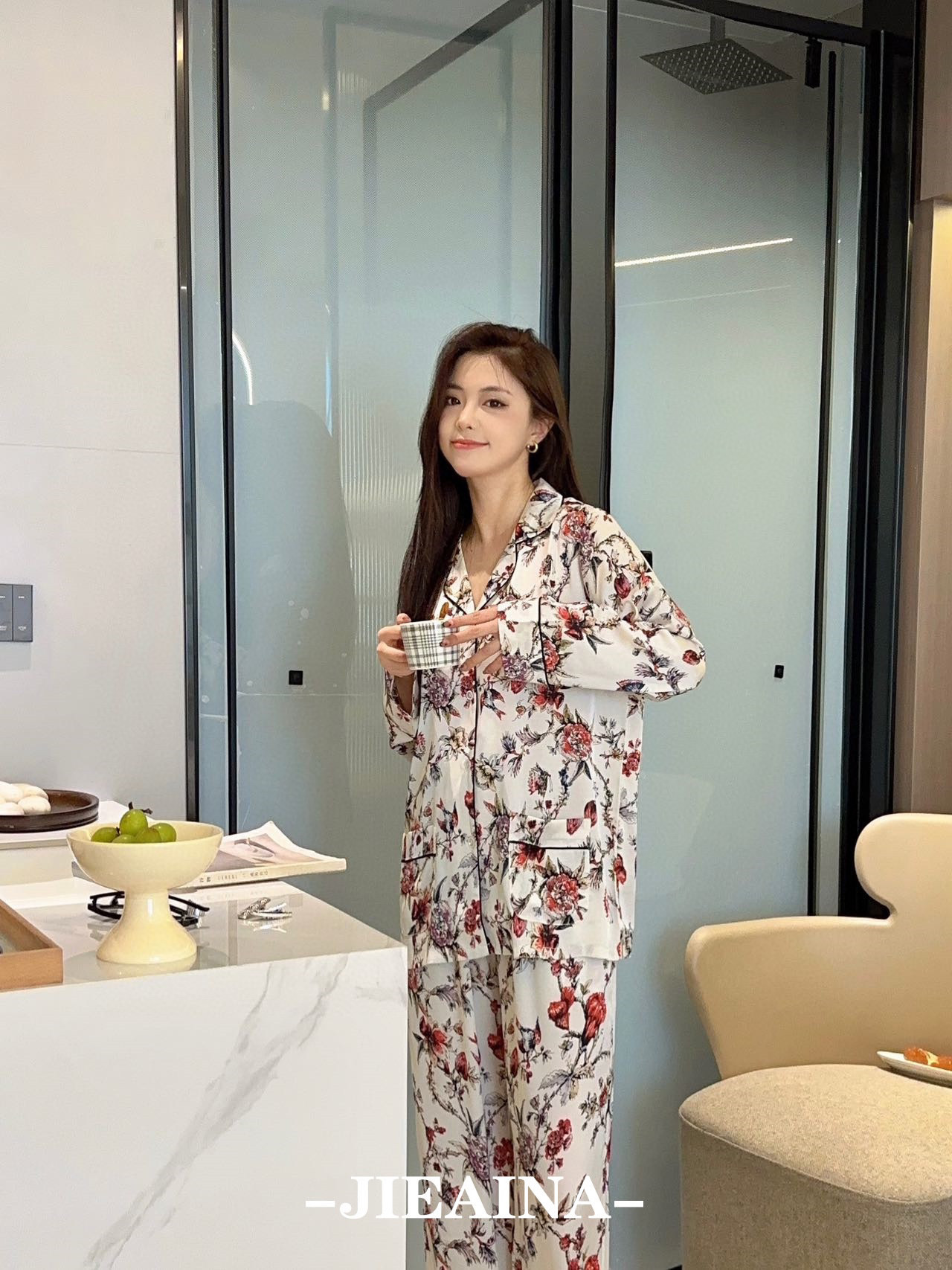 JIEAINA 재벌 딸 새틴 세트 WD126 # 달빛 실크 잠옷 가정 옷