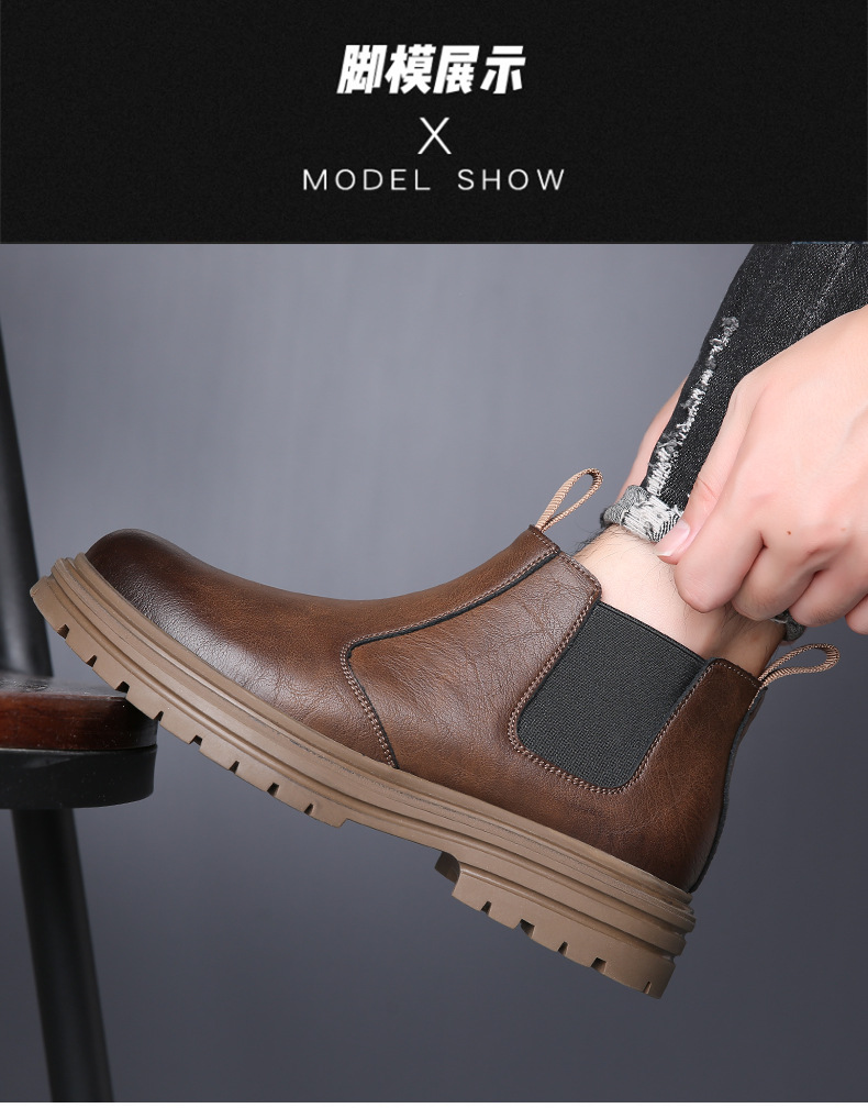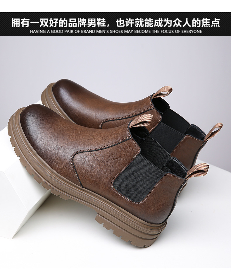 담배 튜브 첼시 부츠 가을 영국 바람 높은 가죽 남성 부츠 기모 따뜻한 마틴 부츠 남성 조수 신발 머리카락의 세대