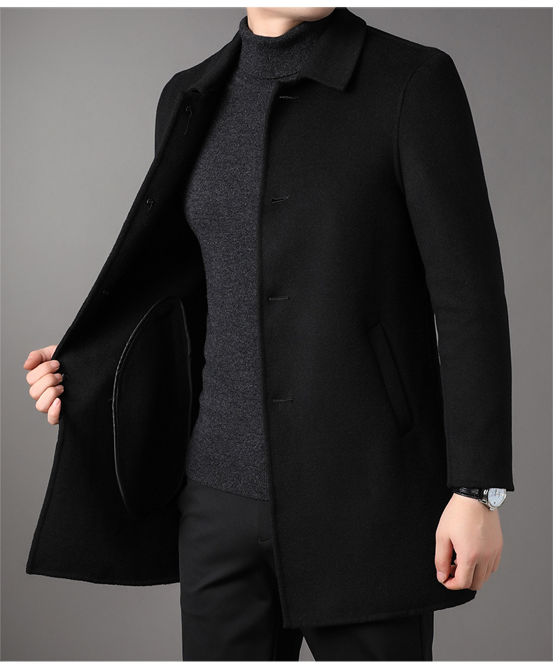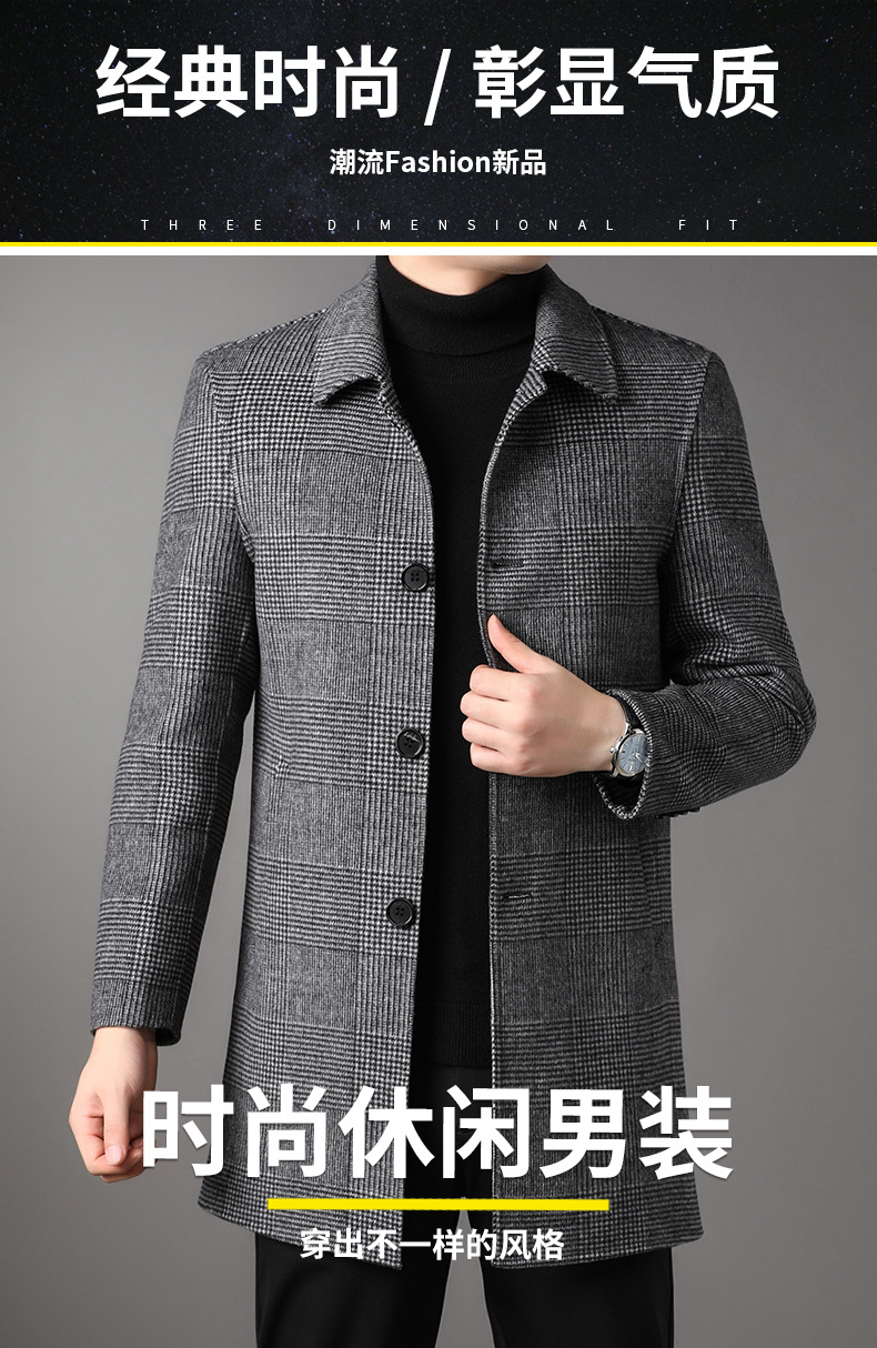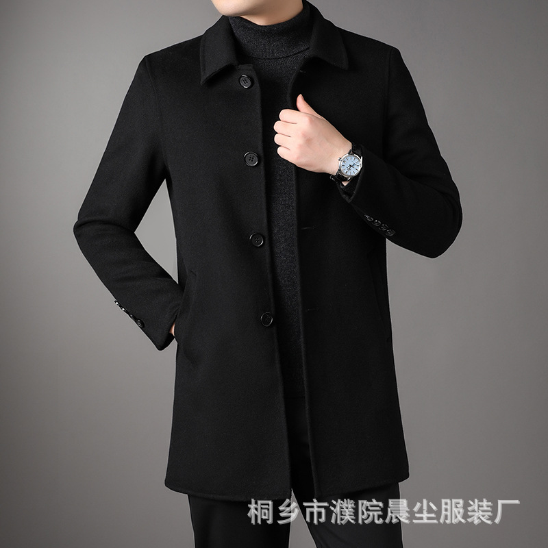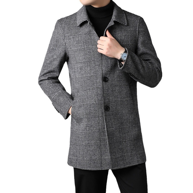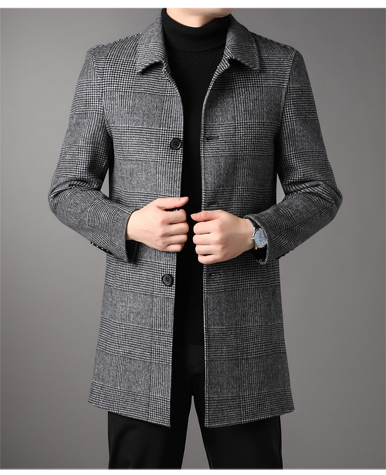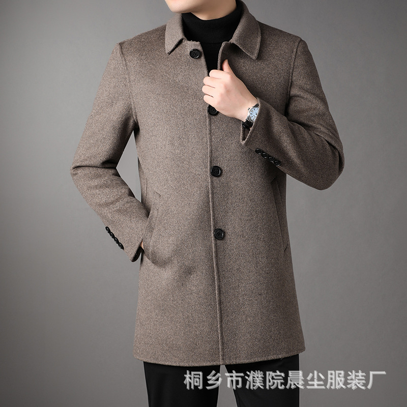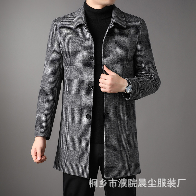 2025 가을과 겨울 새로운 남성 중년 옷깃 싱글 브레스트 울 울 모직 유행 캐주얼 트렌디 코트