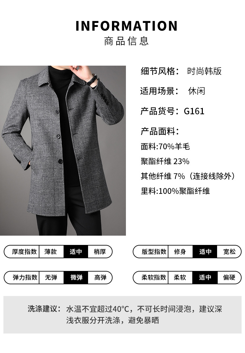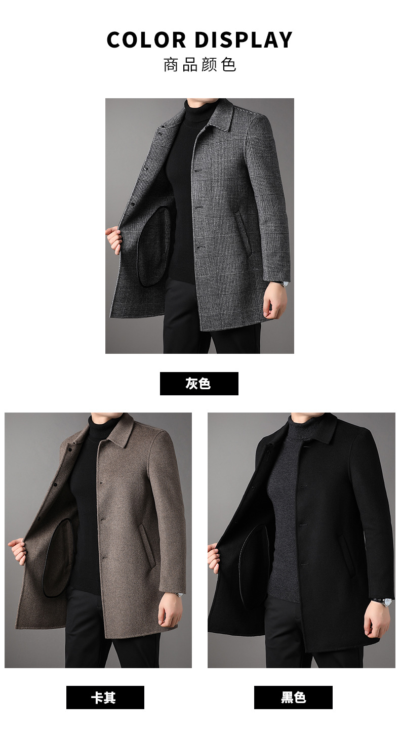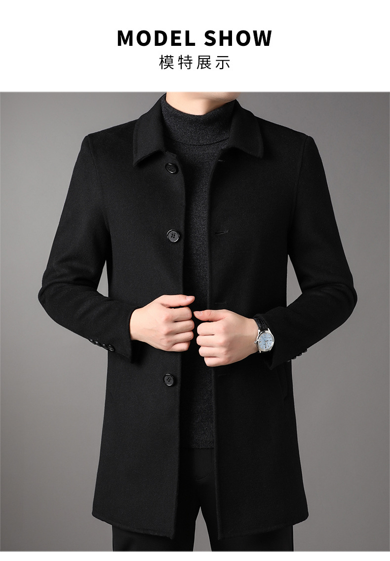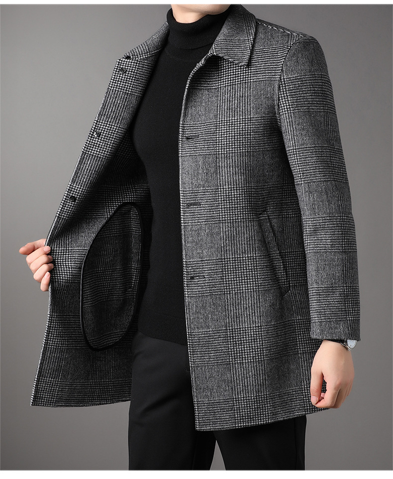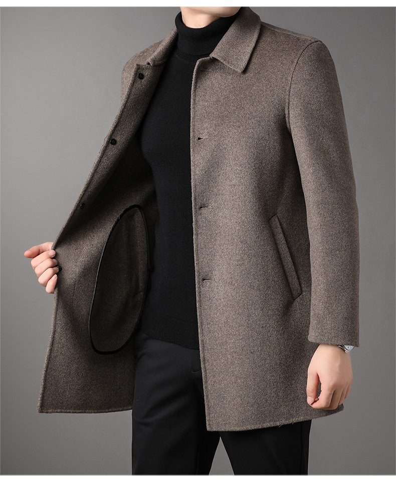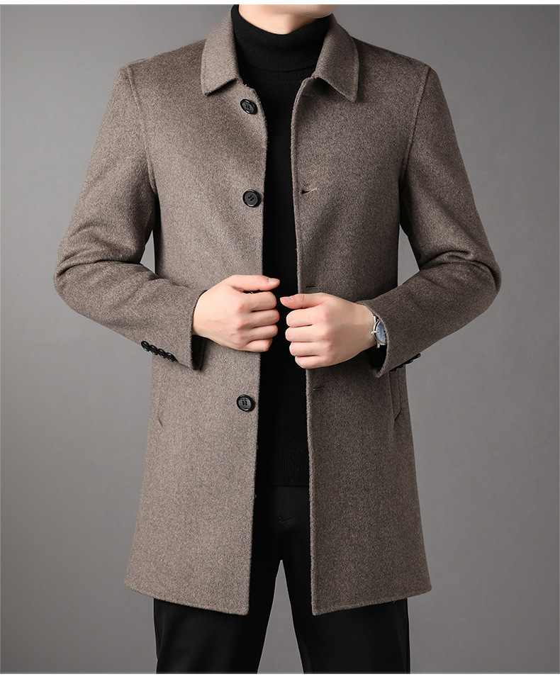 2025 가을과 겨울 새로운 남성 중년 옷깃 싱글 브레스트 울 울 모직 유행 캐주얼 트렌디 코트