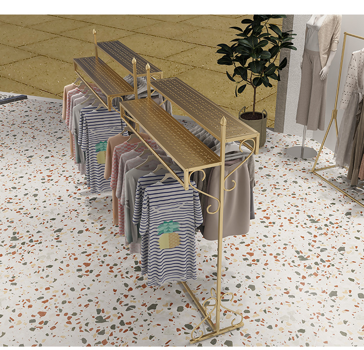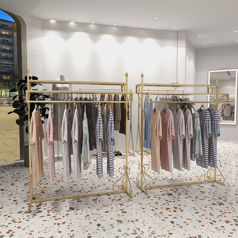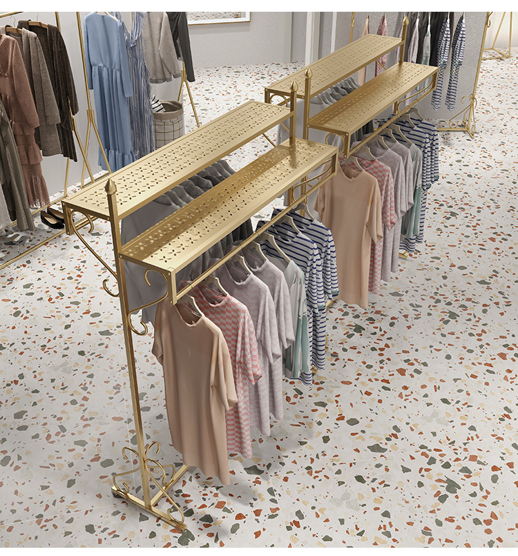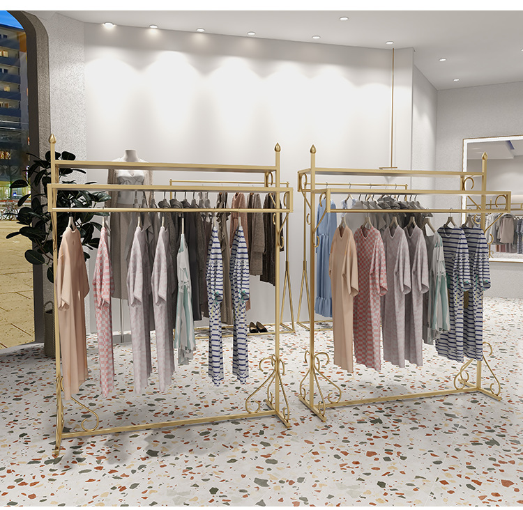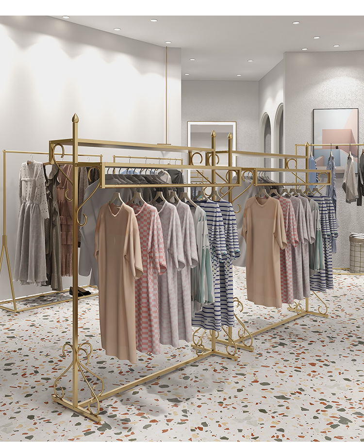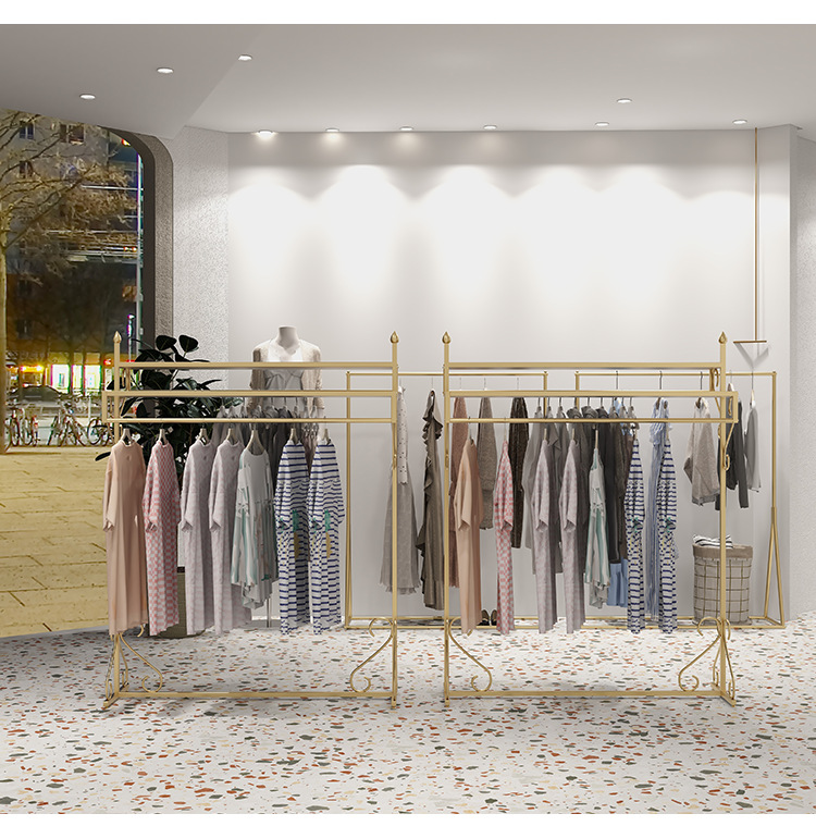 여성 의류 매장 더블 행 행거 골든 나카지마 디스플레이 랙 바닥-바닥 조합 남성 및 여성 의류 매장 디스플레이 선반