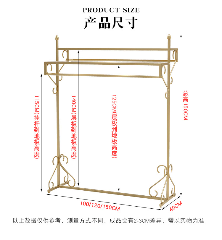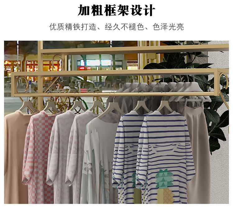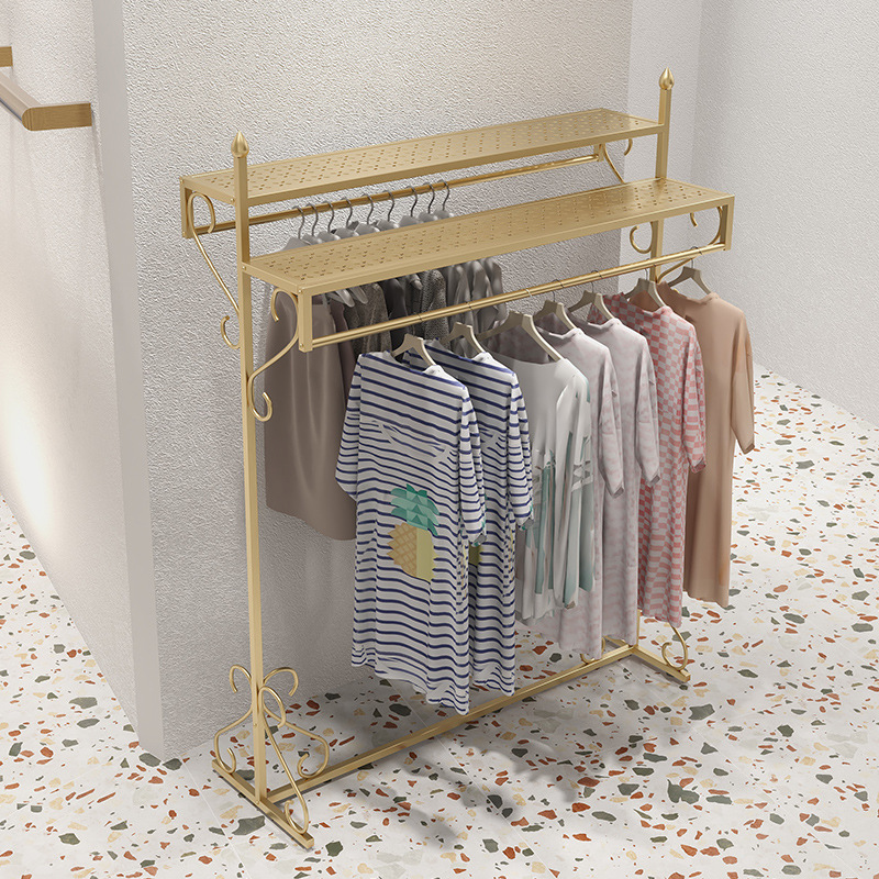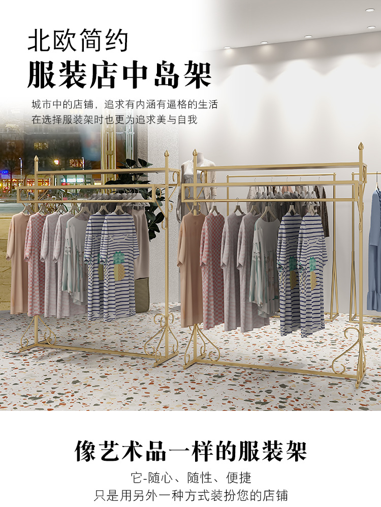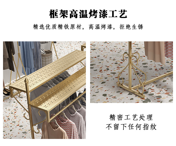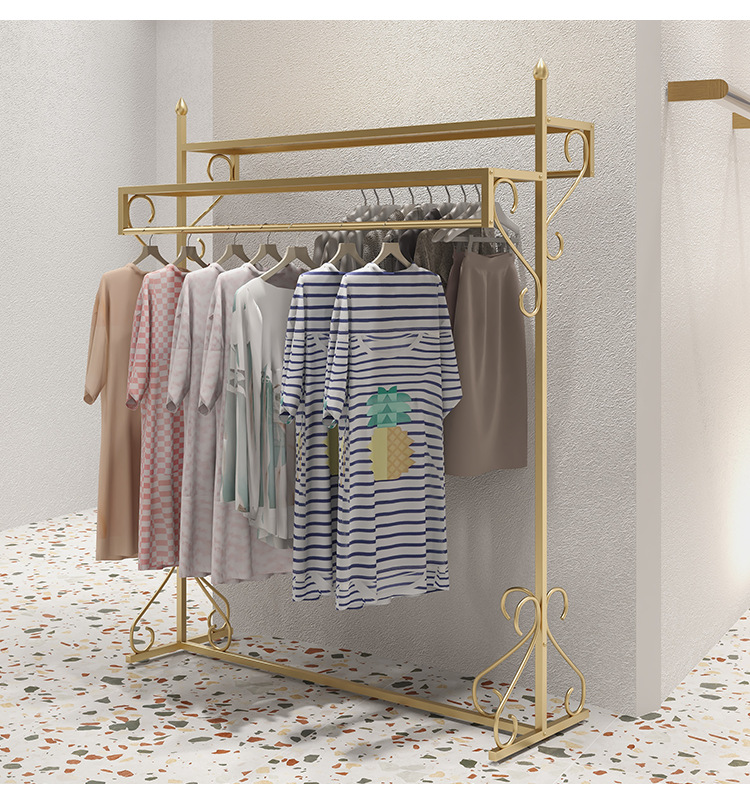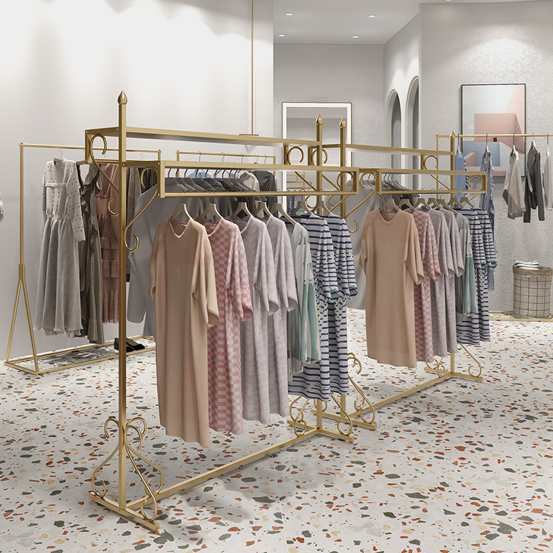 여성 의류 매장 더블 행 행거 골든 나카지마 디스플레이 랙 바닥-바닥 조합 남성 및 여성 의류 매장 디스플레이 선반