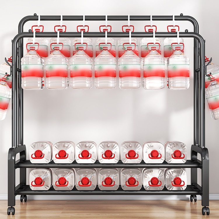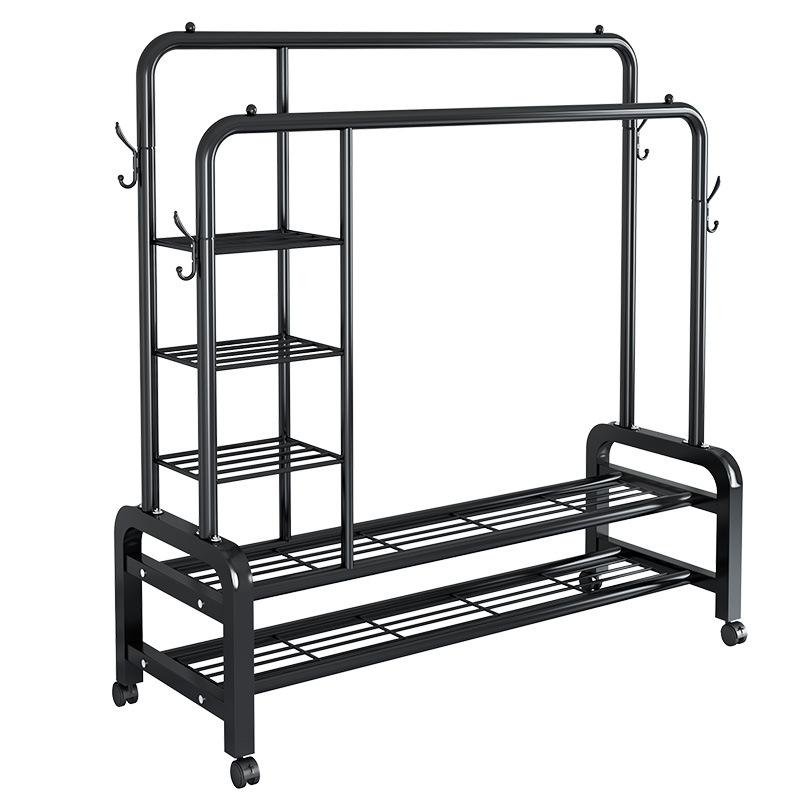 BL77H-25 라운드 코트 랙 더블 로드 더블 사이드 3 레이어 스토리지 네트 4 후크 150 블랙 + 휠