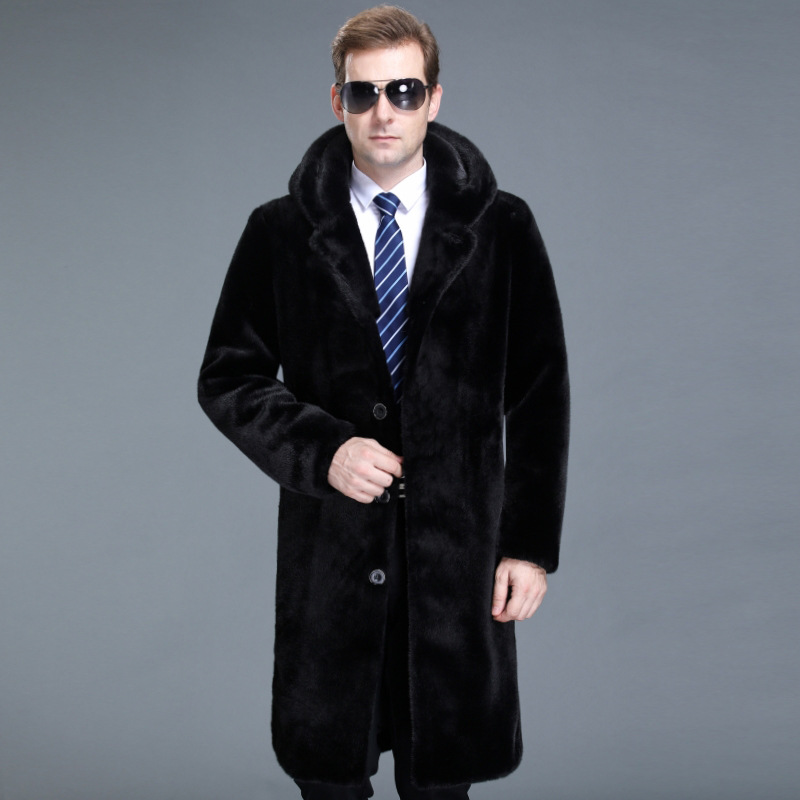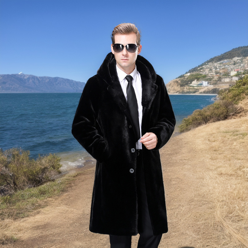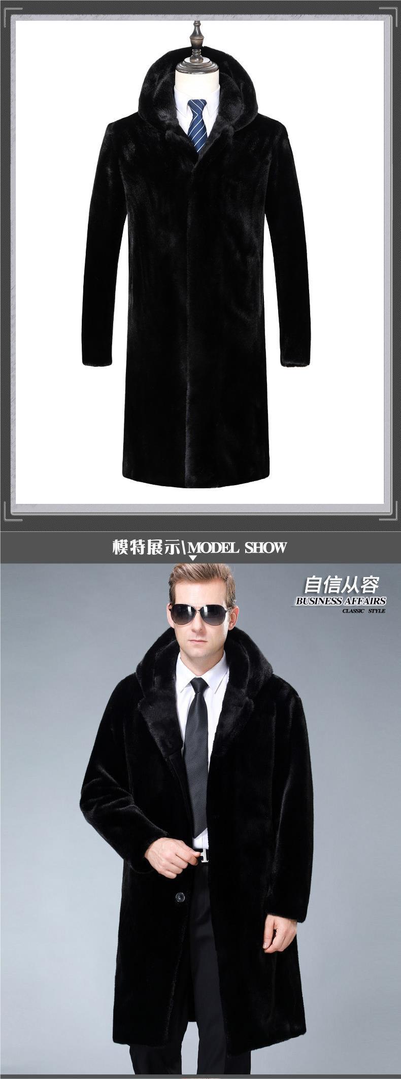 남성용 인조 밍크 코트, 가을 겨울 후드 양털 자켓, 트렌디한 남성 신사복