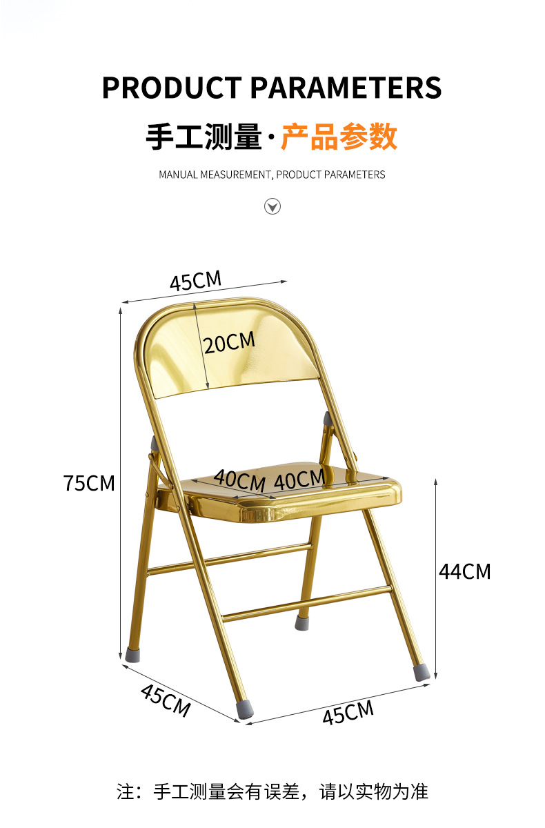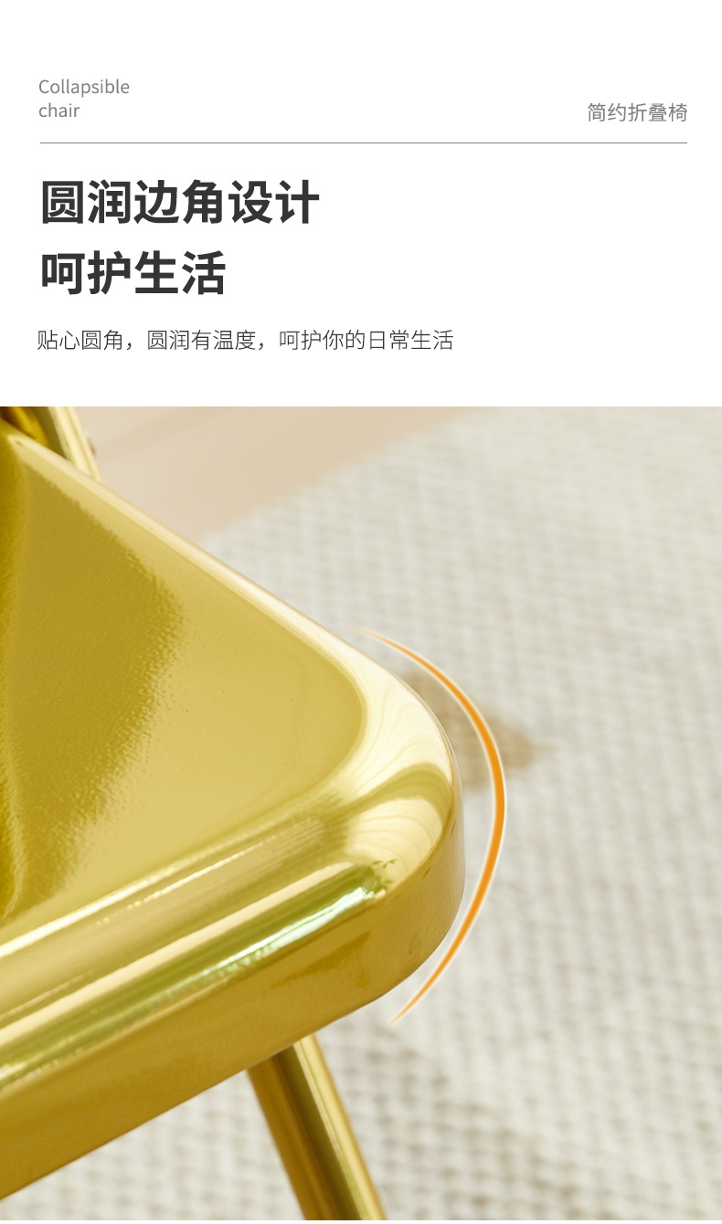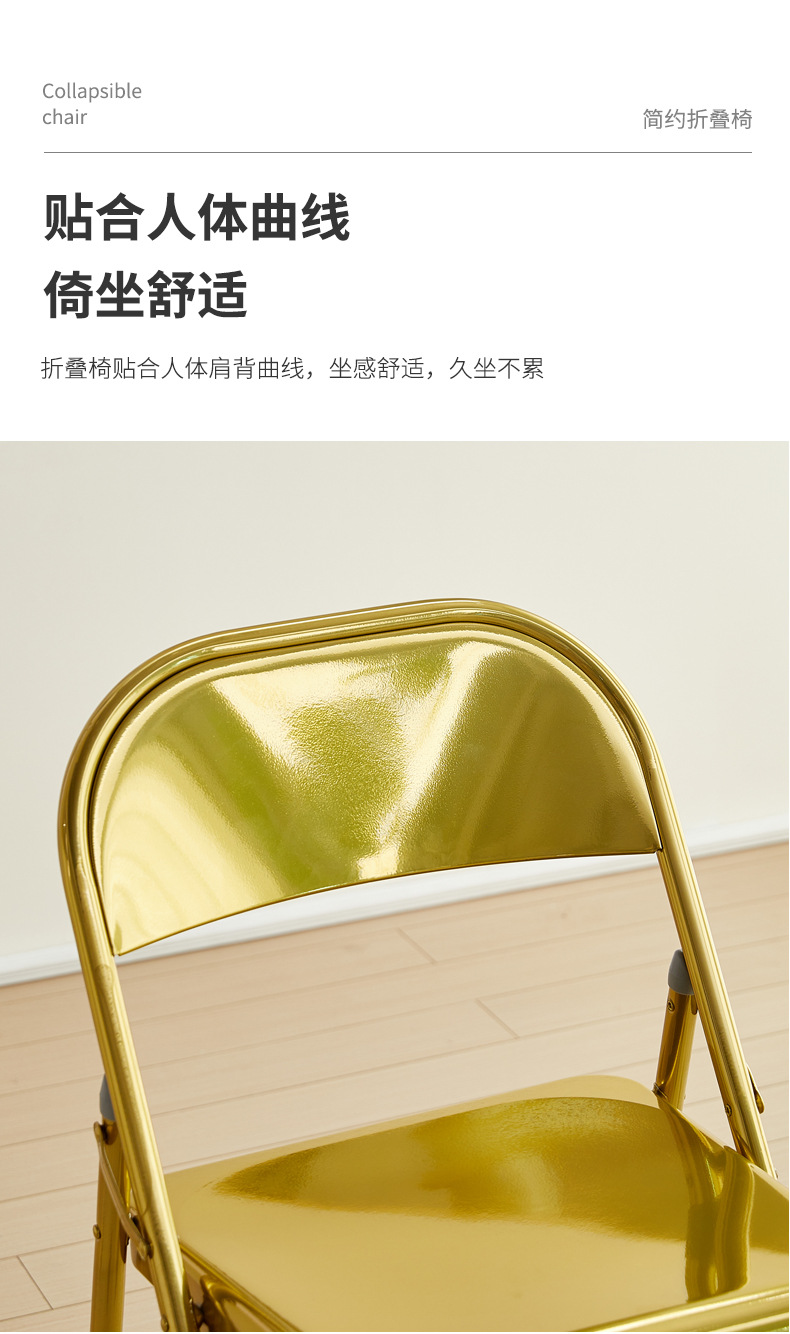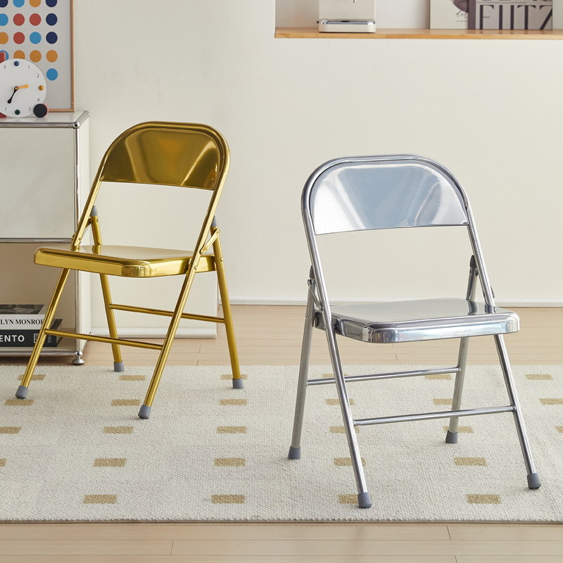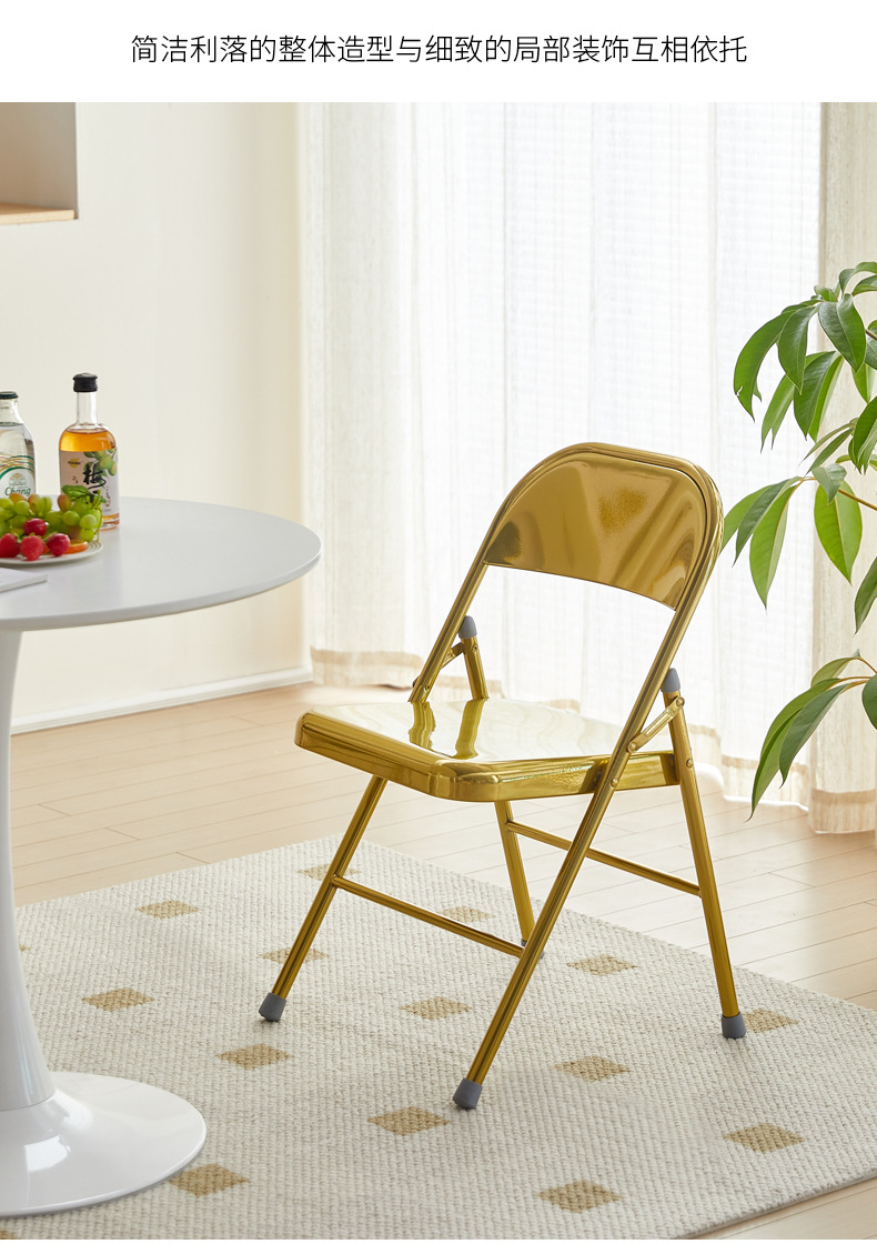 금속 스타일 스틸 아트 접이식 의자 등받이 간단한 의자 홈 기숙사 식당 의자 사무실 의자 Tuhao 골드 내구성 접는 의자