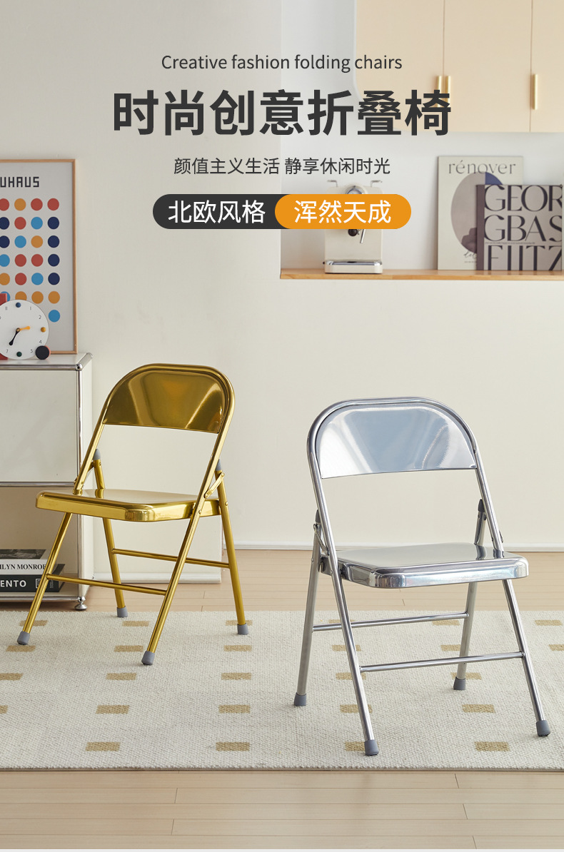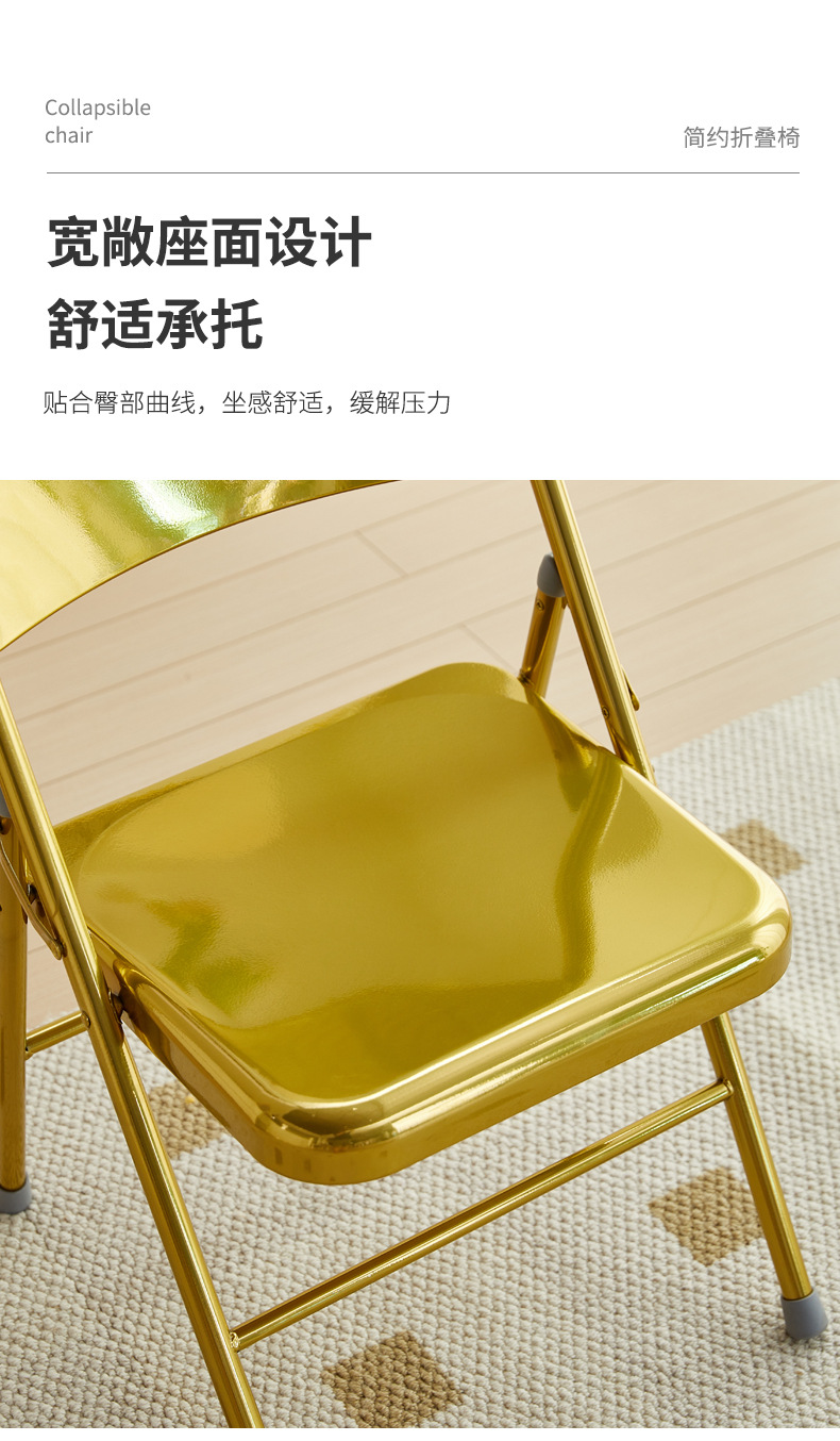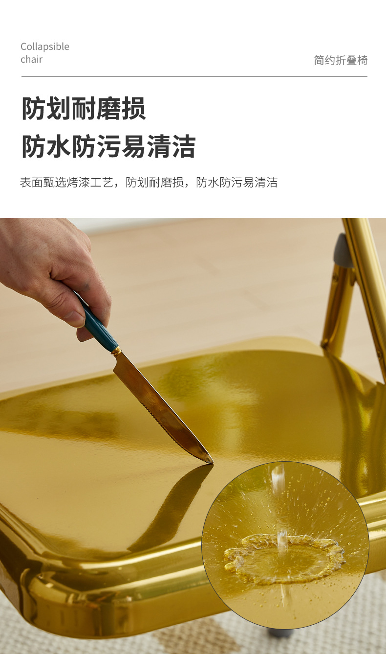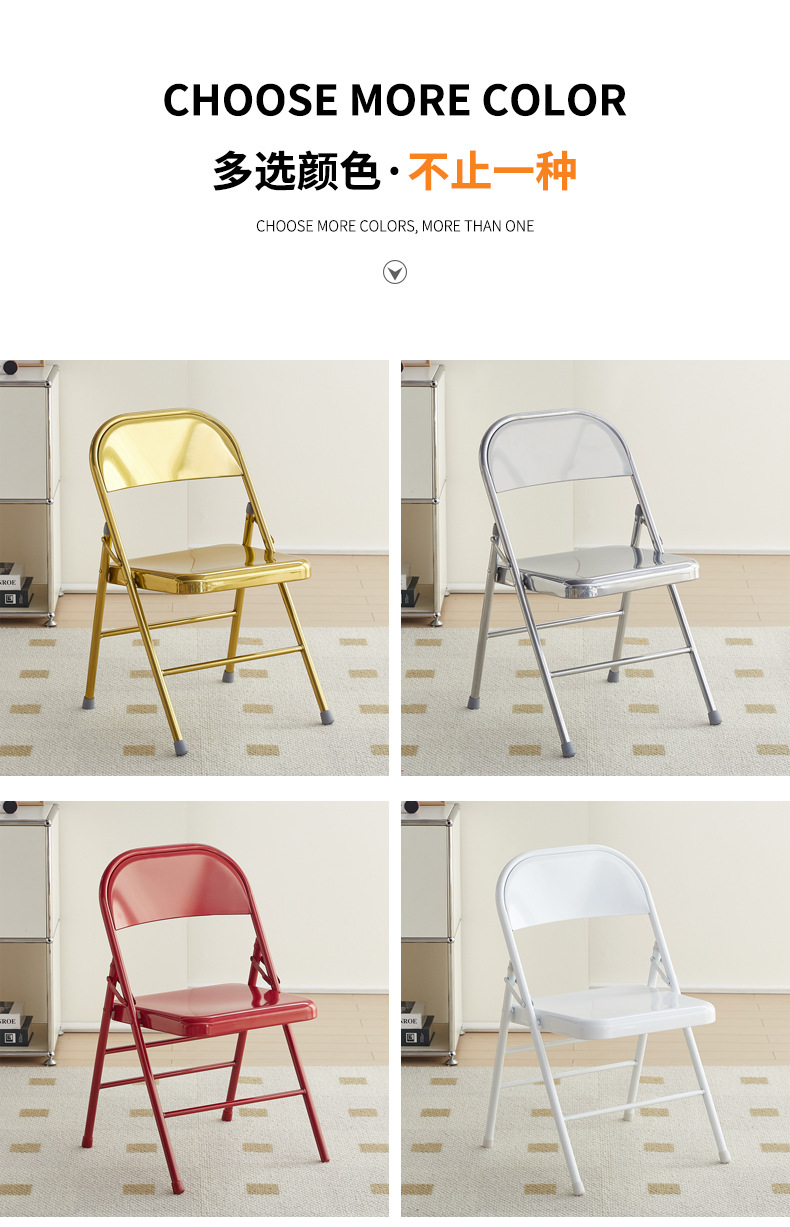 금속 스타일 스틸 아트 접이식 의자 등받이 간단한 의자 홈 기숙사 식당 의자 사무실 의자 Tuhao 골드 내구성 접는 의자
