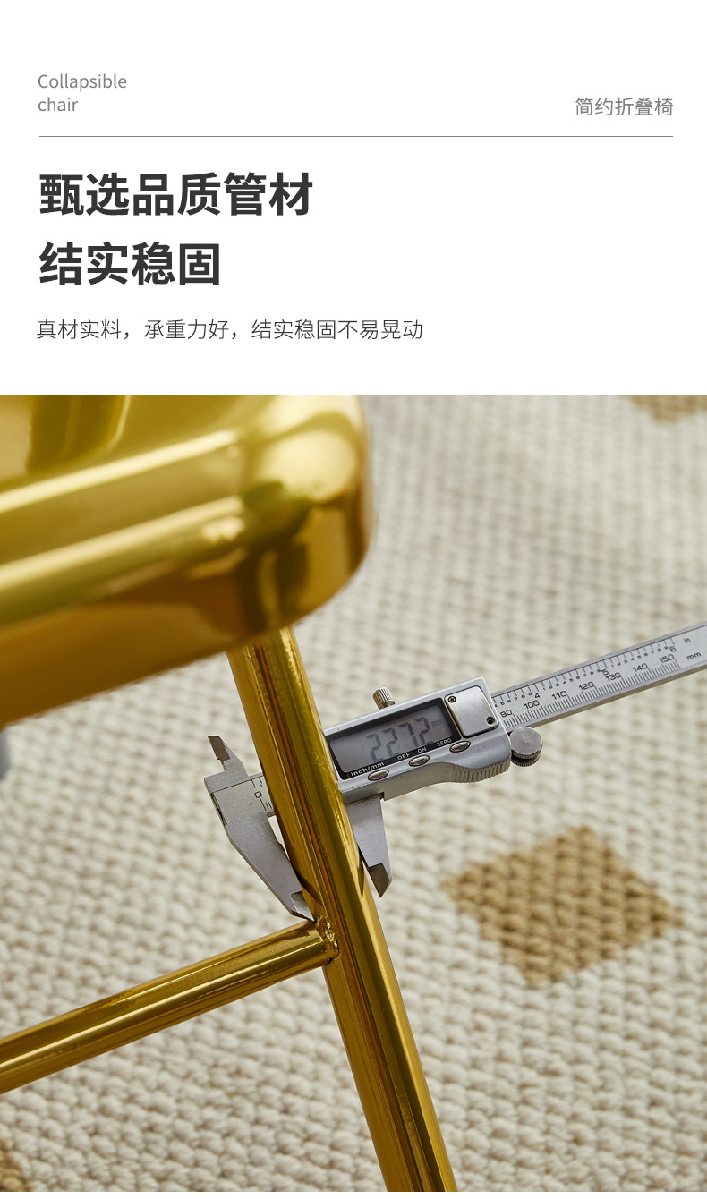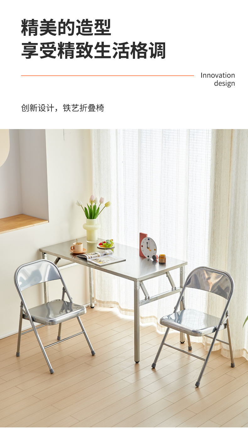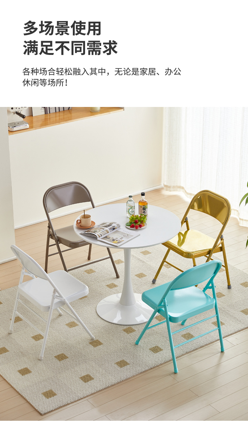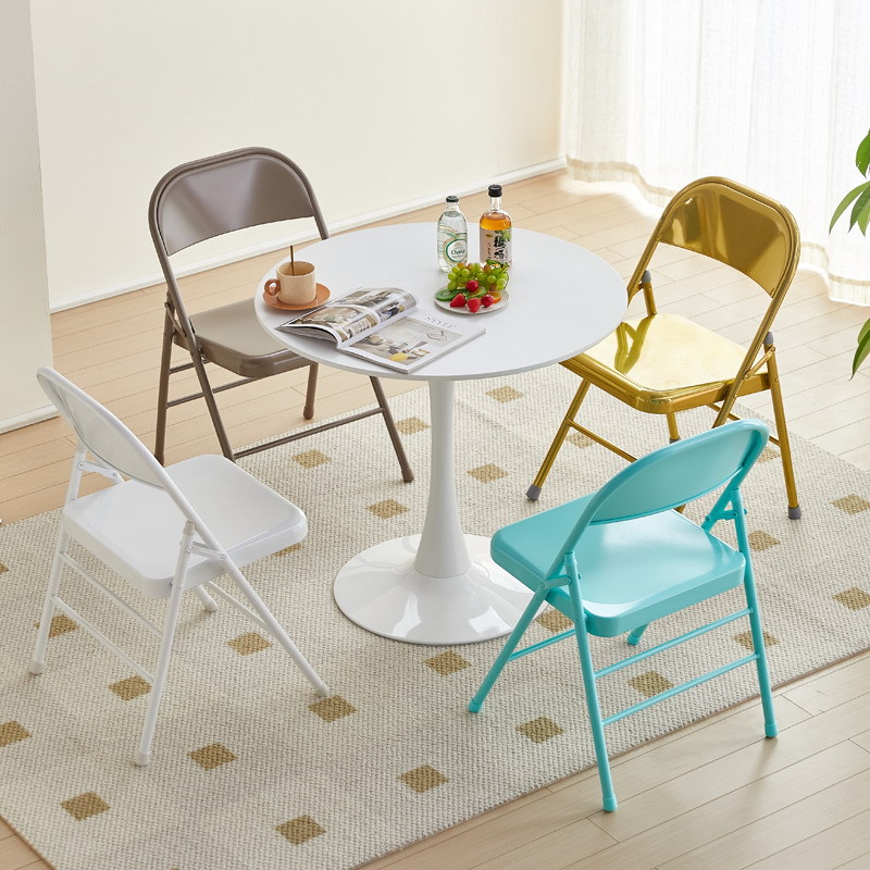 금속 스타일 스틸 아트 접이식 의자 등받이 간단한 의자 홈 기숙사 식당 의자 사무실 의자 Tuhao 골드 내구성 접는 의자