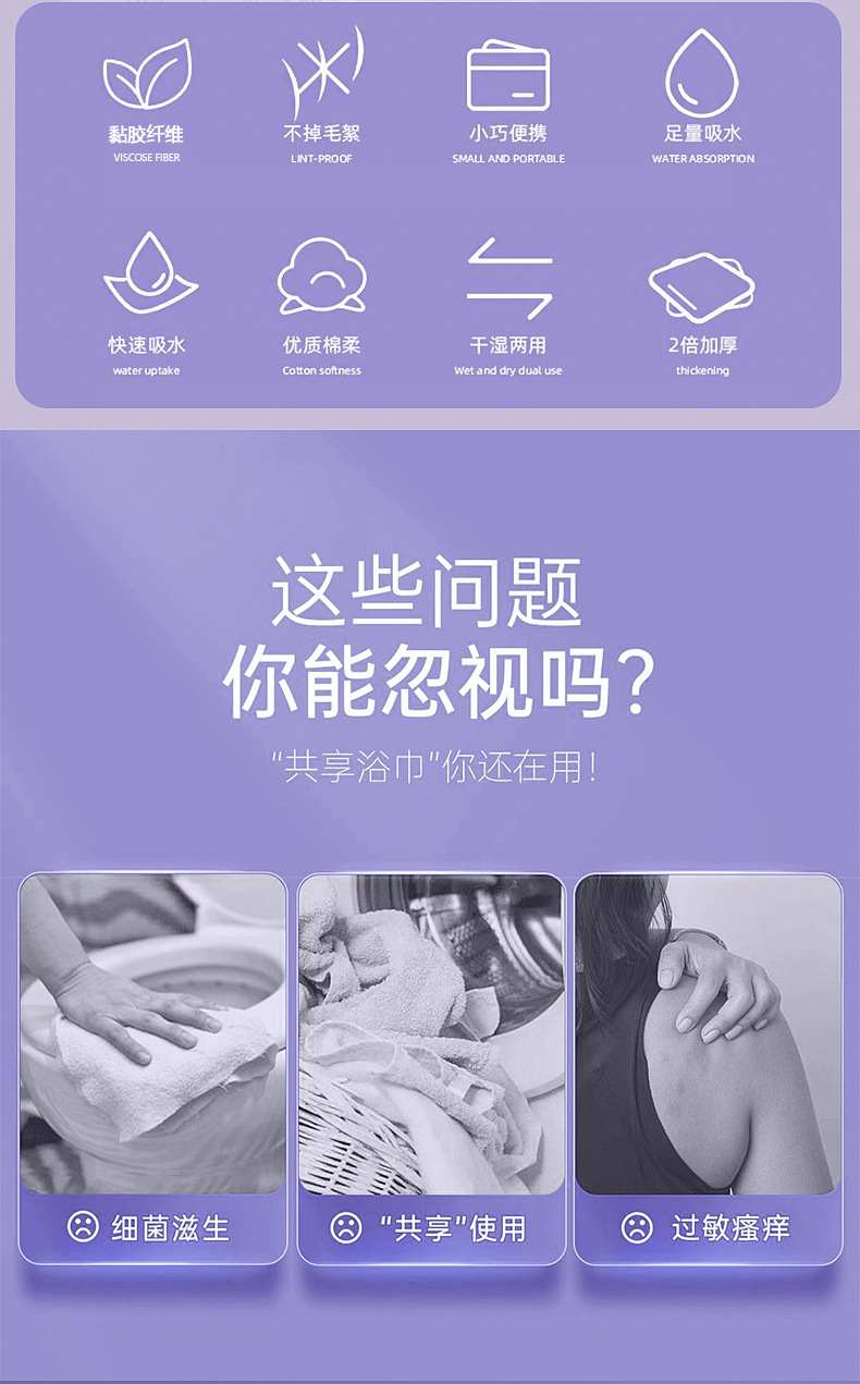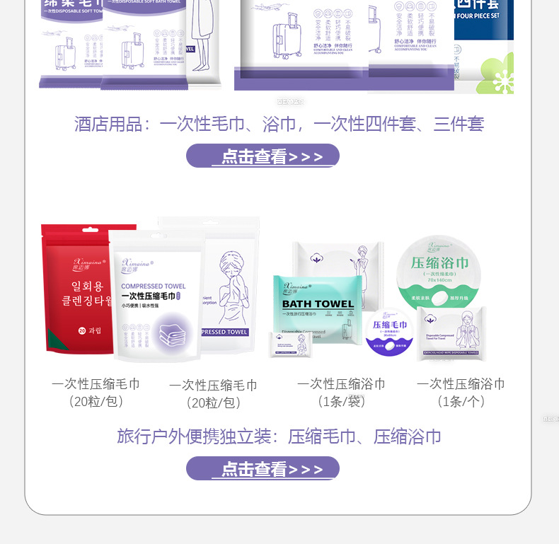 일회용 목욕 타월 (보라색 포장) 1/패키지