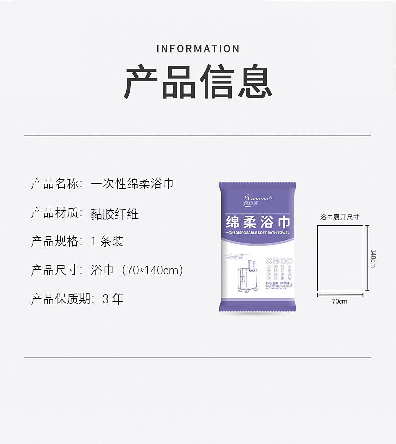 일회용 목욕타월 70x140cm (해외공용 영문패키지) 1매/팩