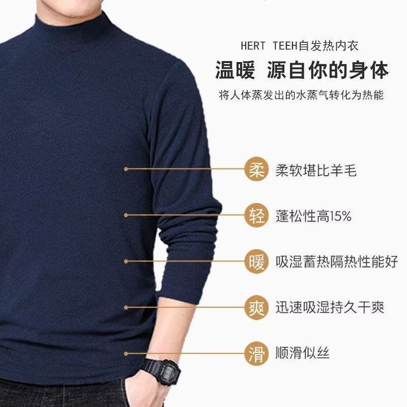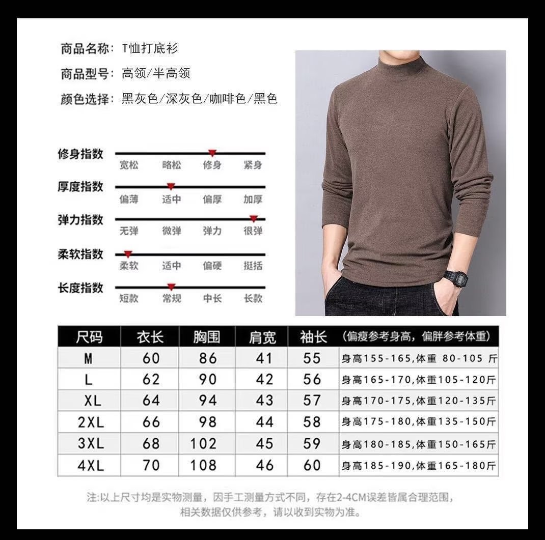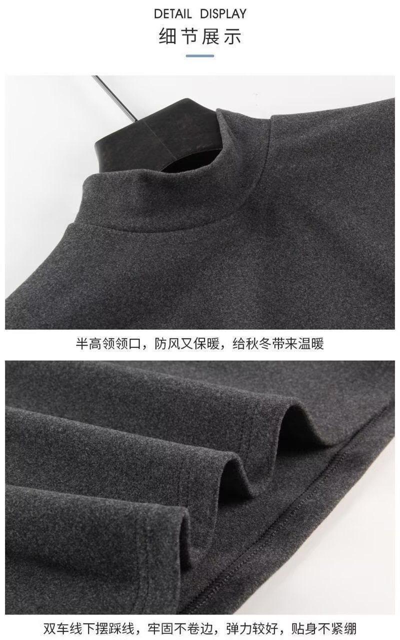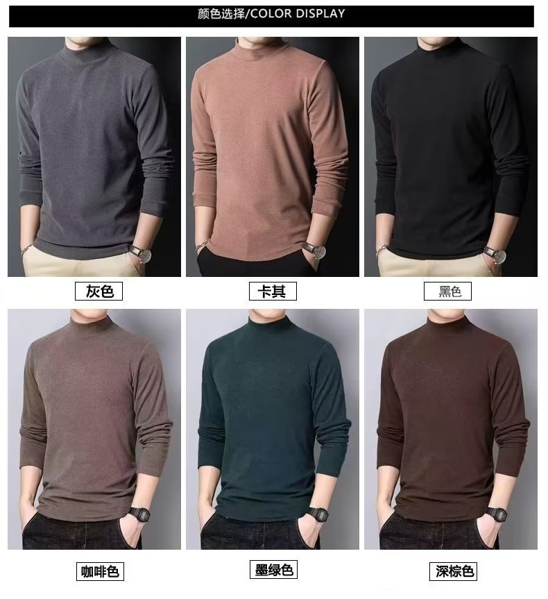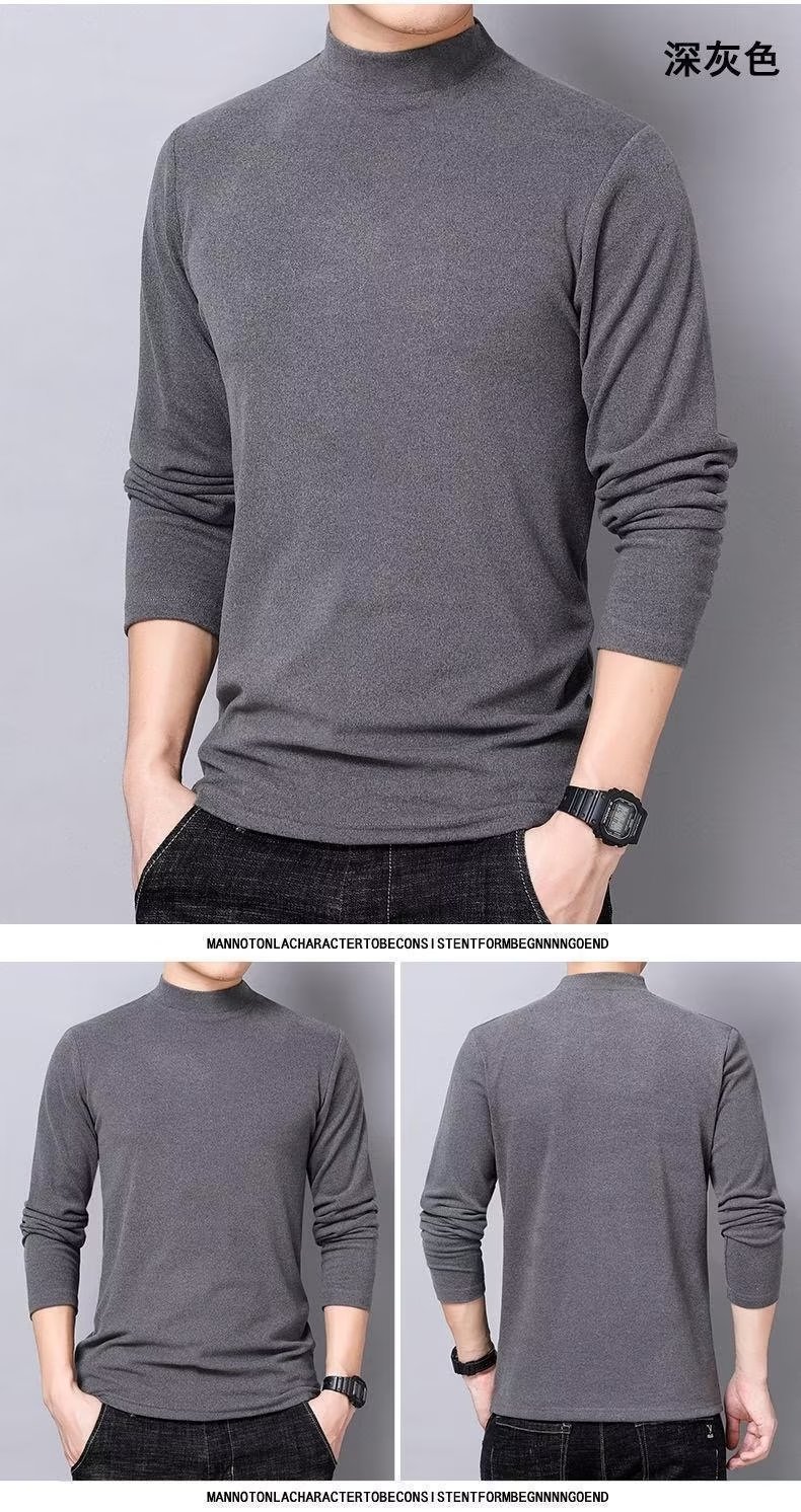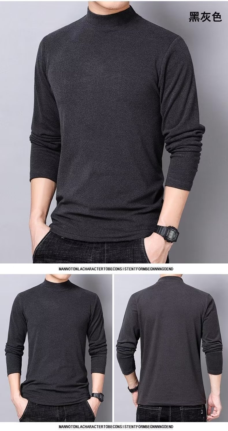 2023 가을과 겨울 세미 하이 칼라베이스 셔츠 남성용 양면 벨벳 한국 내부 따뜻한 칼라 긴 소매 티셔츠 탑 솔리드 컬러