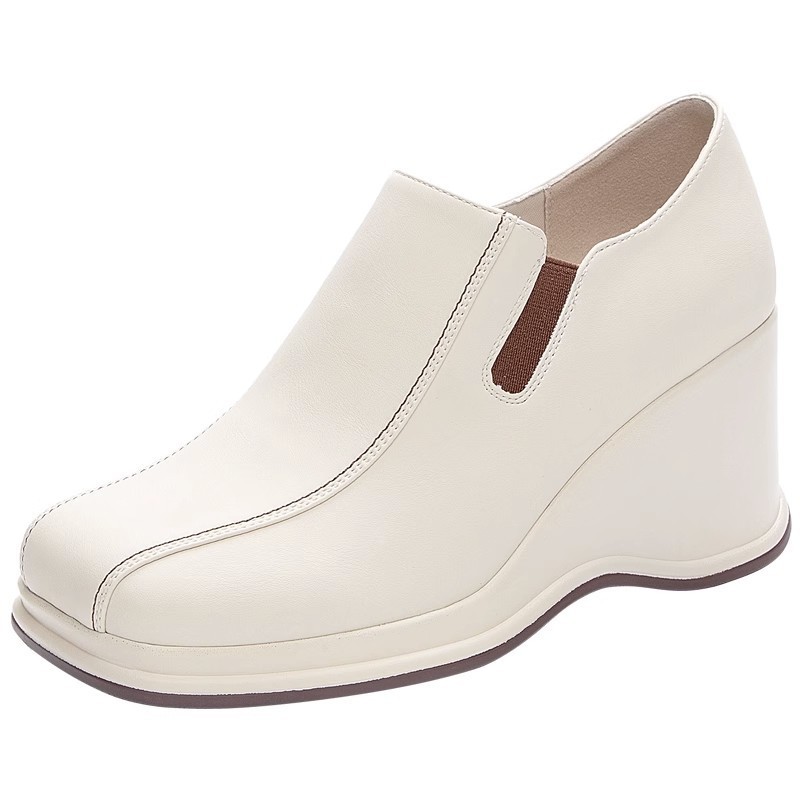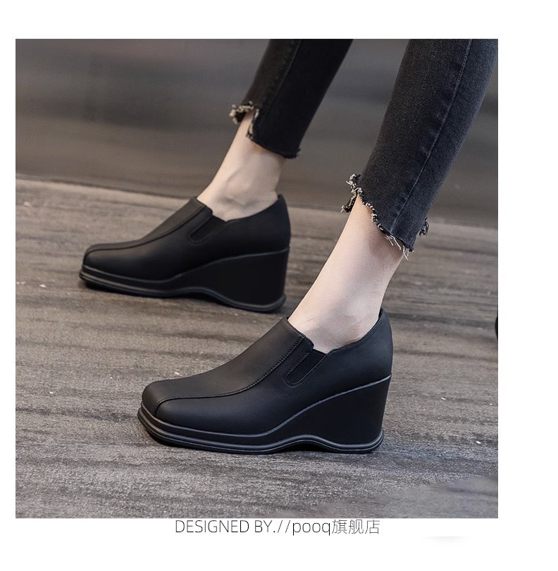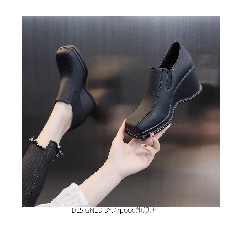 2023 봄과 가을 새로운 두꺼운 밑창 웨지 딥 마우스 슈즈 여성용 사계절 스퀘어 헤드 편안한 조커 캐주얼 작업 신발 도매