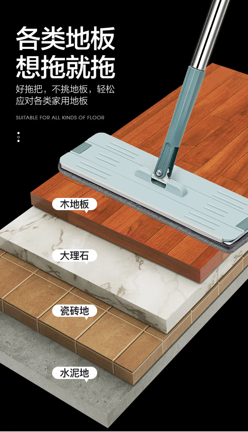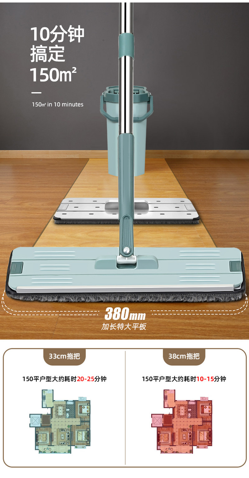 인터넷 유명 인사 게으른 손 씻기없는 초대형 플랫 38CM 걸레 가정용 도매 이중 사용 걸레