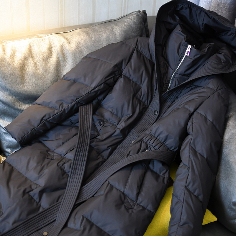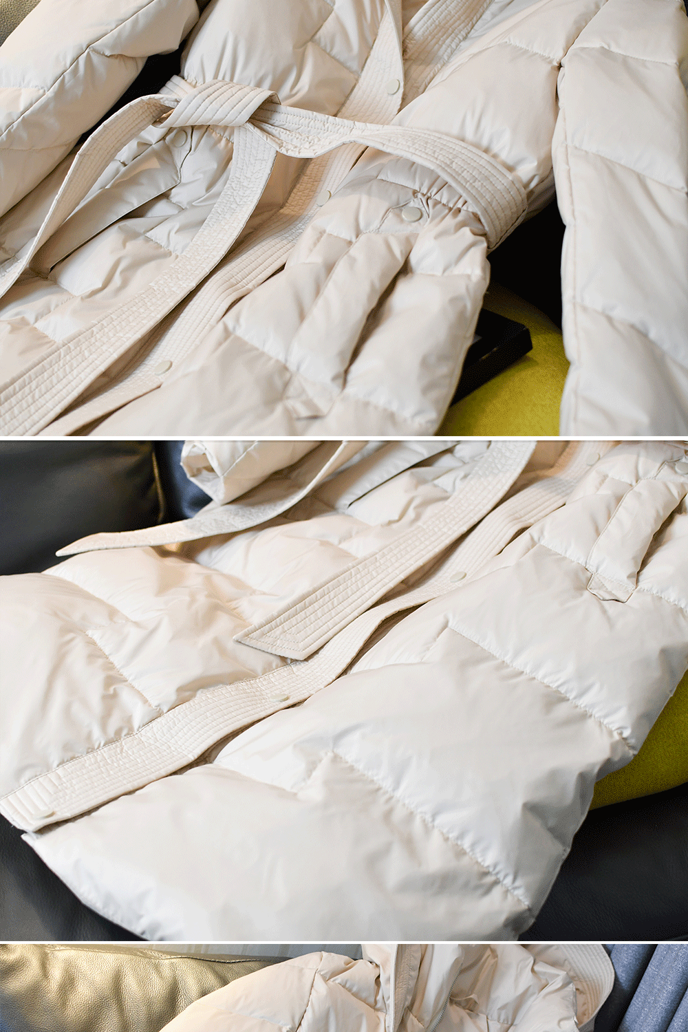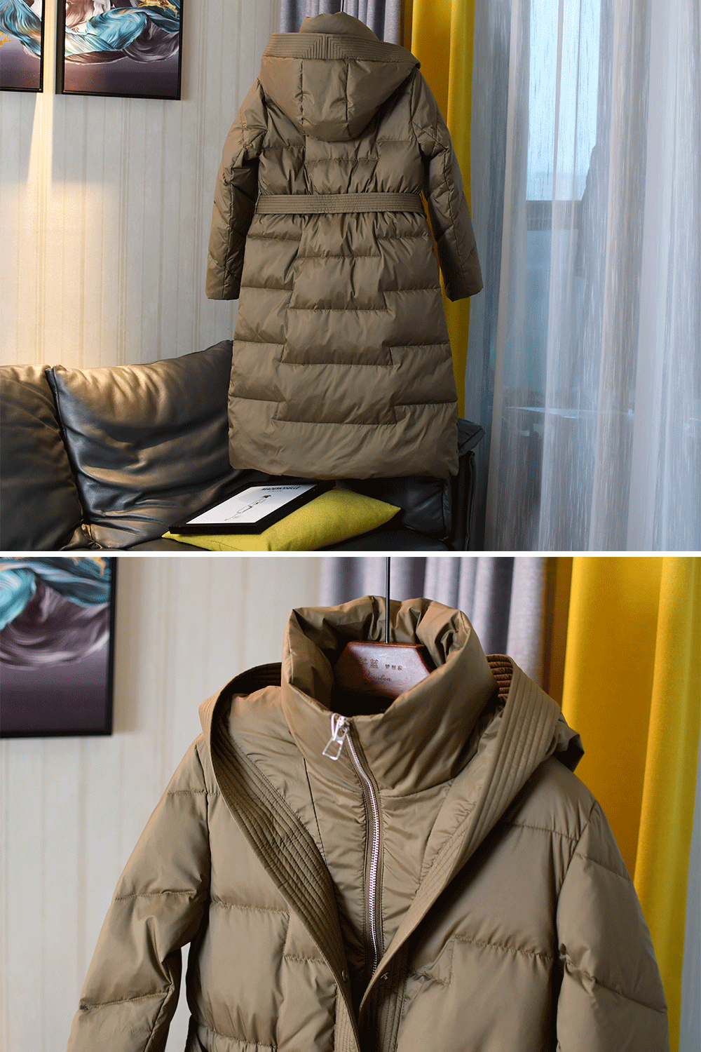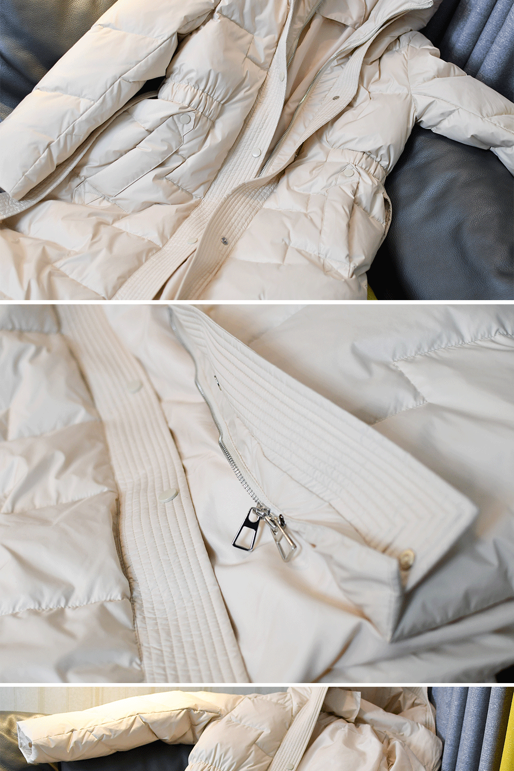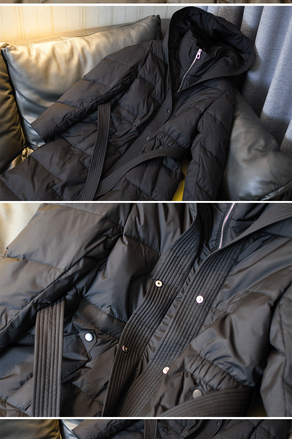 2024년 신상 후드 다운 재킷 여성용 우아한 슬림핏 중간 길이 무릎 아래까지 오는 허리 조임 두꺼운 흰색 오리털 코트 트렌디