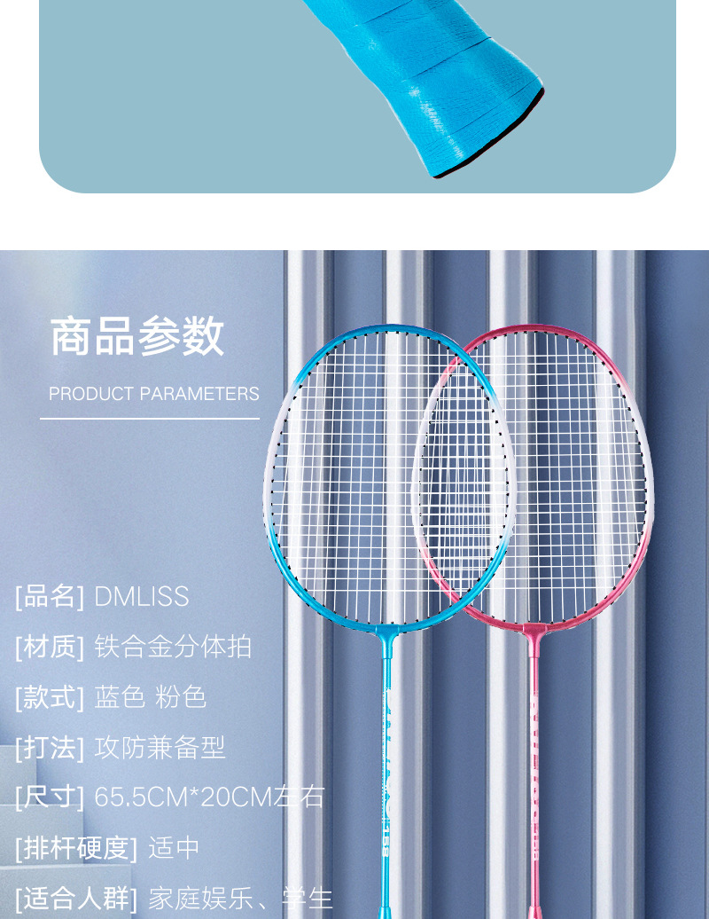 Dingli 철 합금 내구성 배드민턴 라켓 소스 공장 성인 및 어린이 배드민턴 라켓 세트 스포츠 용품 도매