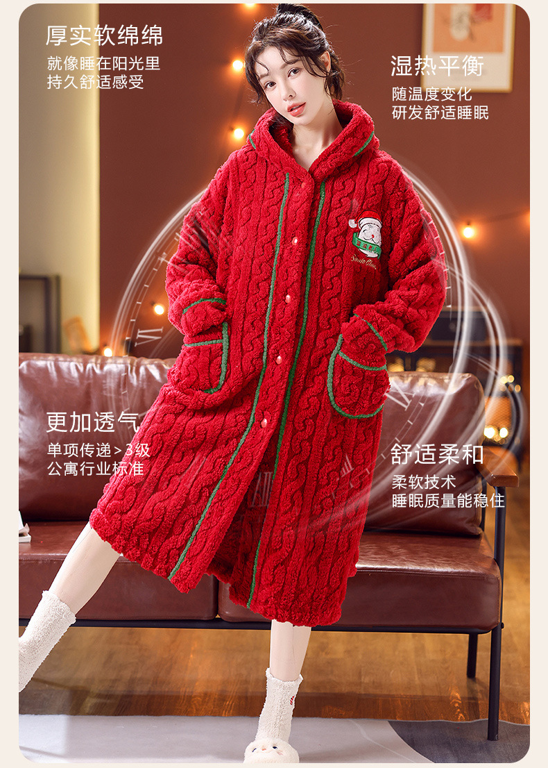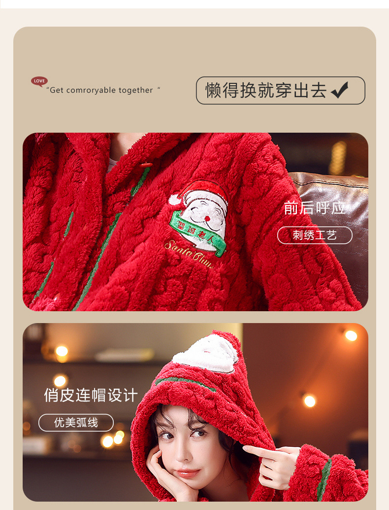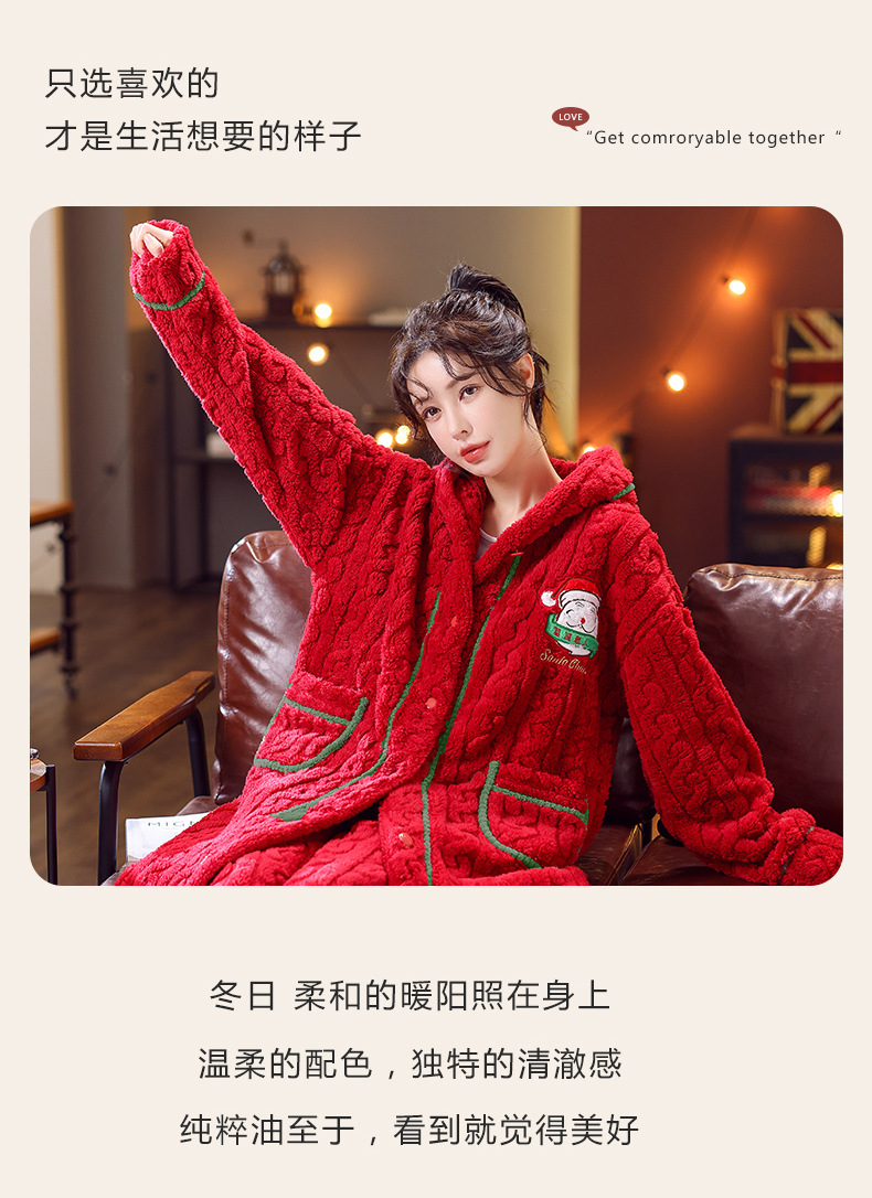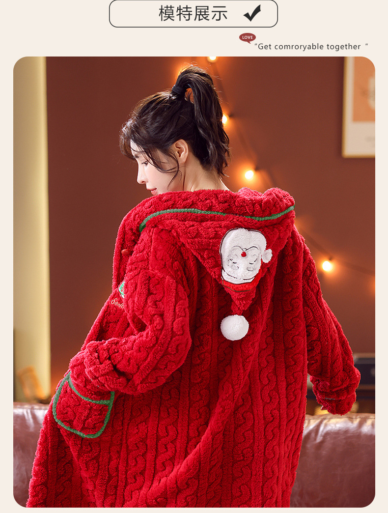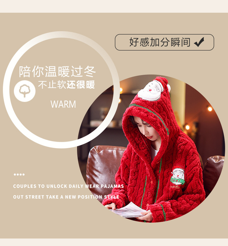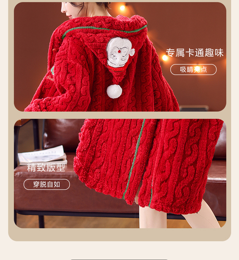 크로스 국경 도매 산호 양털 목욕 가운 여성의 가을과 겨울 후드 두꺼운 크리스마스 긴 따뜻한 야외 가정 옷 세트