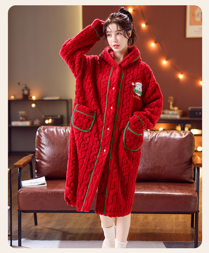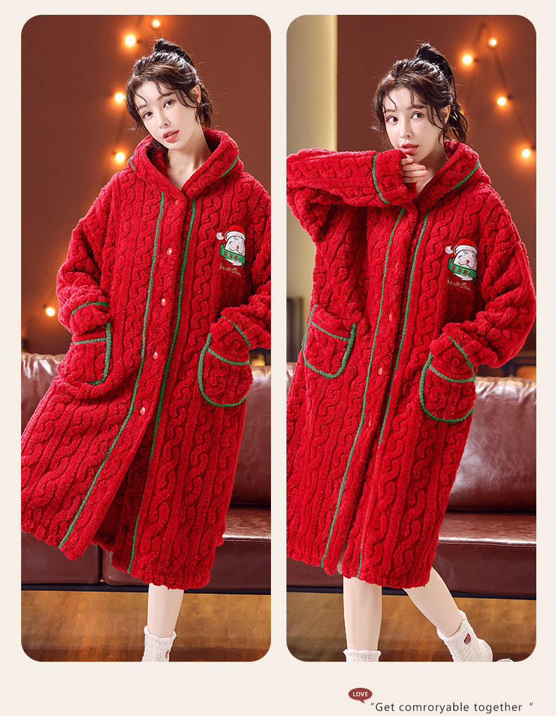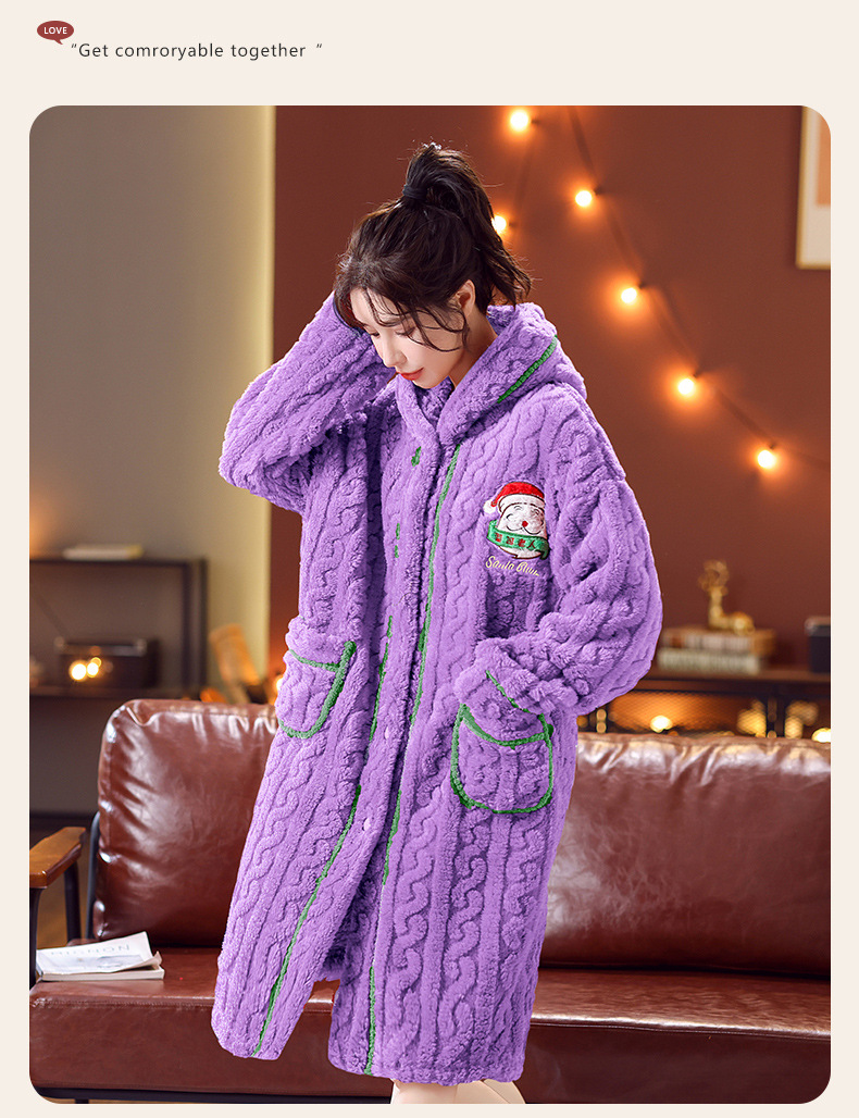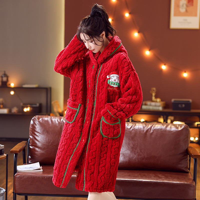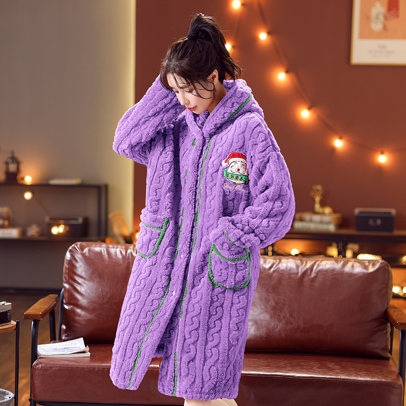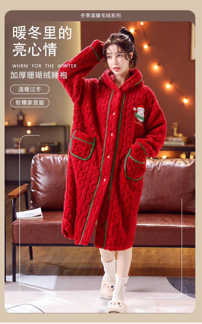 크로스 국경 도매 산호 양털 목욕 가운 여성의 가을과 겨울 후드 두꺼운 크리스마스 긴 따뜻한 야외 가정 옷 세트