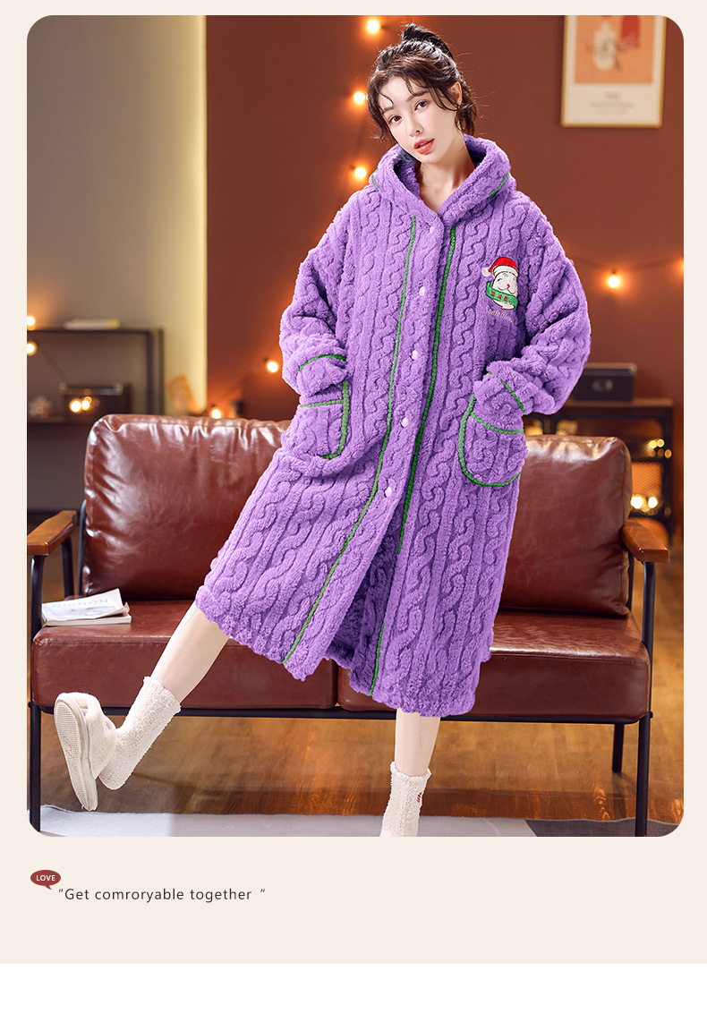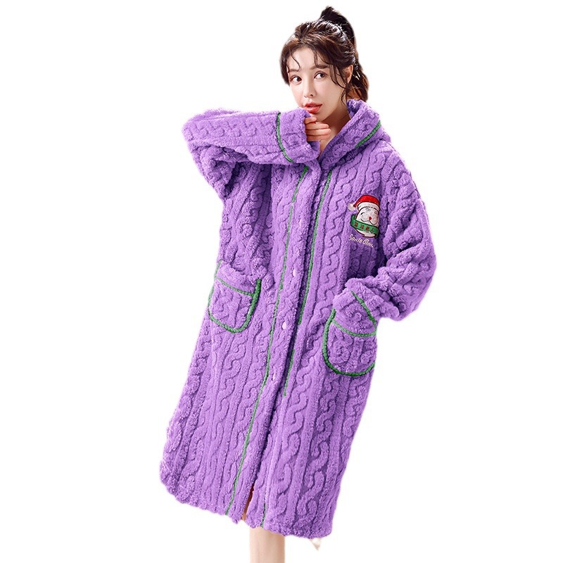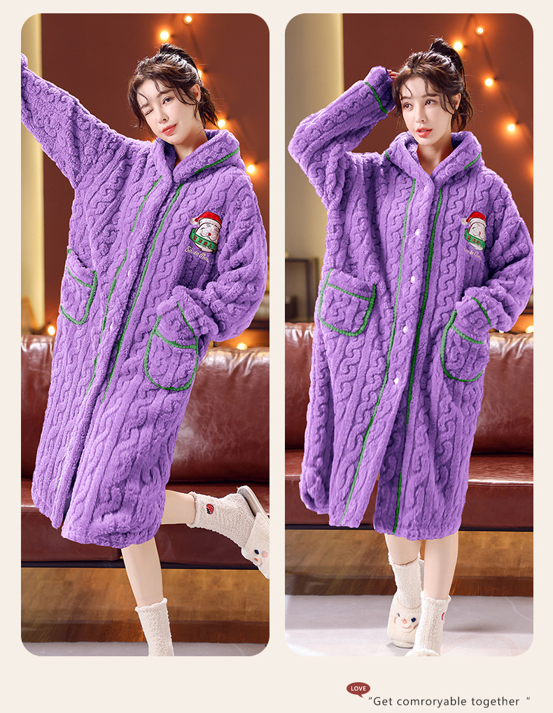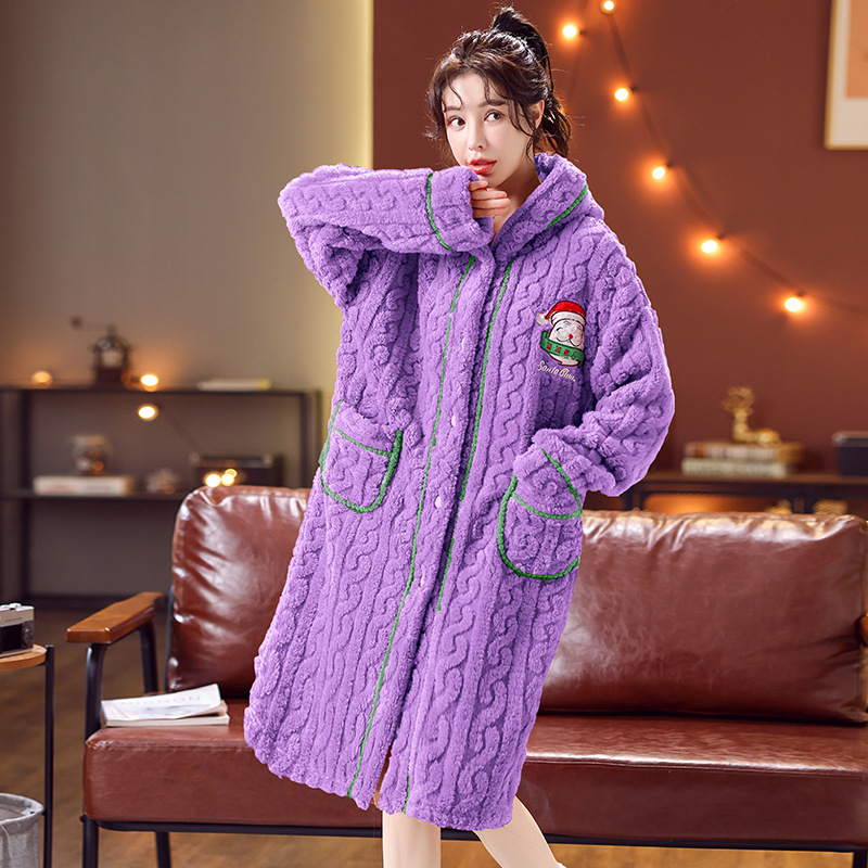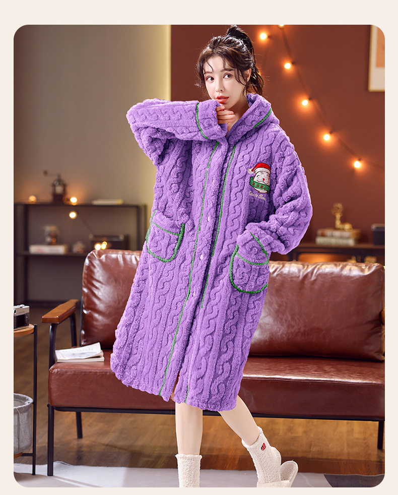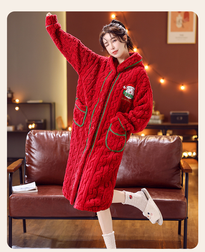 크로스 국경 도매 산호 양털 목욕 가운 여성의 가을과 겨울 후드 두꺼운 크리스마스 긴 따뜻한 야외 가정 옷 세트