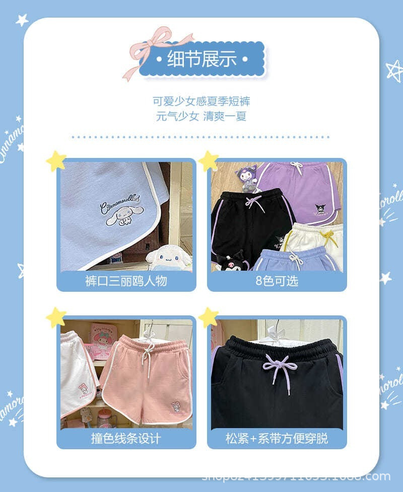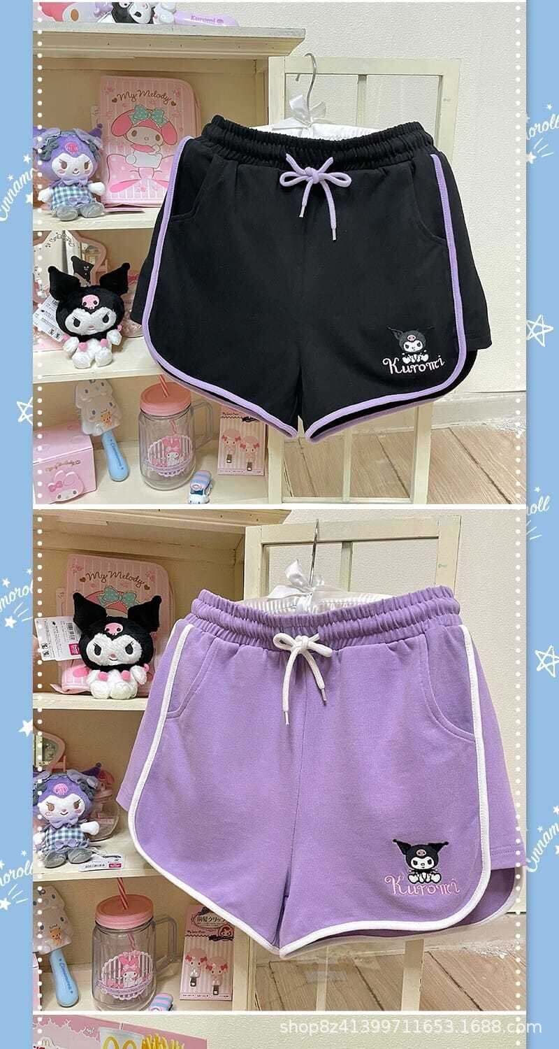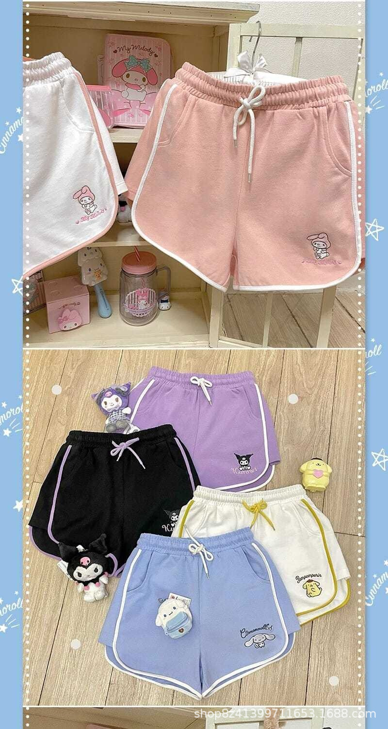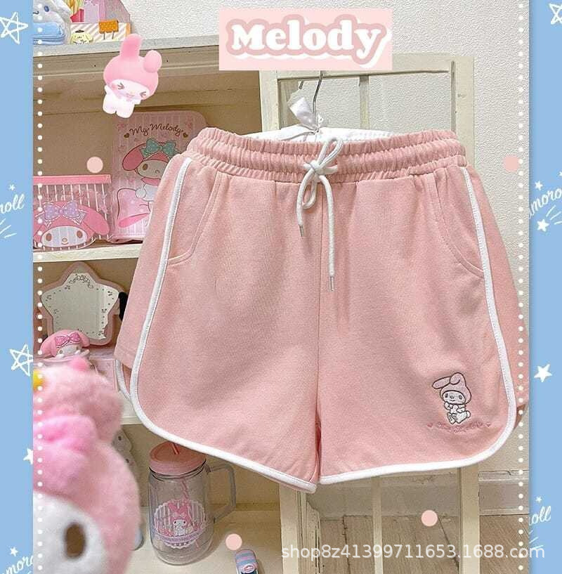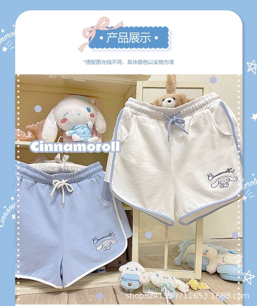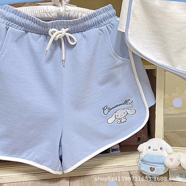 여름 새로운 일본 스타일 귀여운 만화 캐주얼 스포츠 반바지 여자의 느슨한 간단한 부드러운 잠옷 바지 겉옷