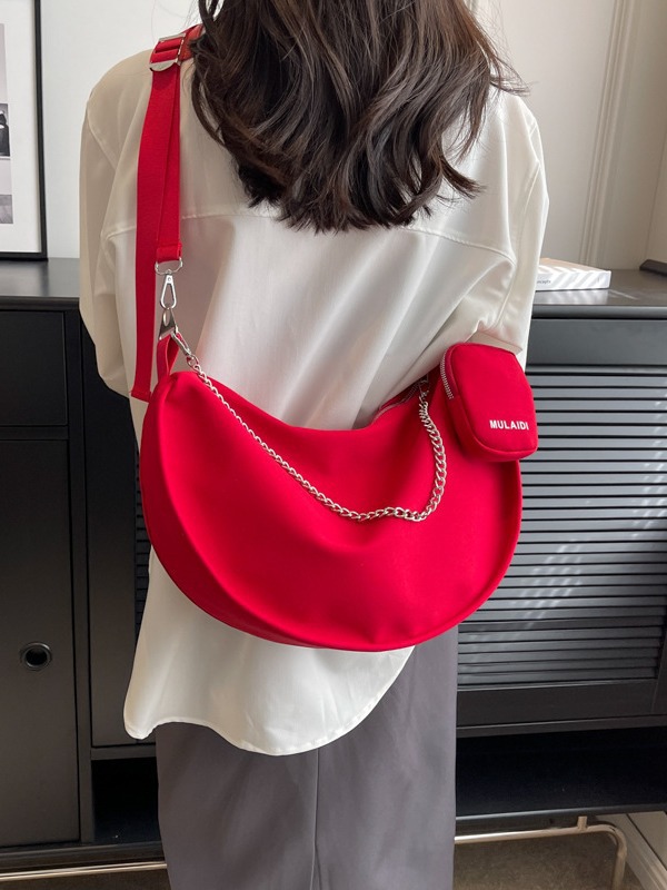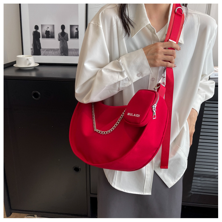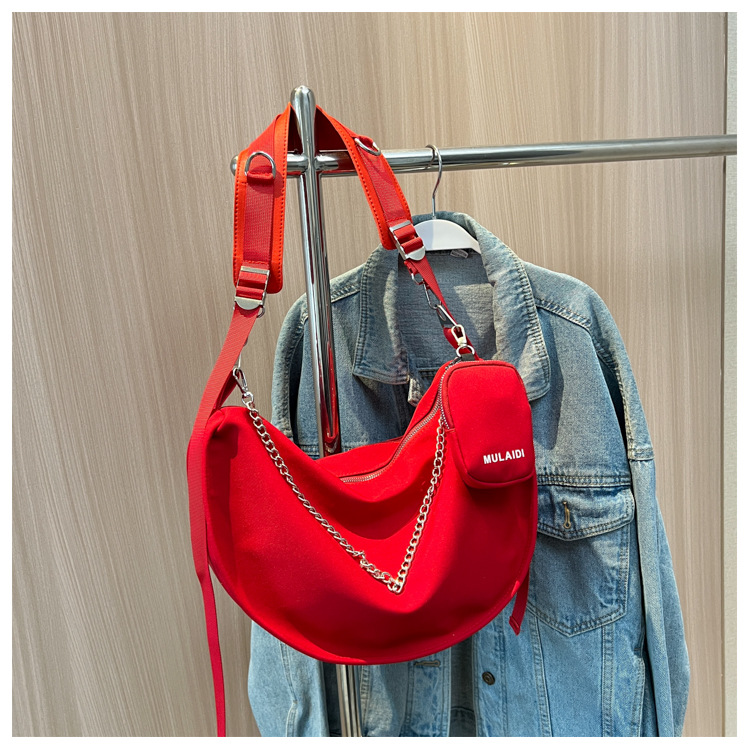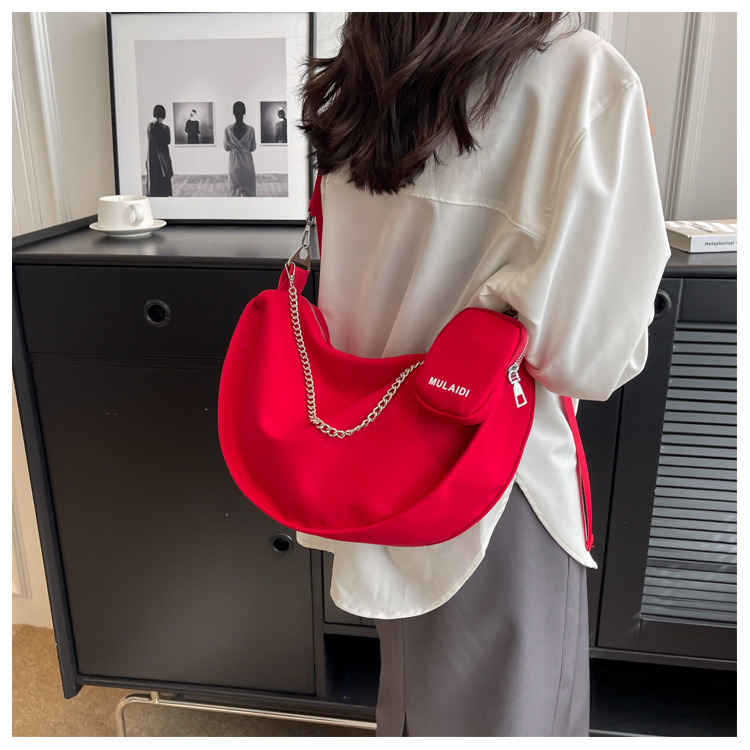 대용량 가방 여성 가을과 겨울 올 매치 2023 신상품 숄더 크로스바디 백 레드 어머니와 어린이 천 가방 틈새 만두 백