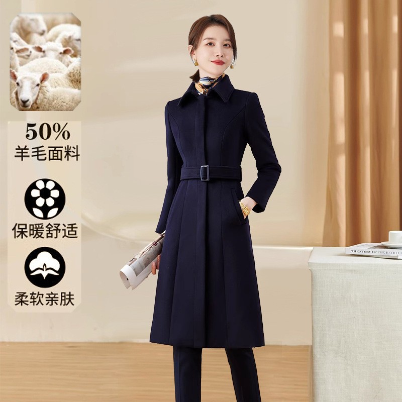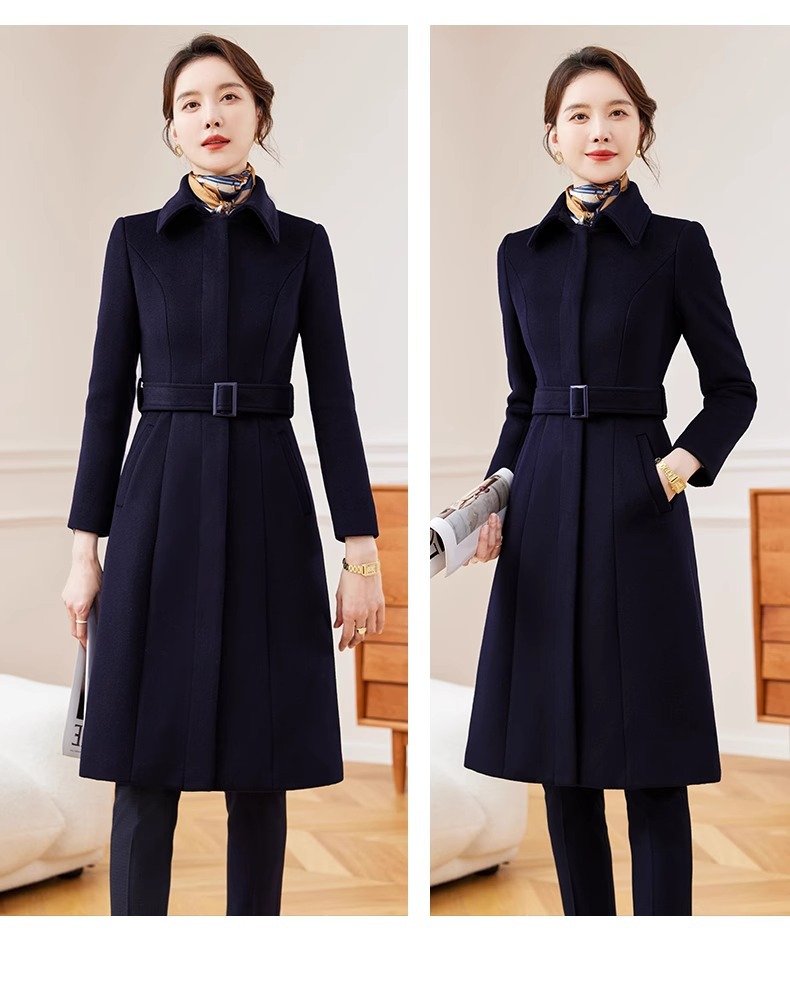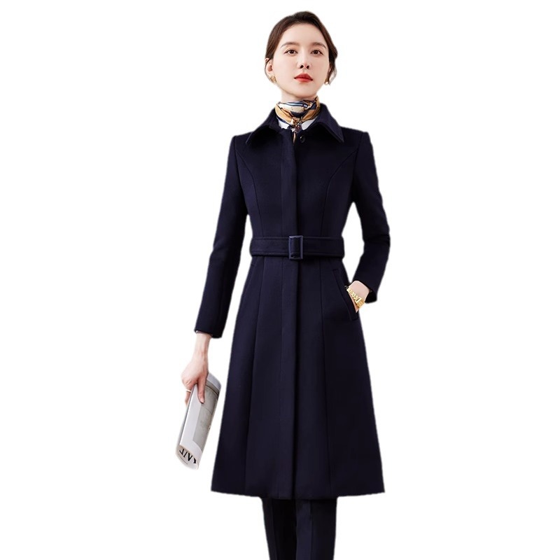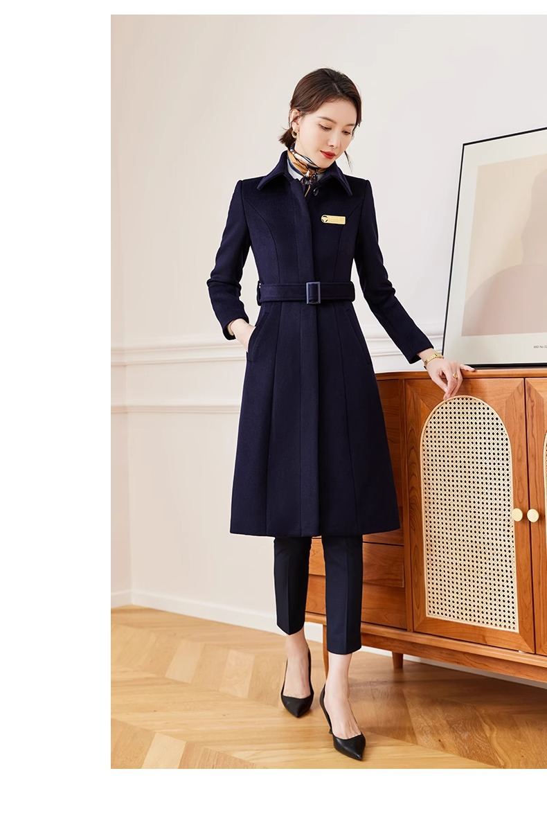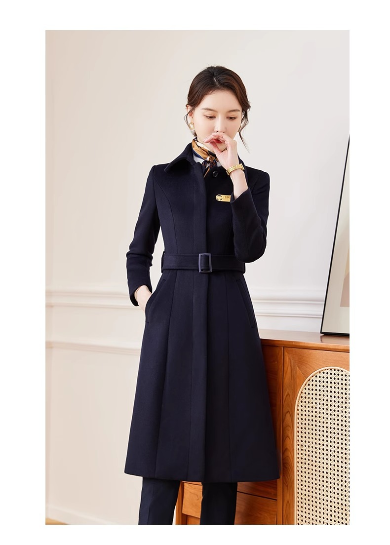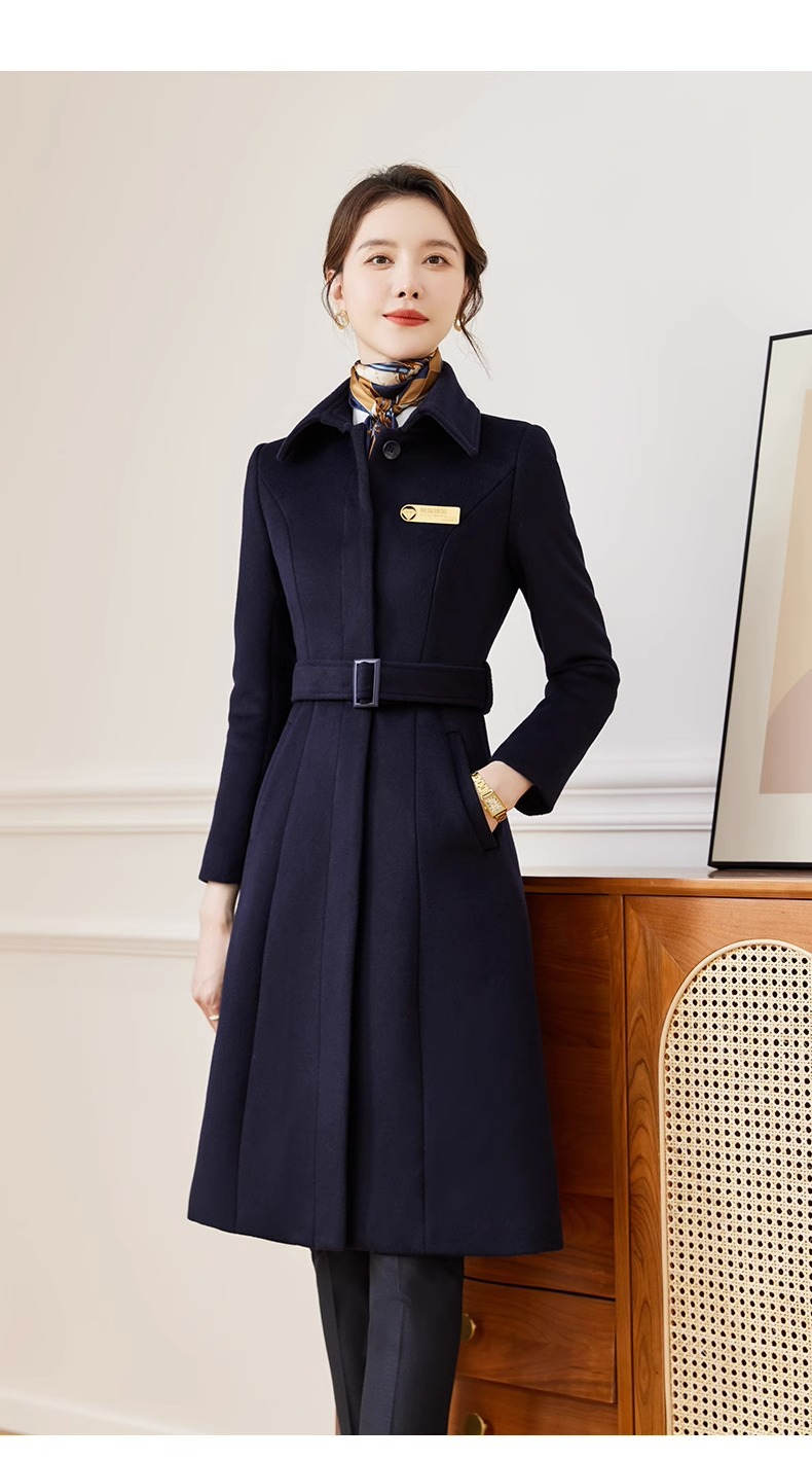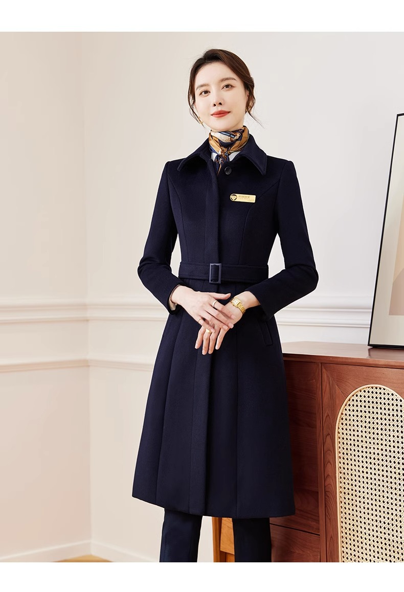 신상 울 코트 승무원 유니폼 고급 겨울 두꺼운 모직 코트 판매부 프론트 유니폼