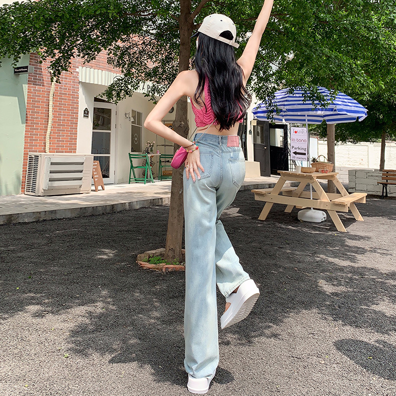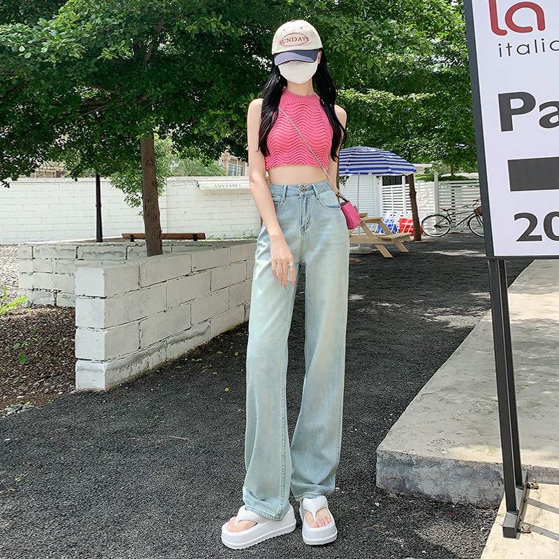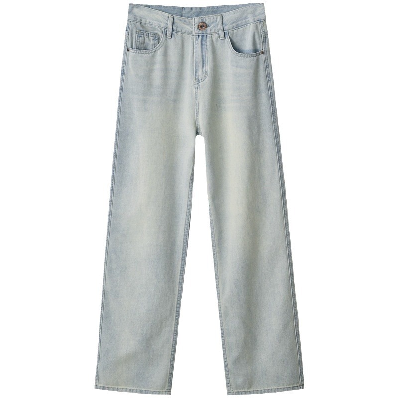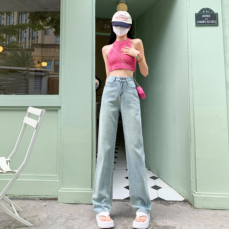 여성용 밝은 색상의 스트레이트 청바지 2021 새로운 봄, 가을 얇은 하이 웨이스트 좁은 버전 슬리밍 루즈 와이드 레그 바닥 길이 바지