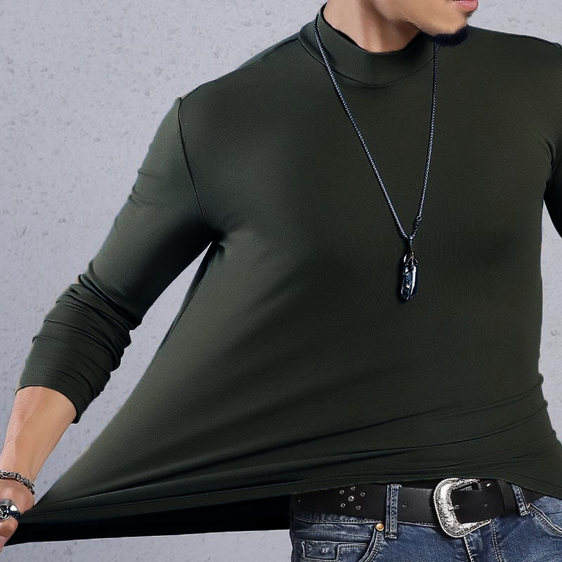 긴팔 티셔츠 남성용 양면 벨벳 일정한 온도베이스 셔츠 가을과 겨울 하프 하이 칼라 브러시 올매치 웜 탑