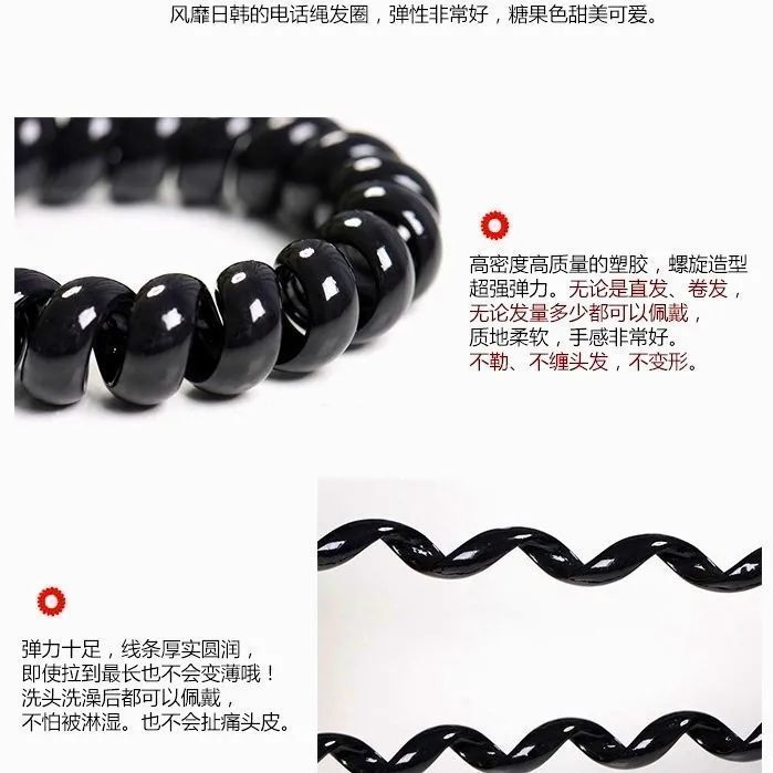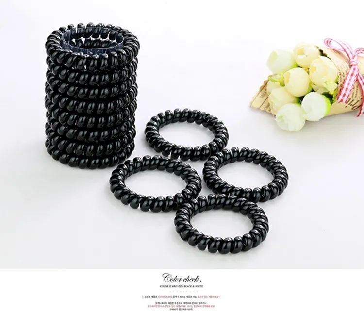 방수 전화선 헤어 링 플라스틱 팔찌 대형 검정 두꺼운 머리 포니 테일 헤드 로프 모든 일치 고무 밴드 쥬얼리